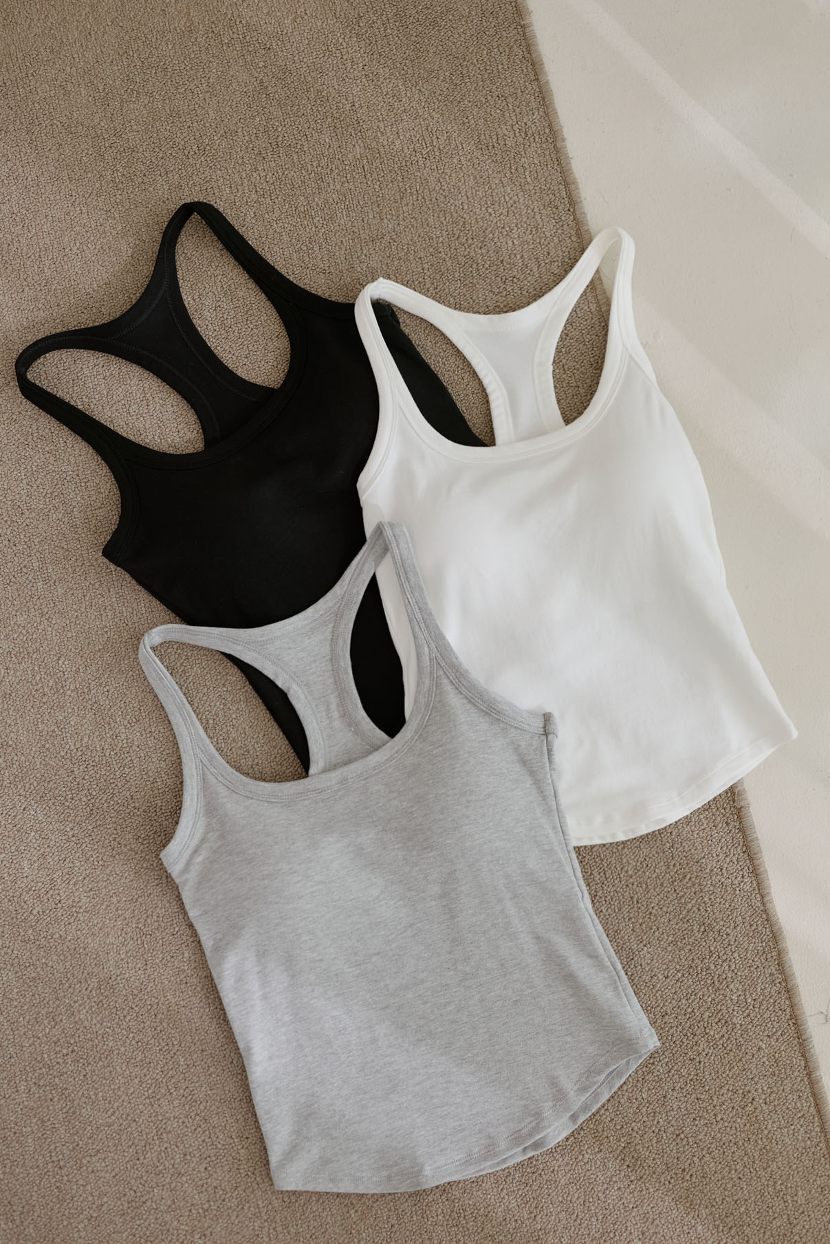 微削肩 / 工字美背 / 下擺圓弧設計 / 內有固定胸墊 / 胸墊下緣彈性鬆緊 / 整件彈性佳