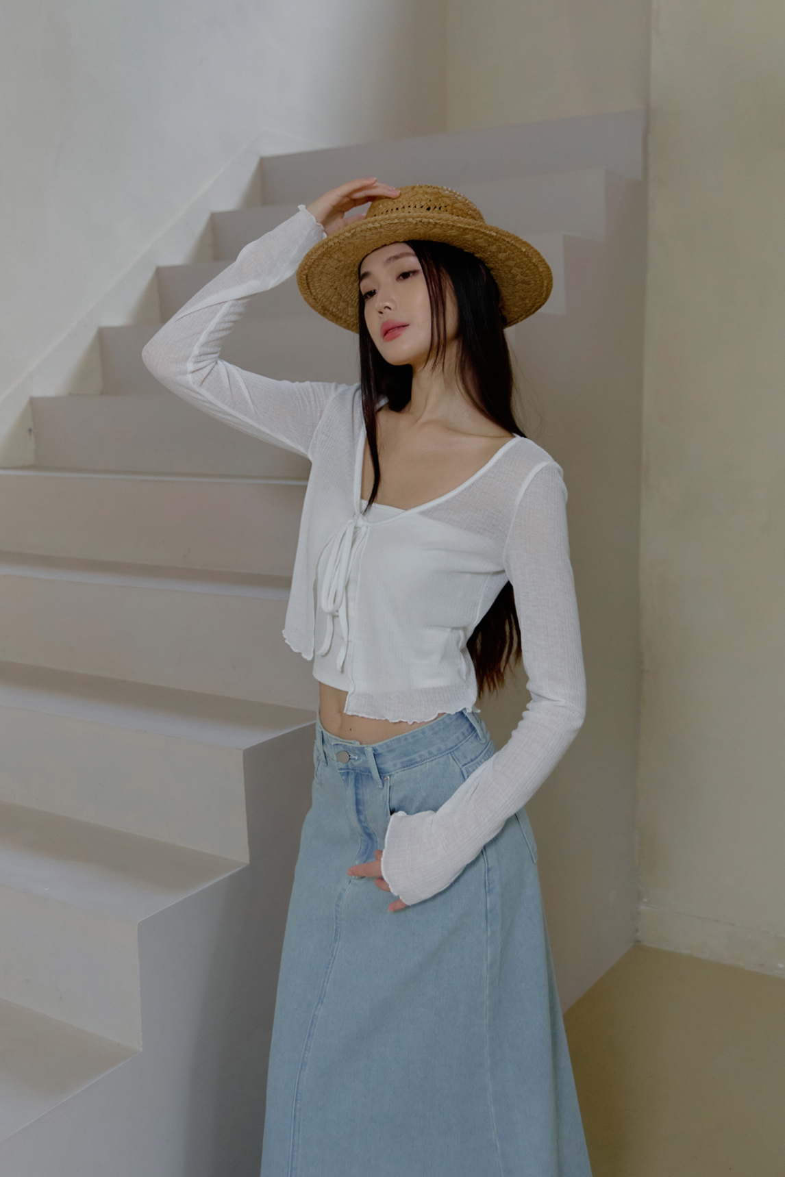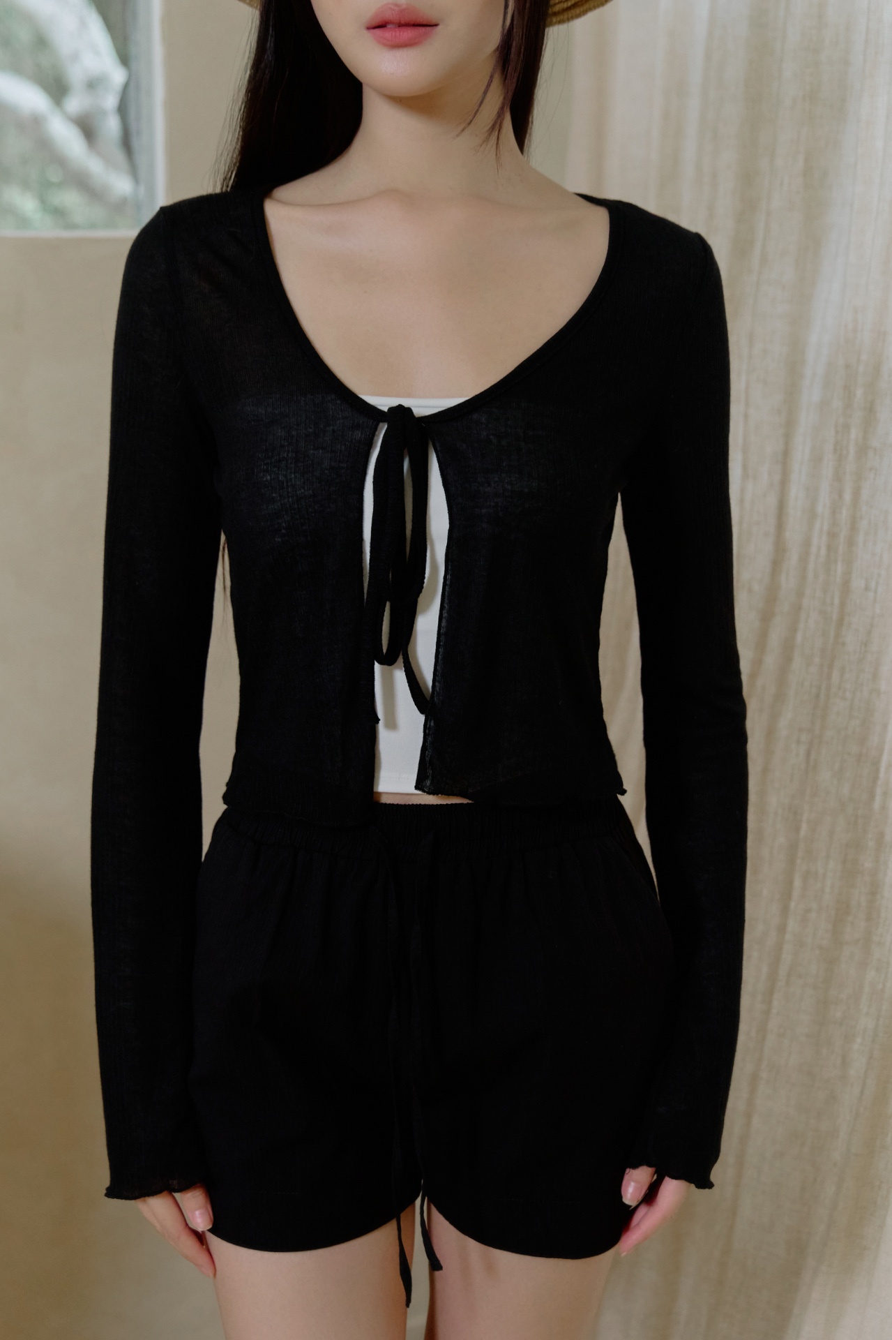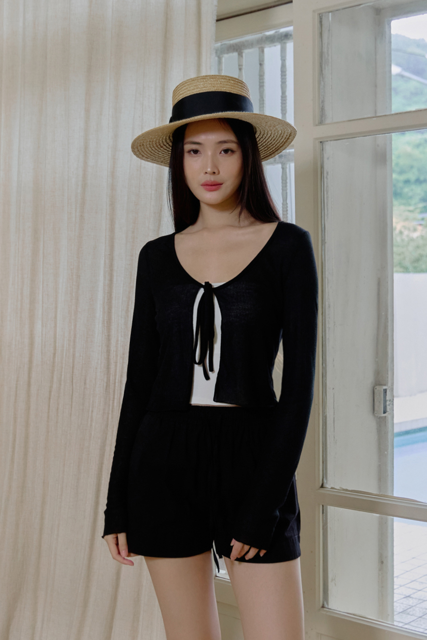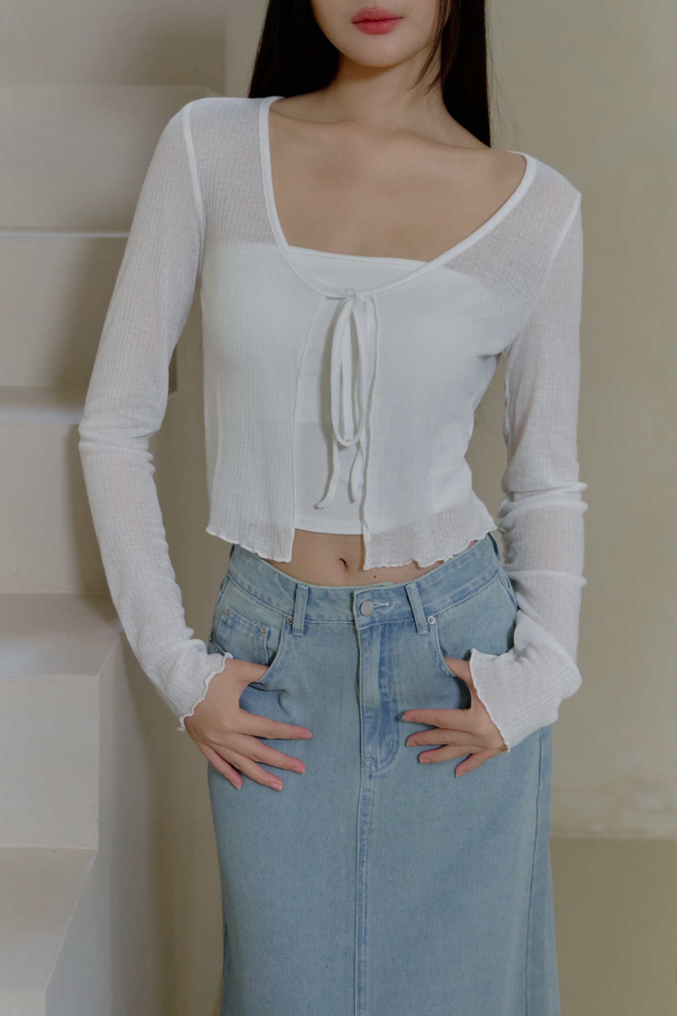 圓領 / 胸前綁帶設計 / 微透面料 / 親膚透氣