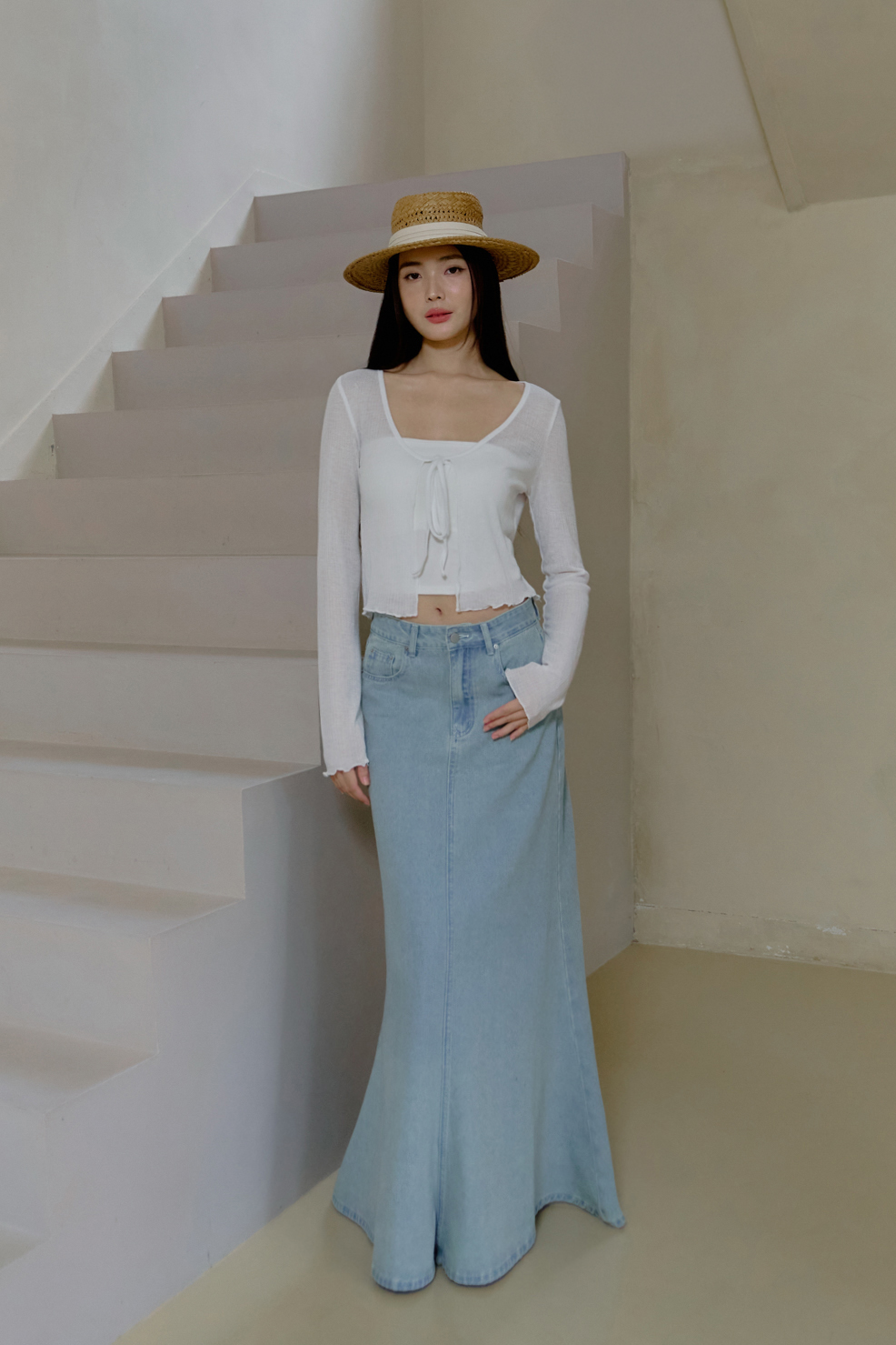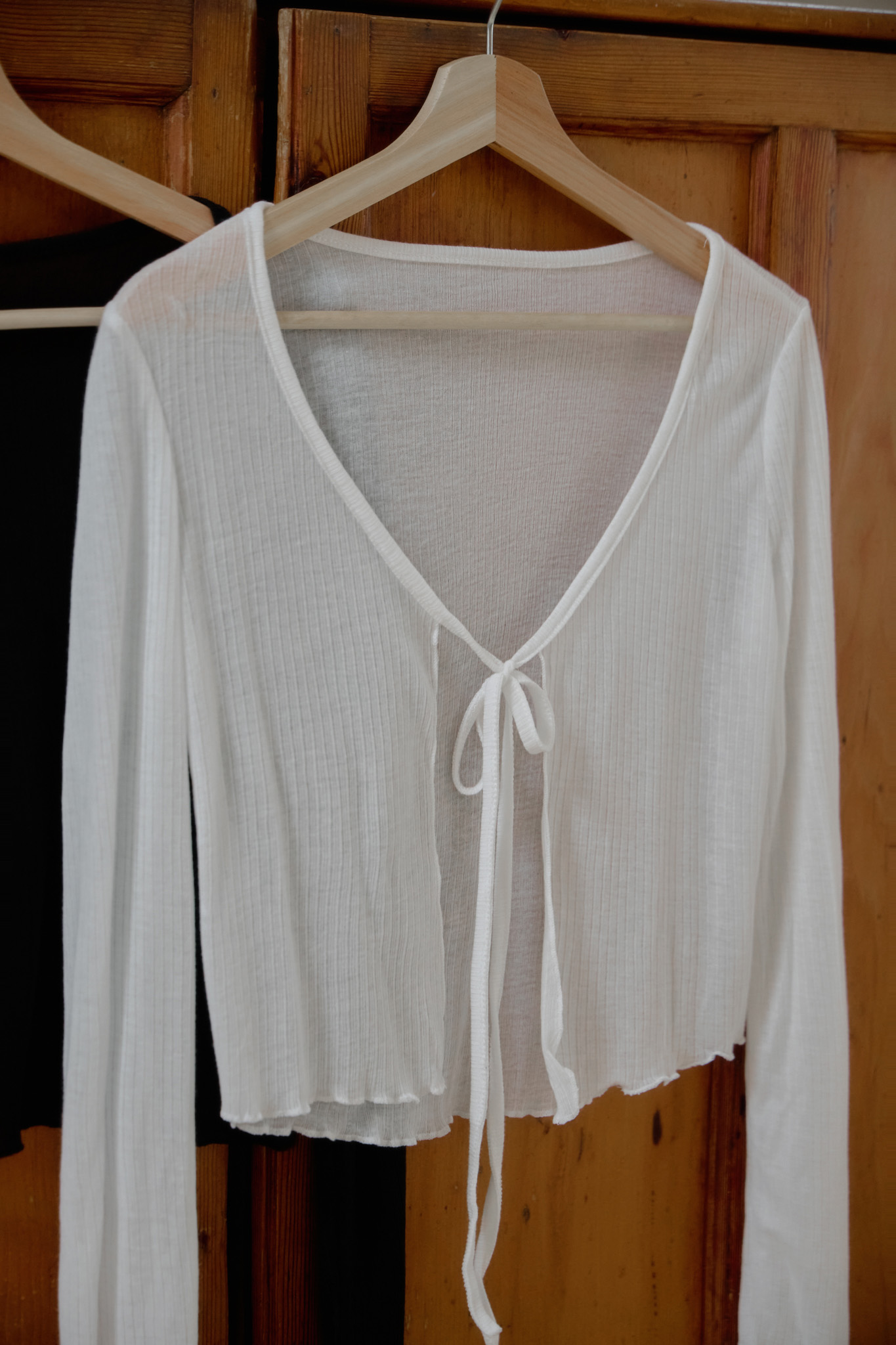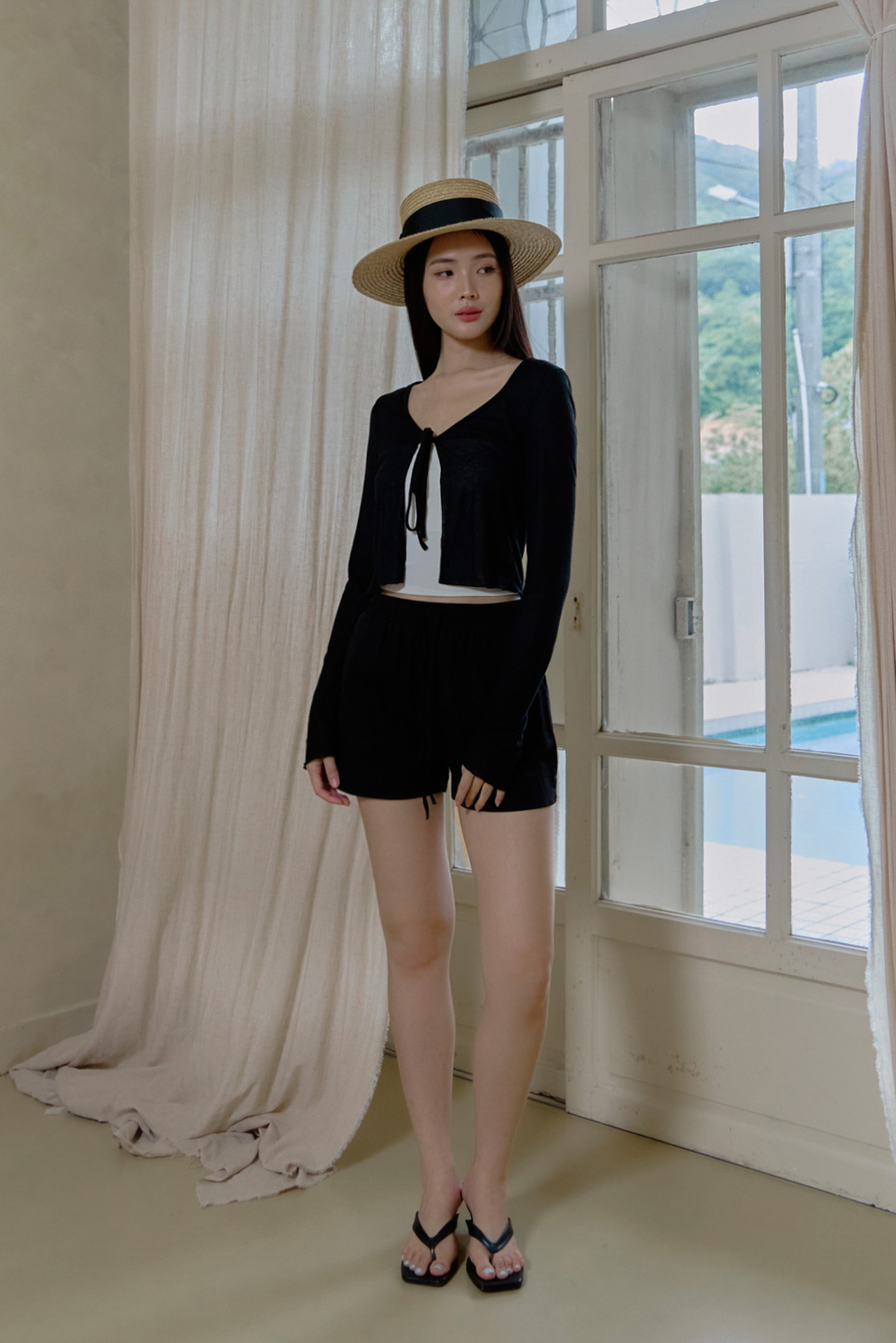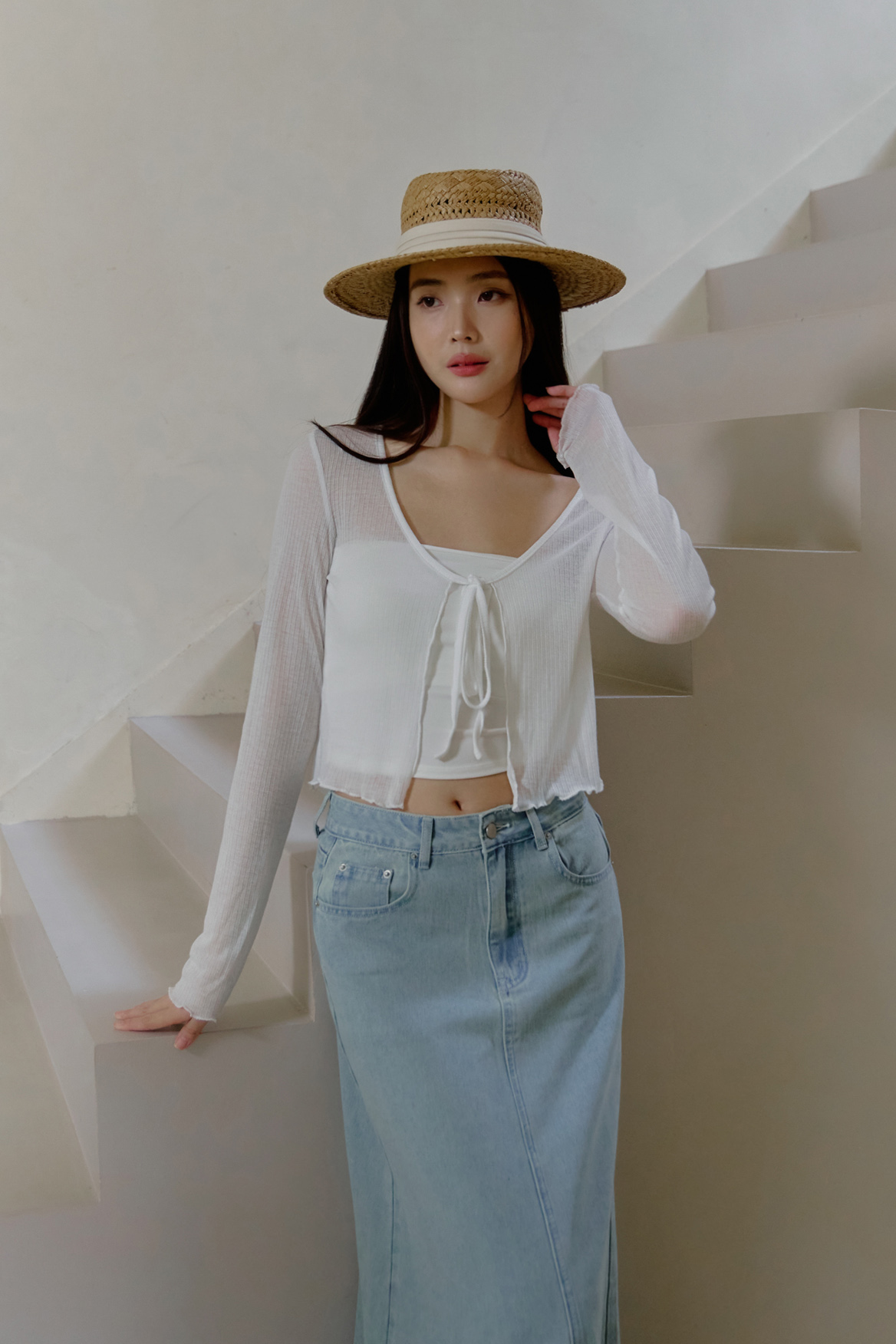 圓領 / 胸前綁帶設計 / 微透面料 / 親膚透氣