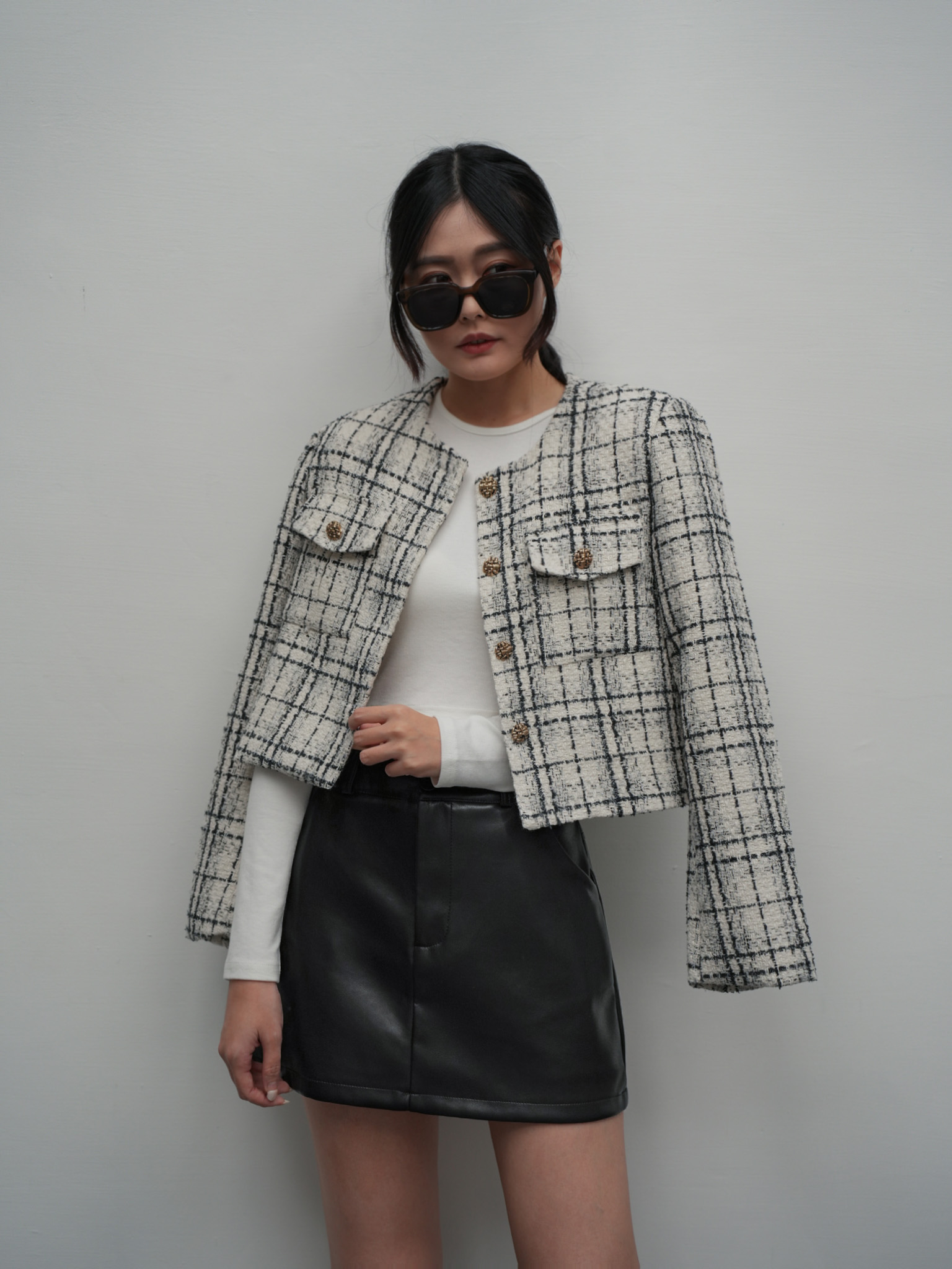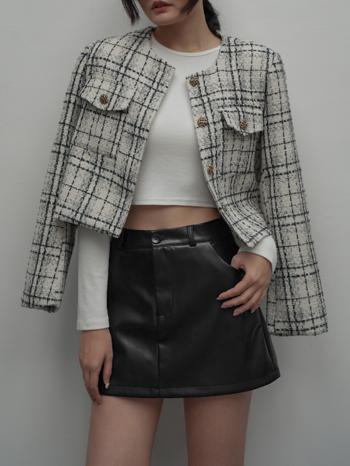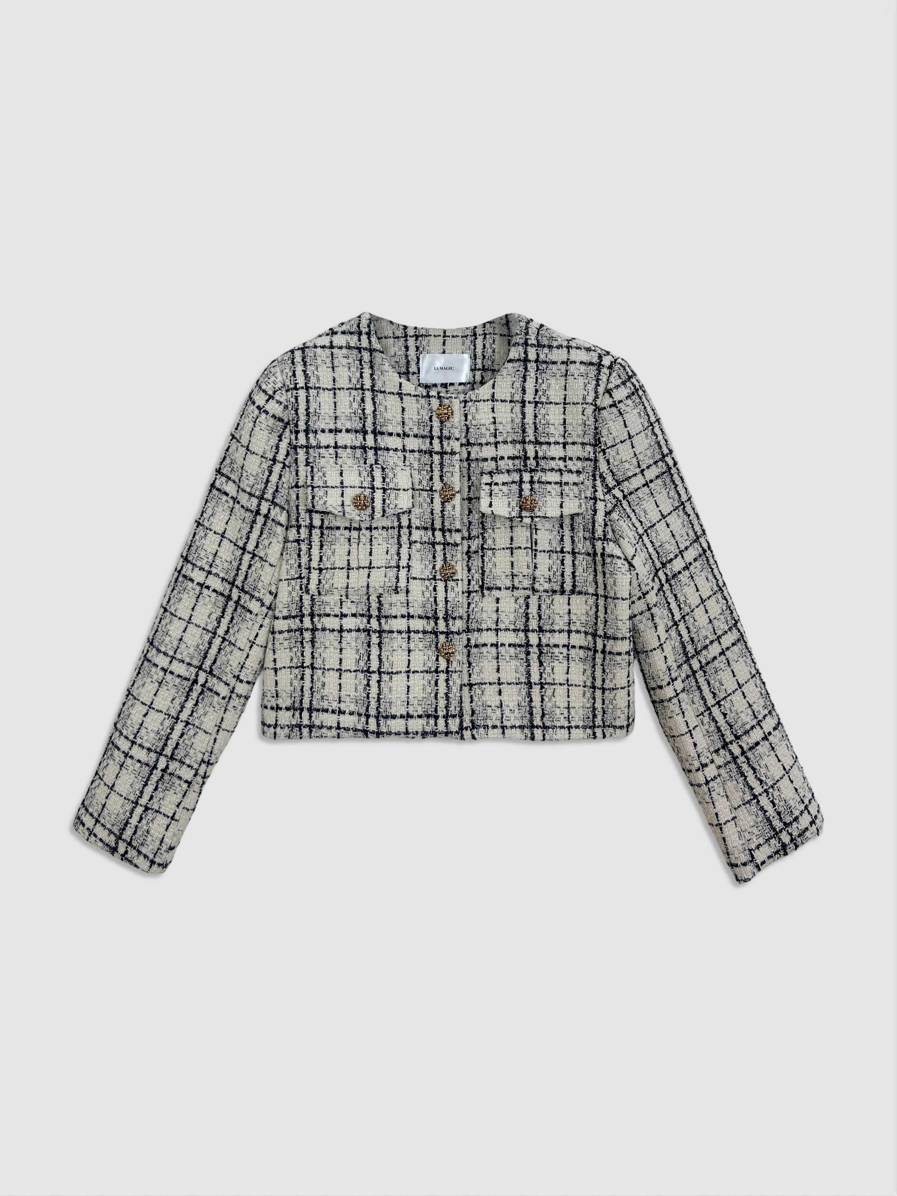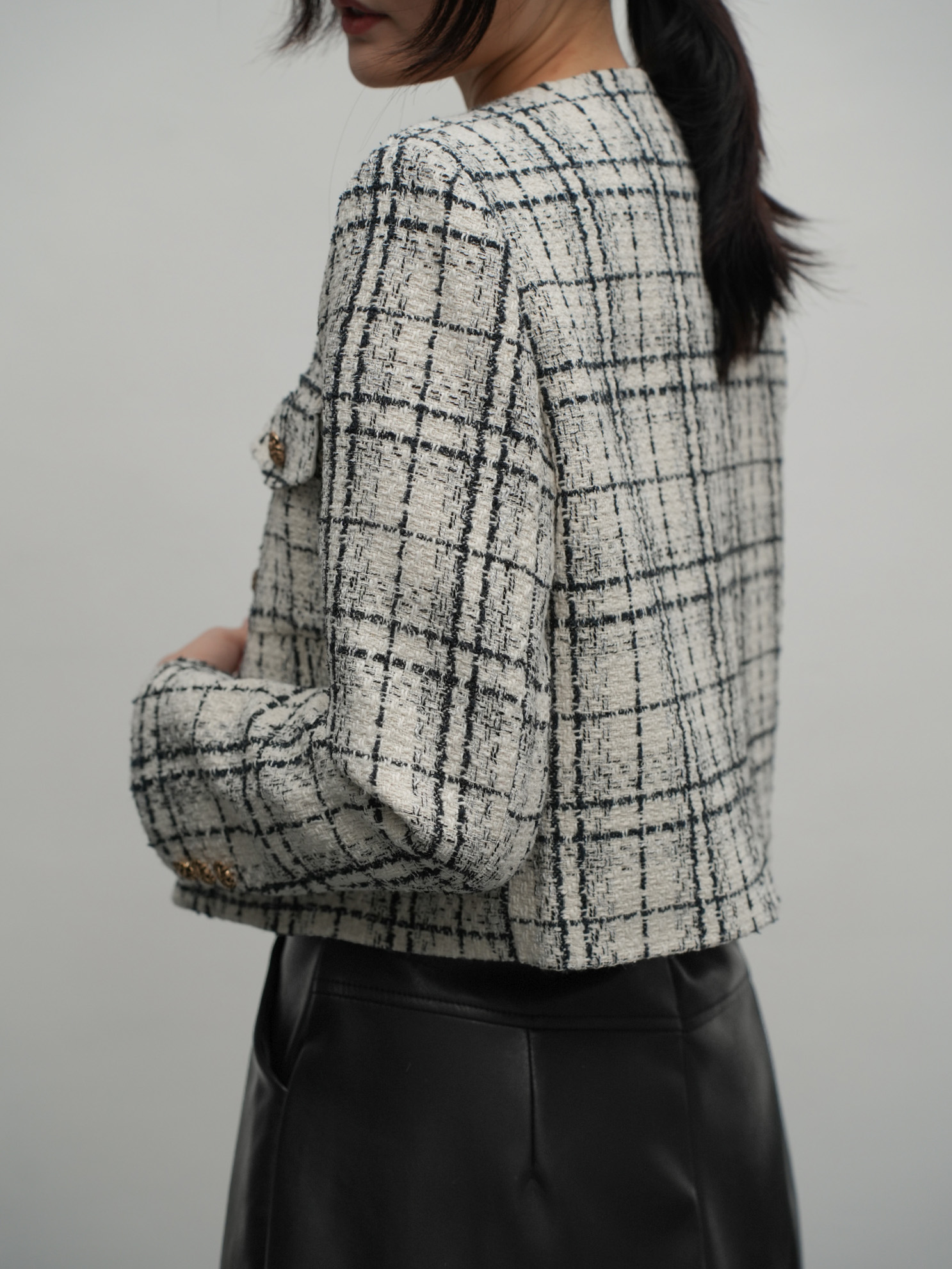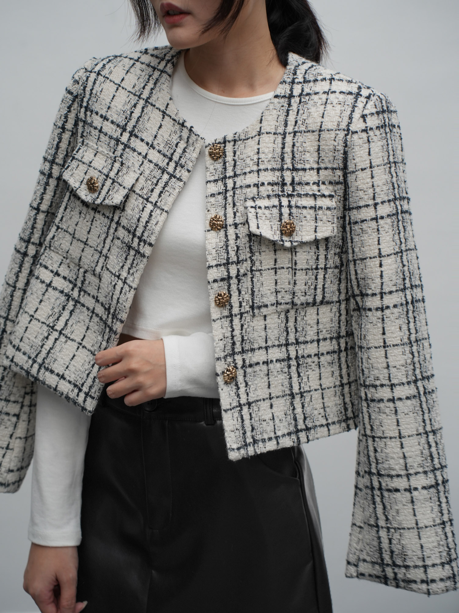 圓領 / 排釦設計 / 有口袋 / 質感織紋
