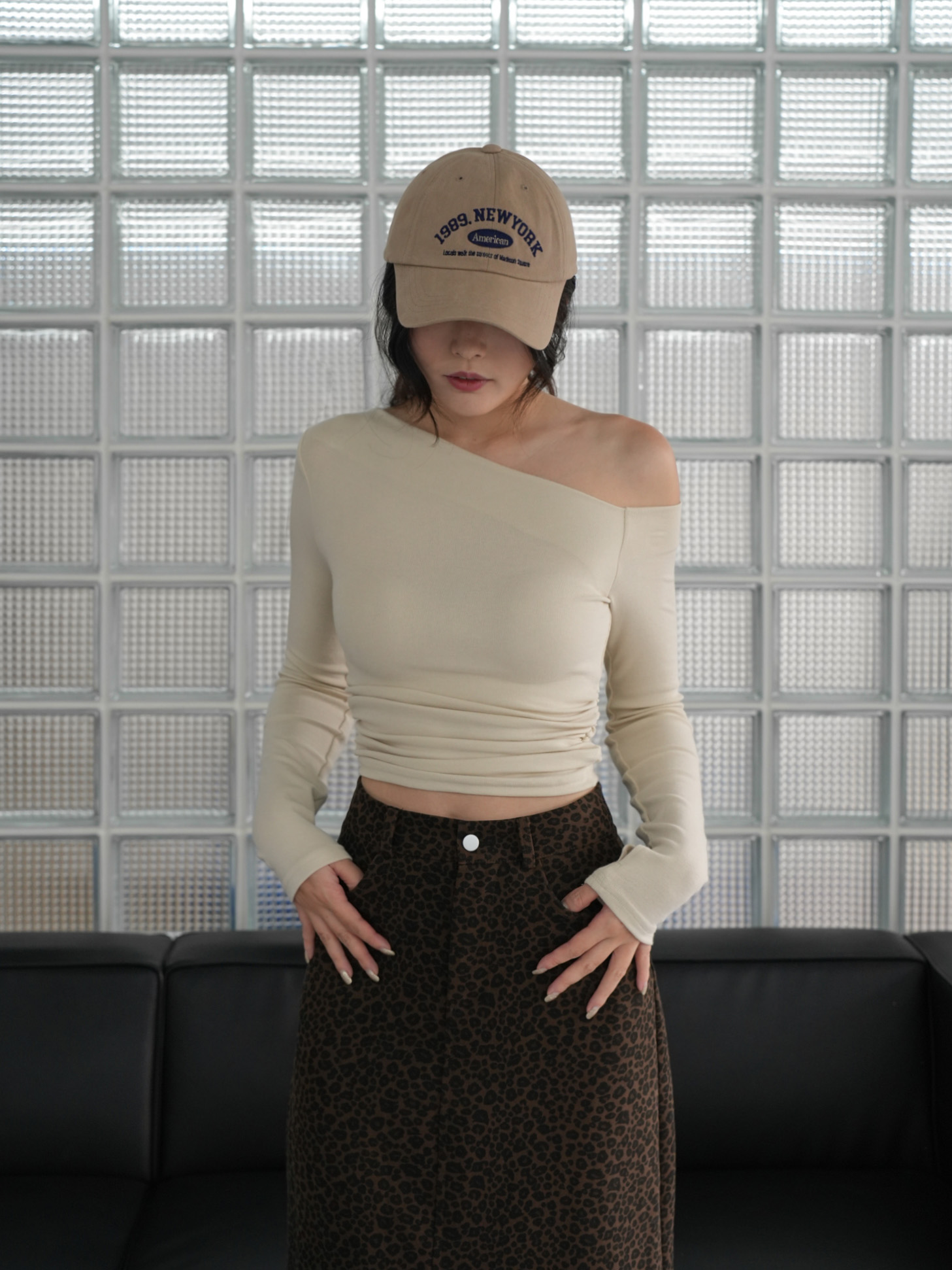 時髦超彈棉斜肩上衣 0105100
