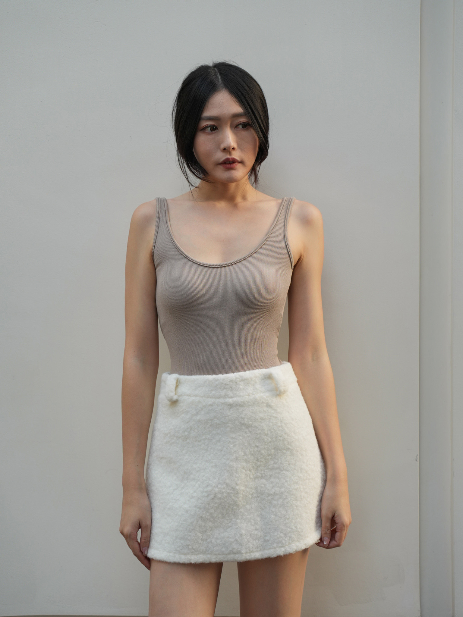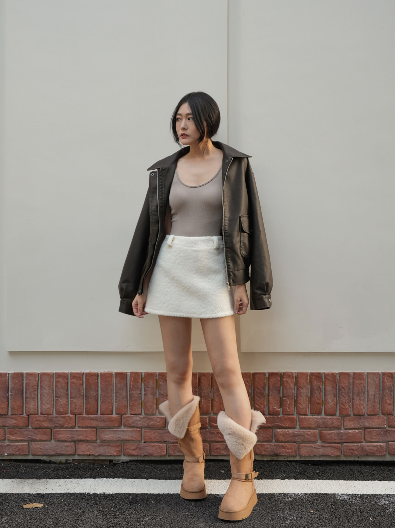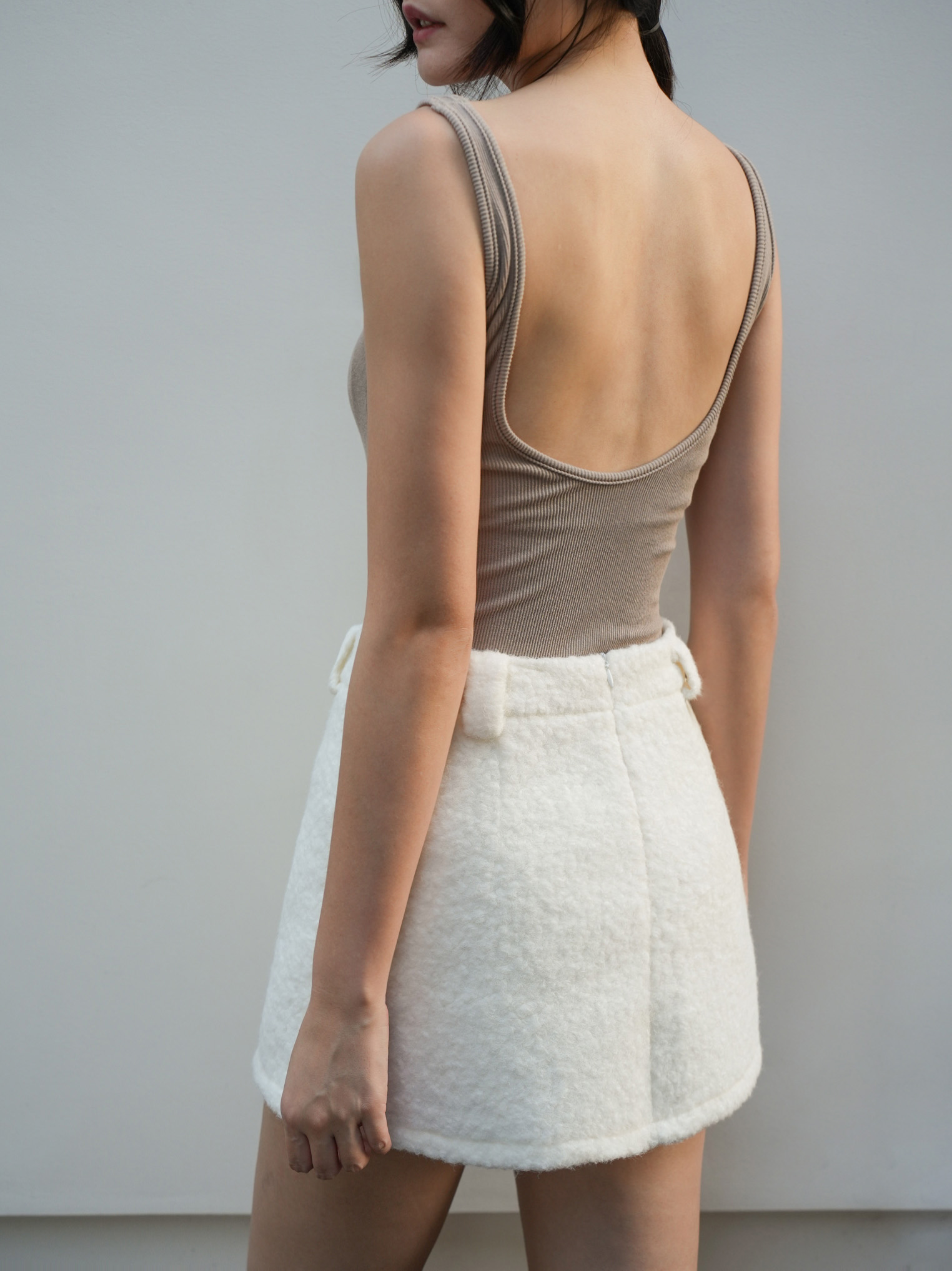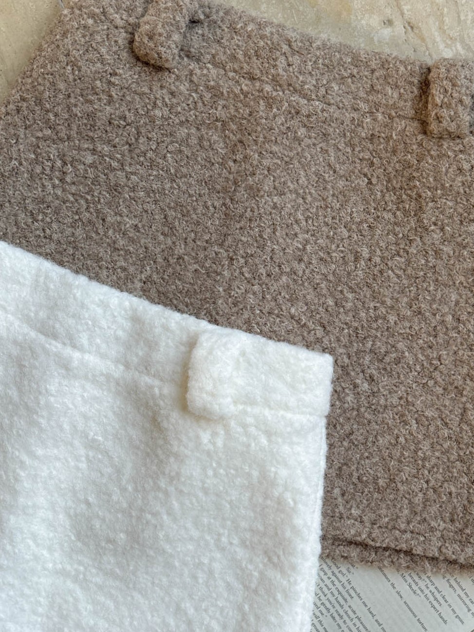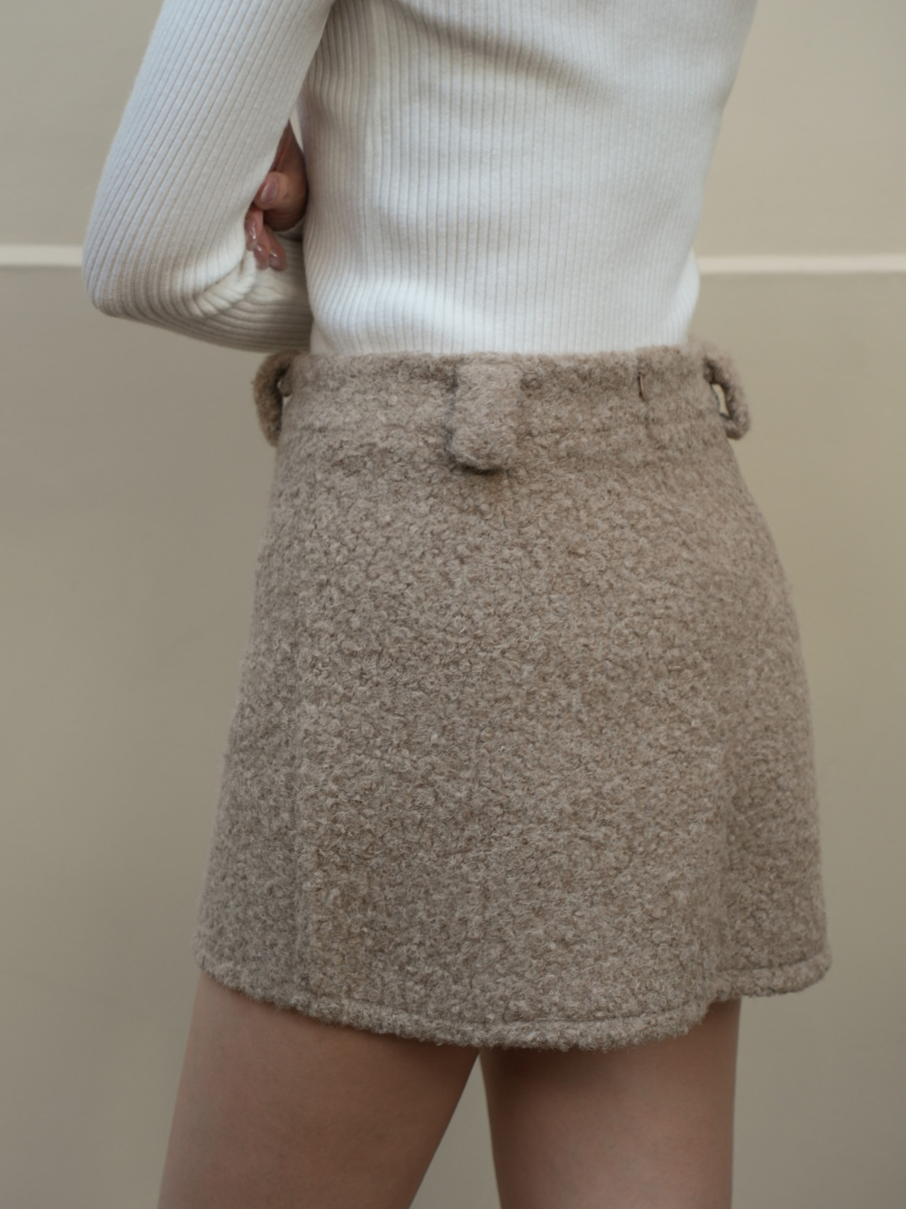 A字版型 / 有褲耳 / 後有拉鍊 / 短褲內裡 / 羊羔毛面料