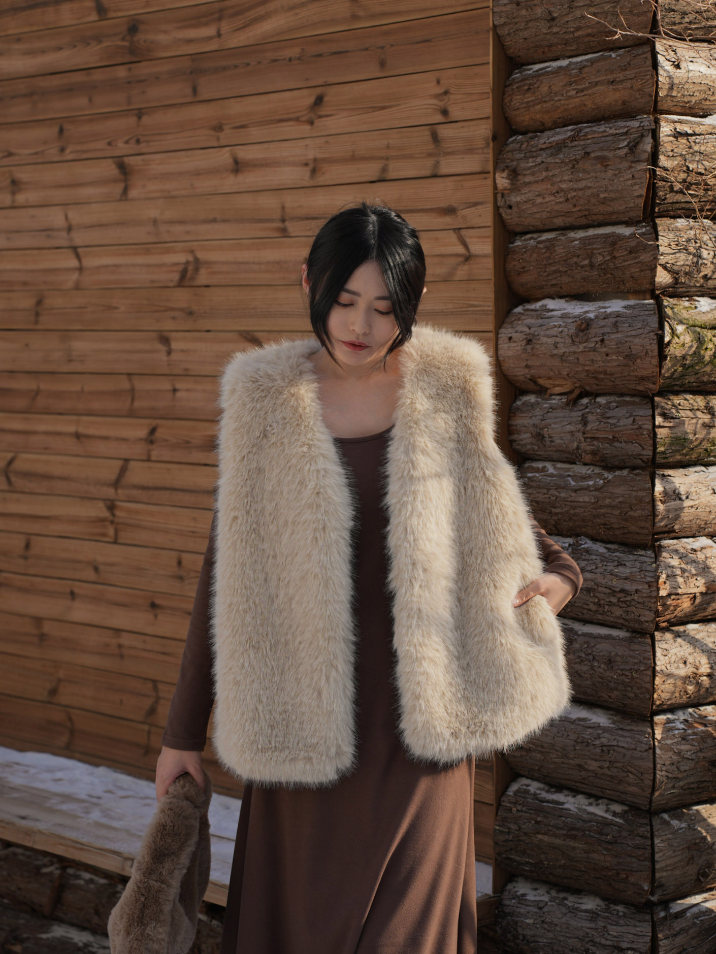 寬鬆 / 兩側有口袋 / 質感仿皮草毛料