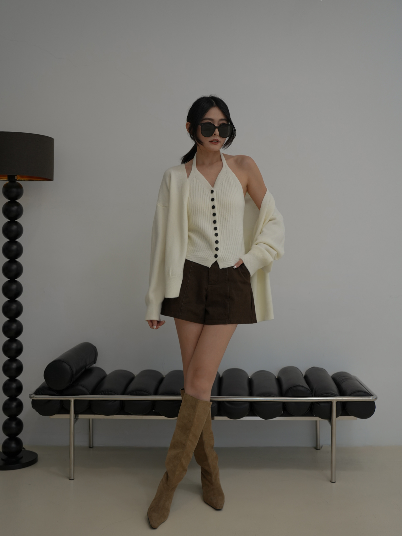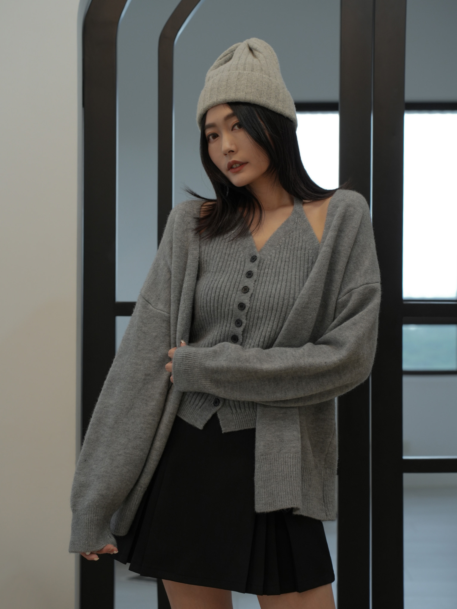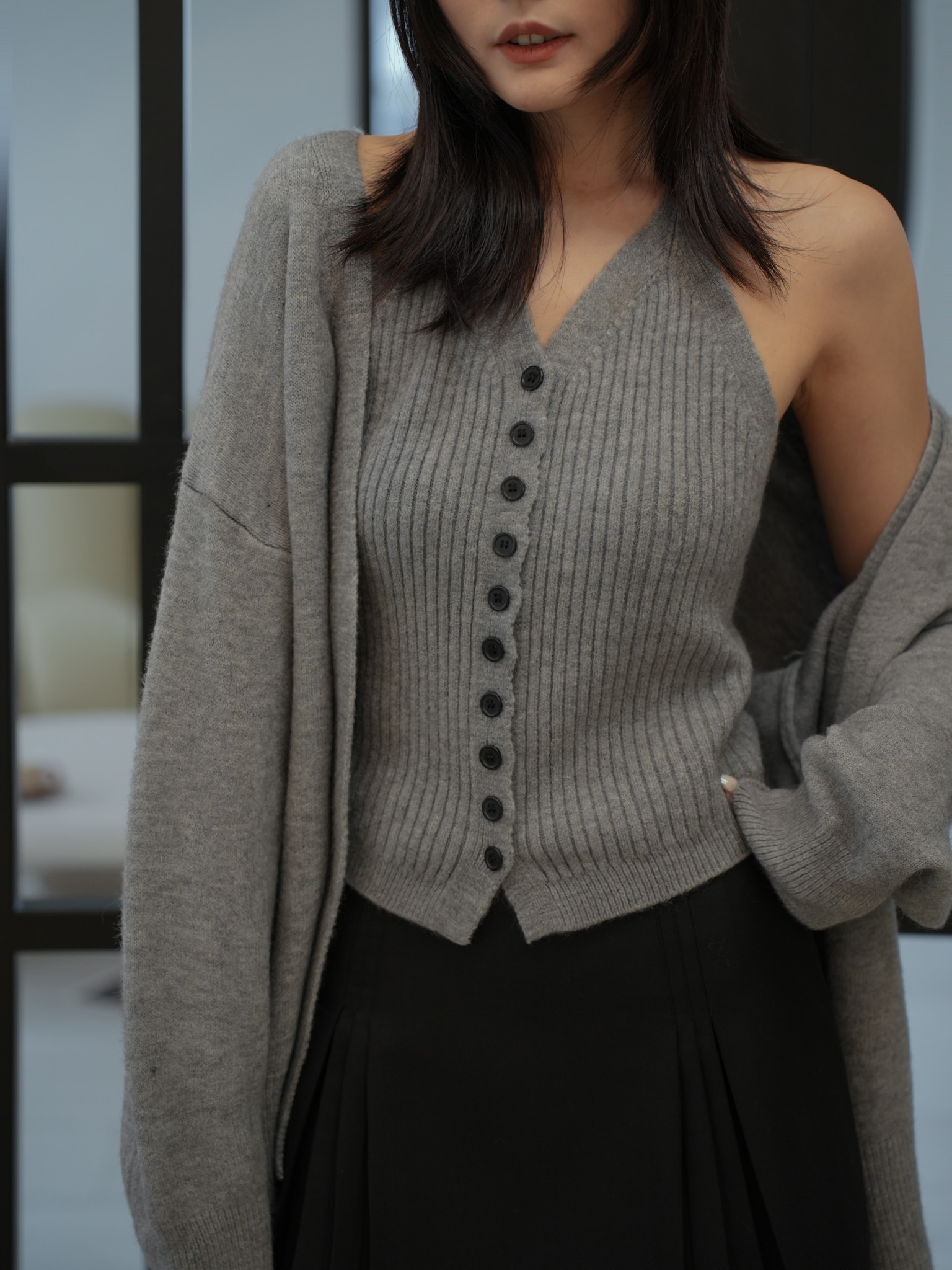 親膚細針織、超修身兩件式套裝