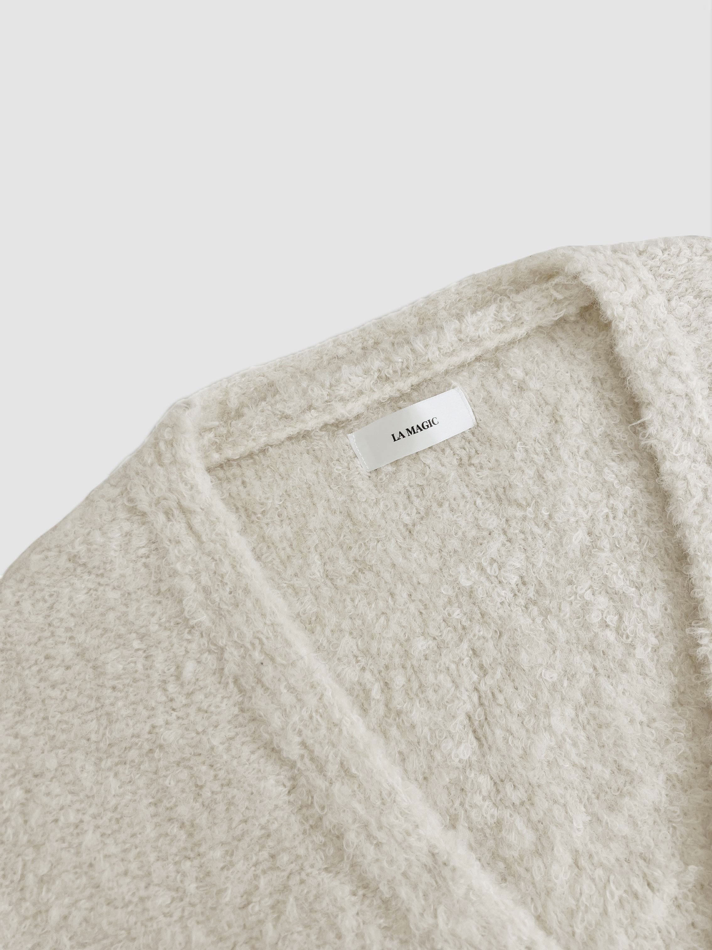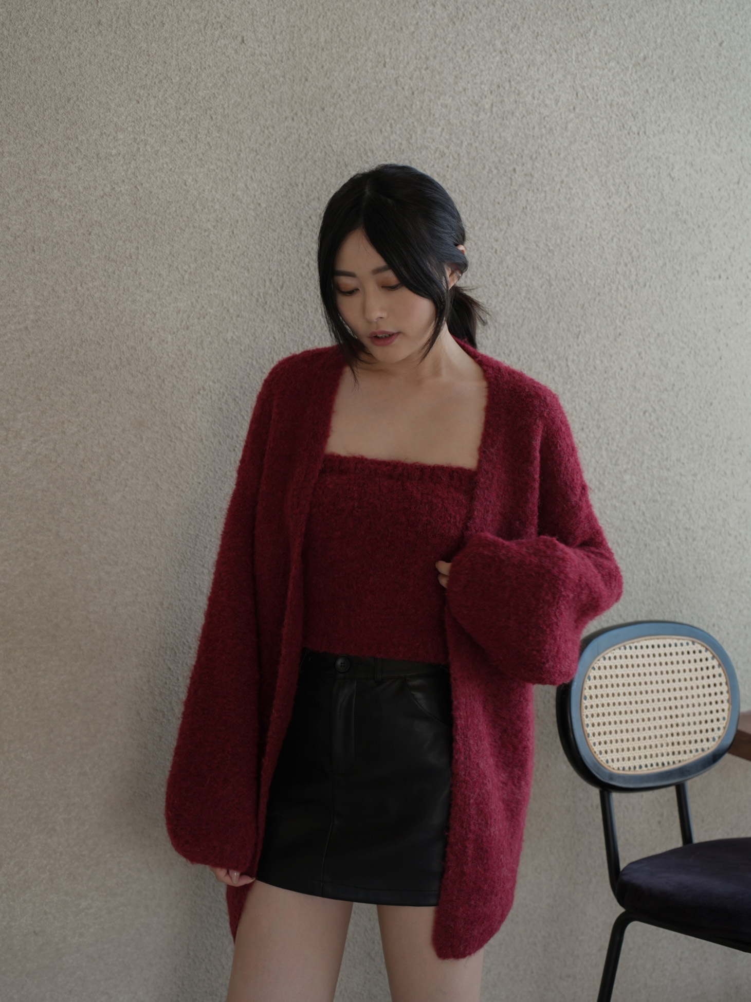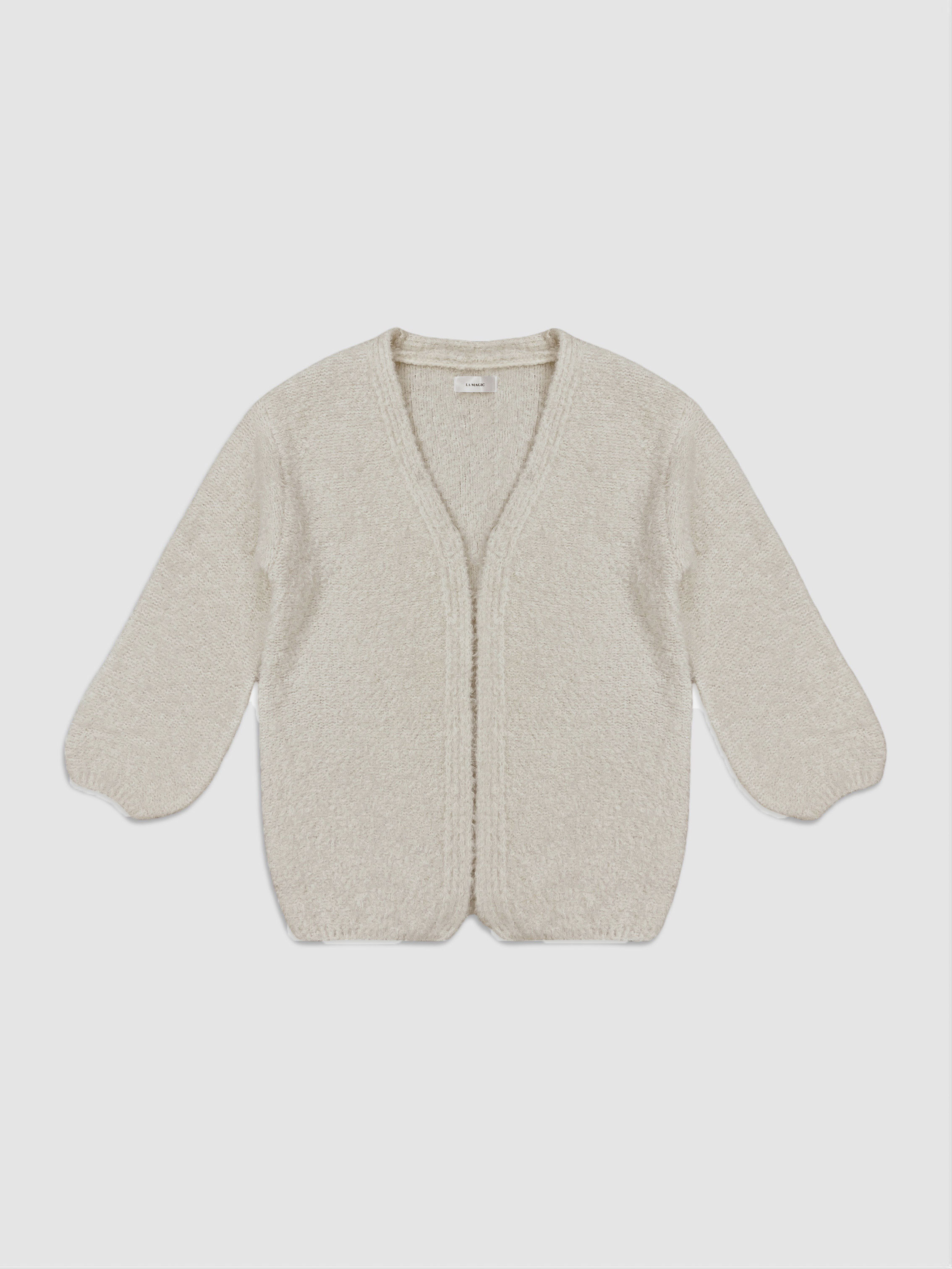 寬鬆落肩版型 / 無釦開襟 / 澎袖設計
