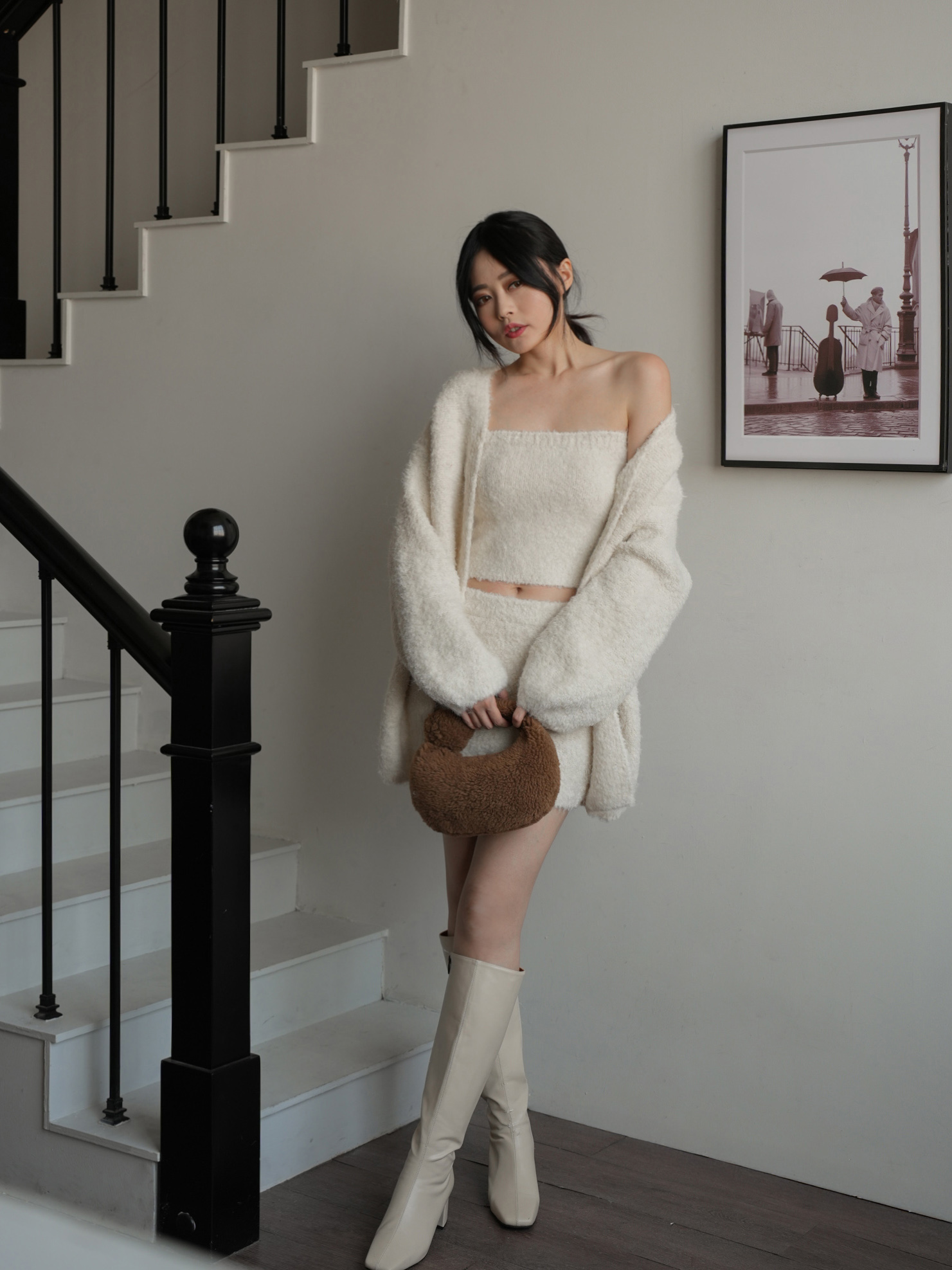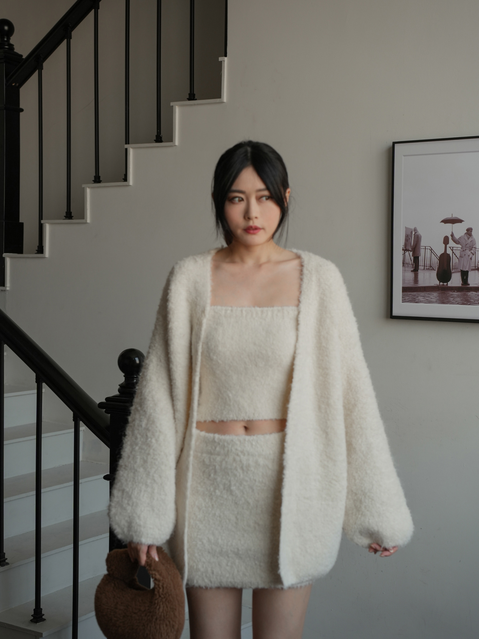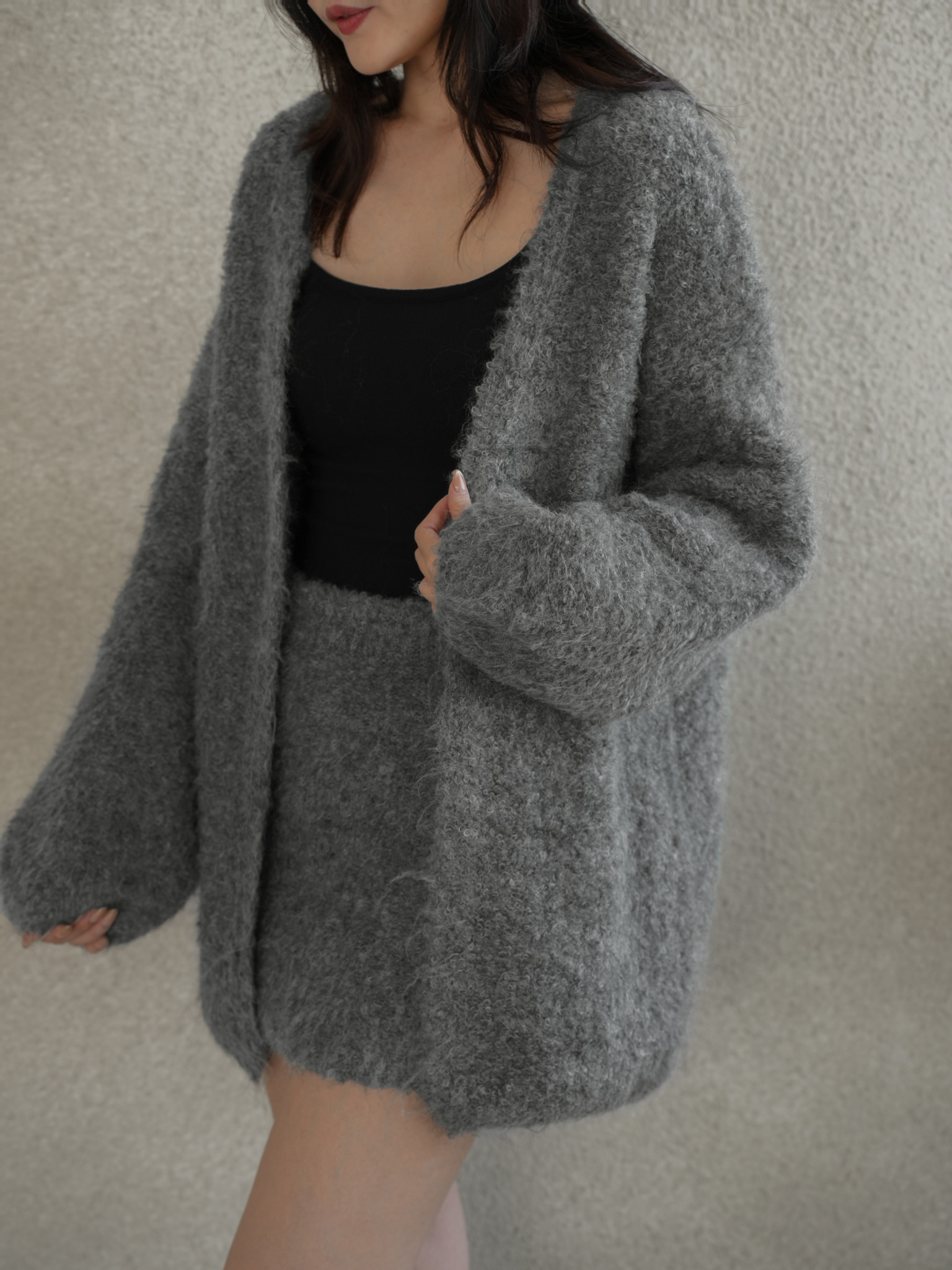 寬鬆落肩版型 / 無釦開襟 / 澎袖設計