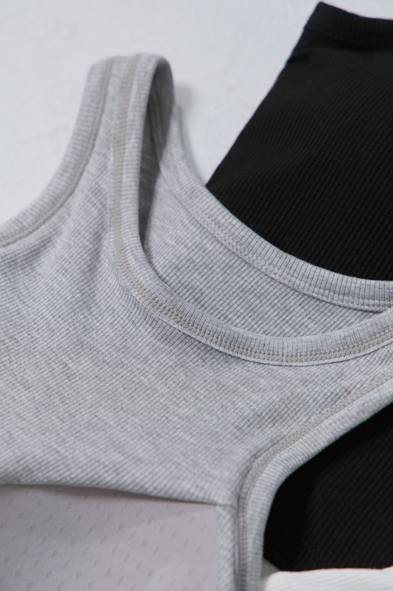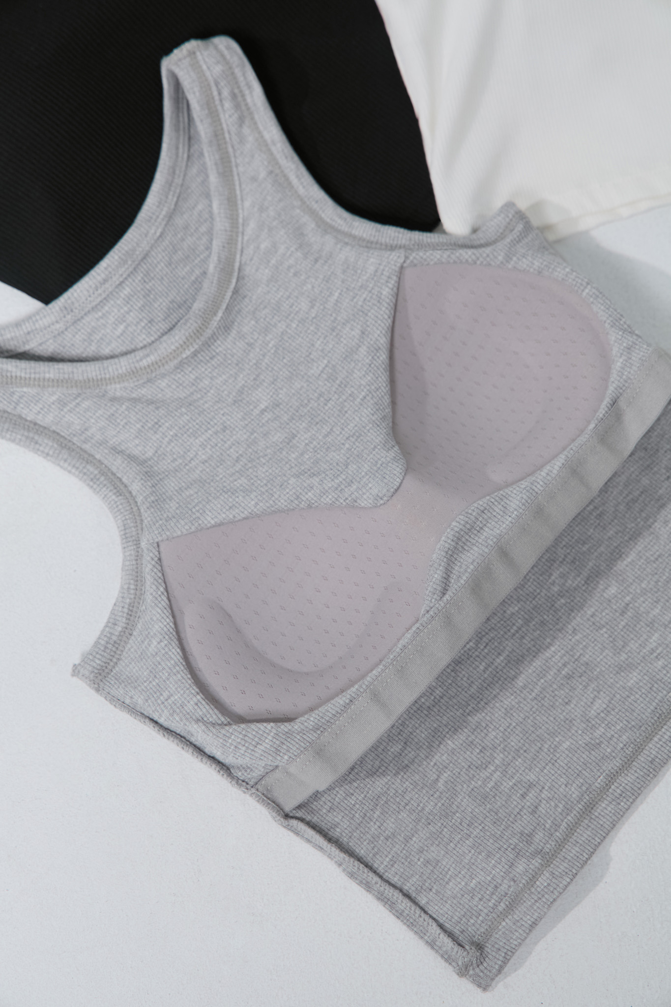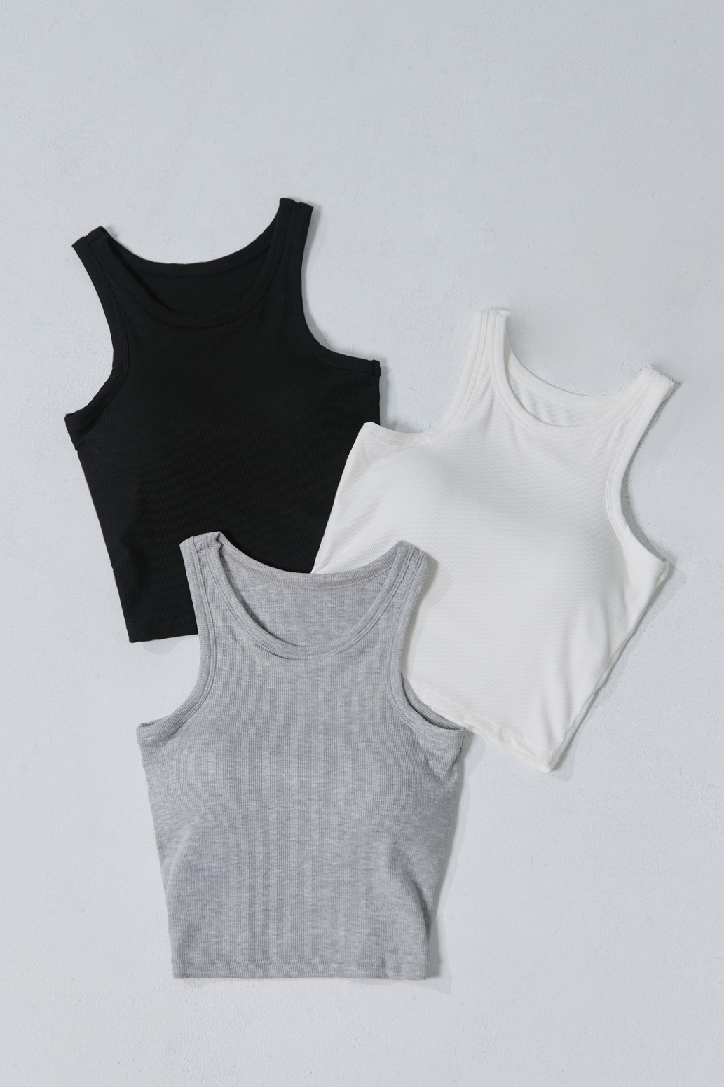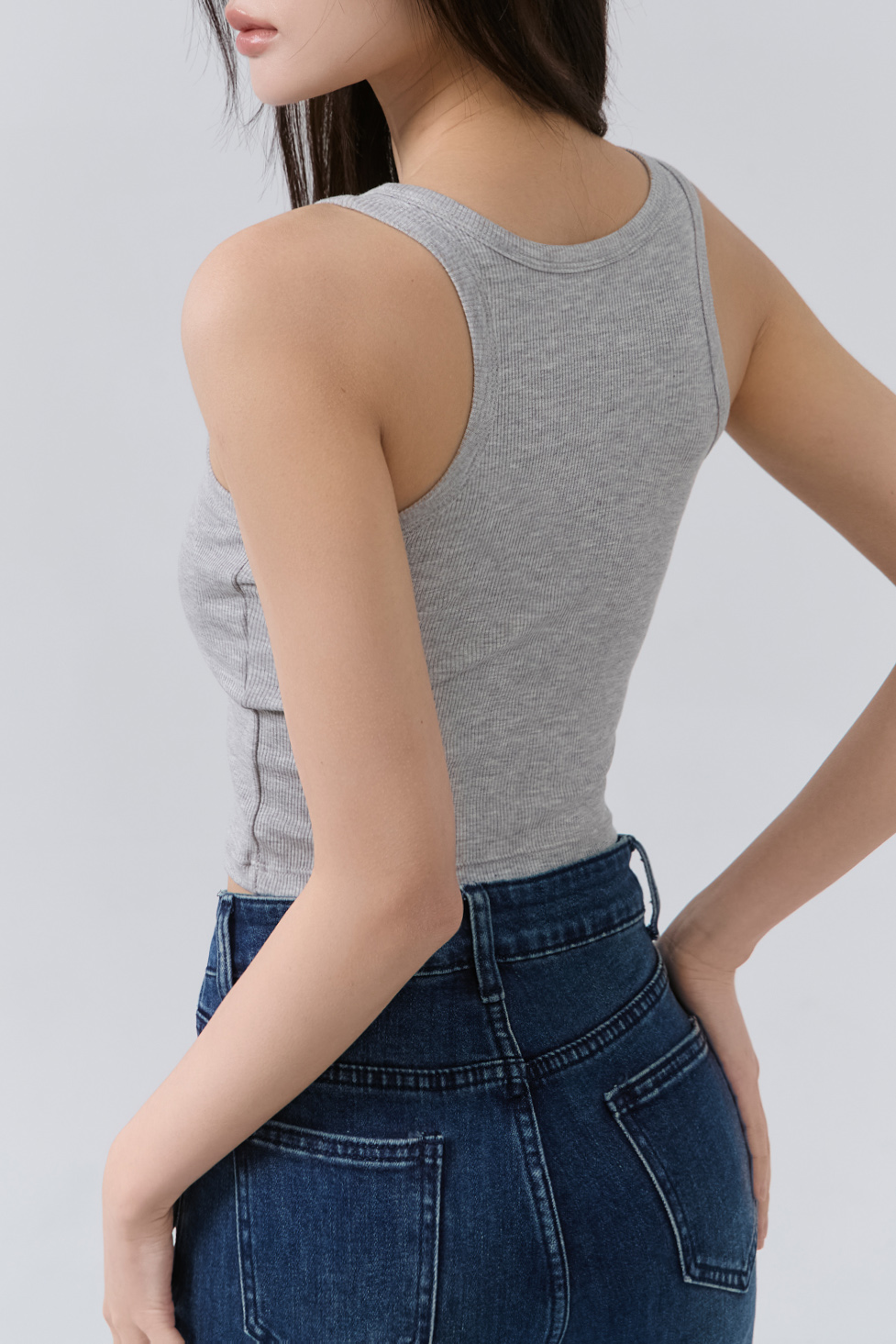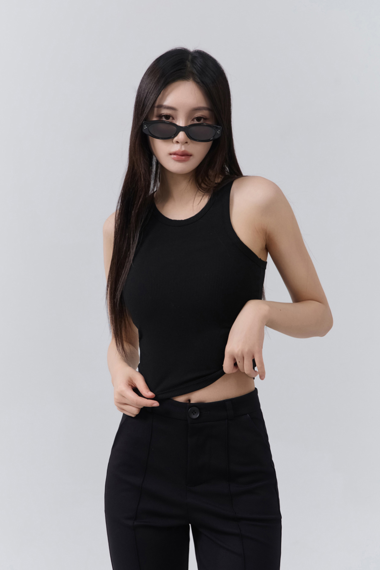 削肩 / 微短版 / 固定式乳膠胸墊 / 下緣彈性鬆緊 / 羅紋彈性棉質