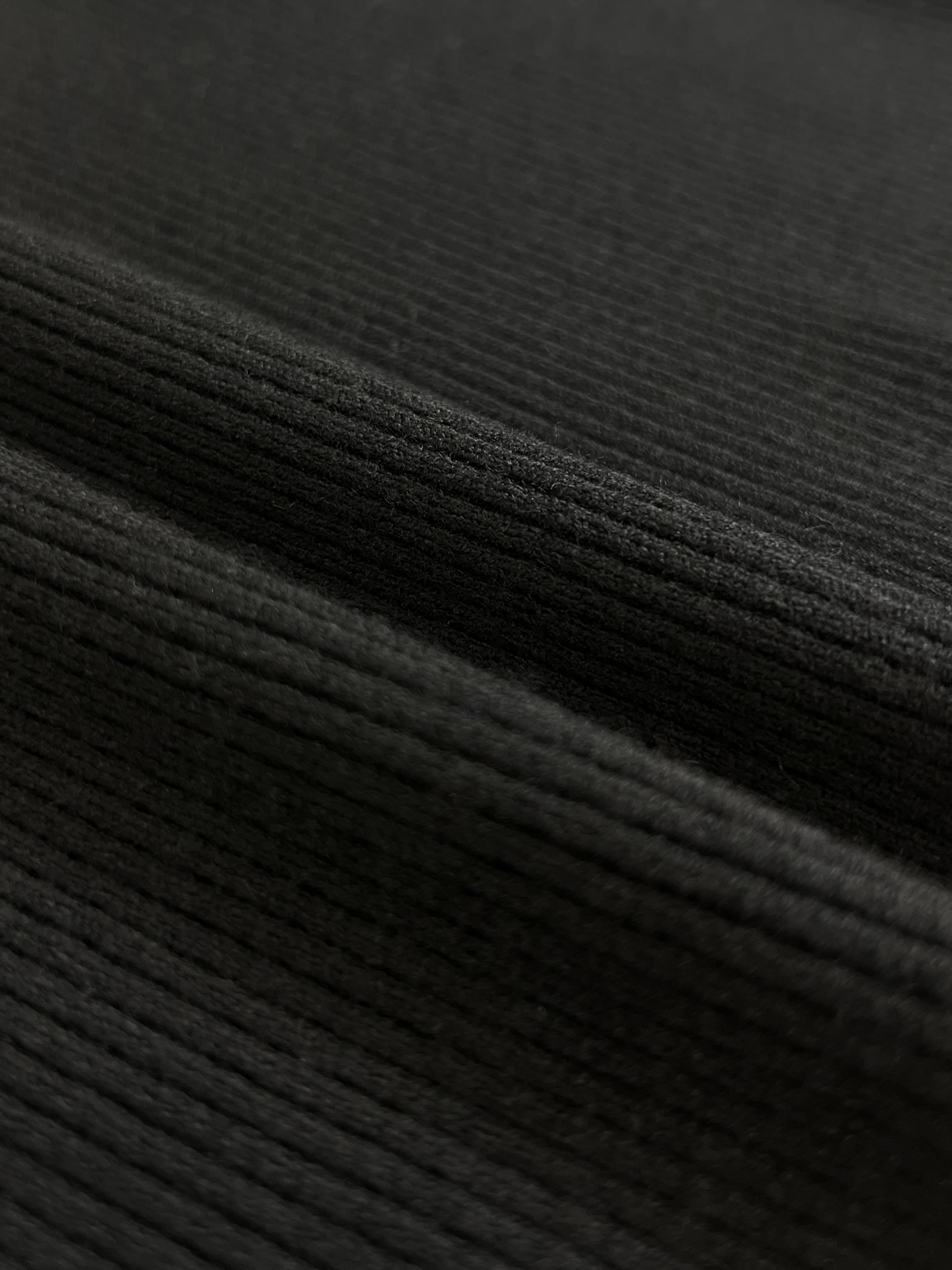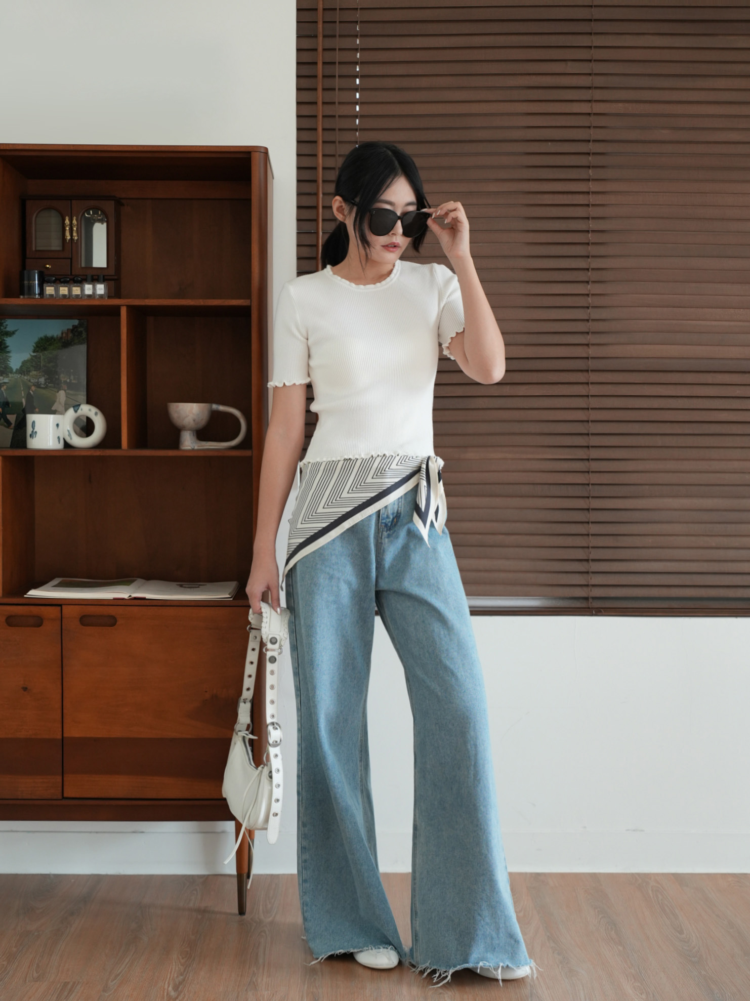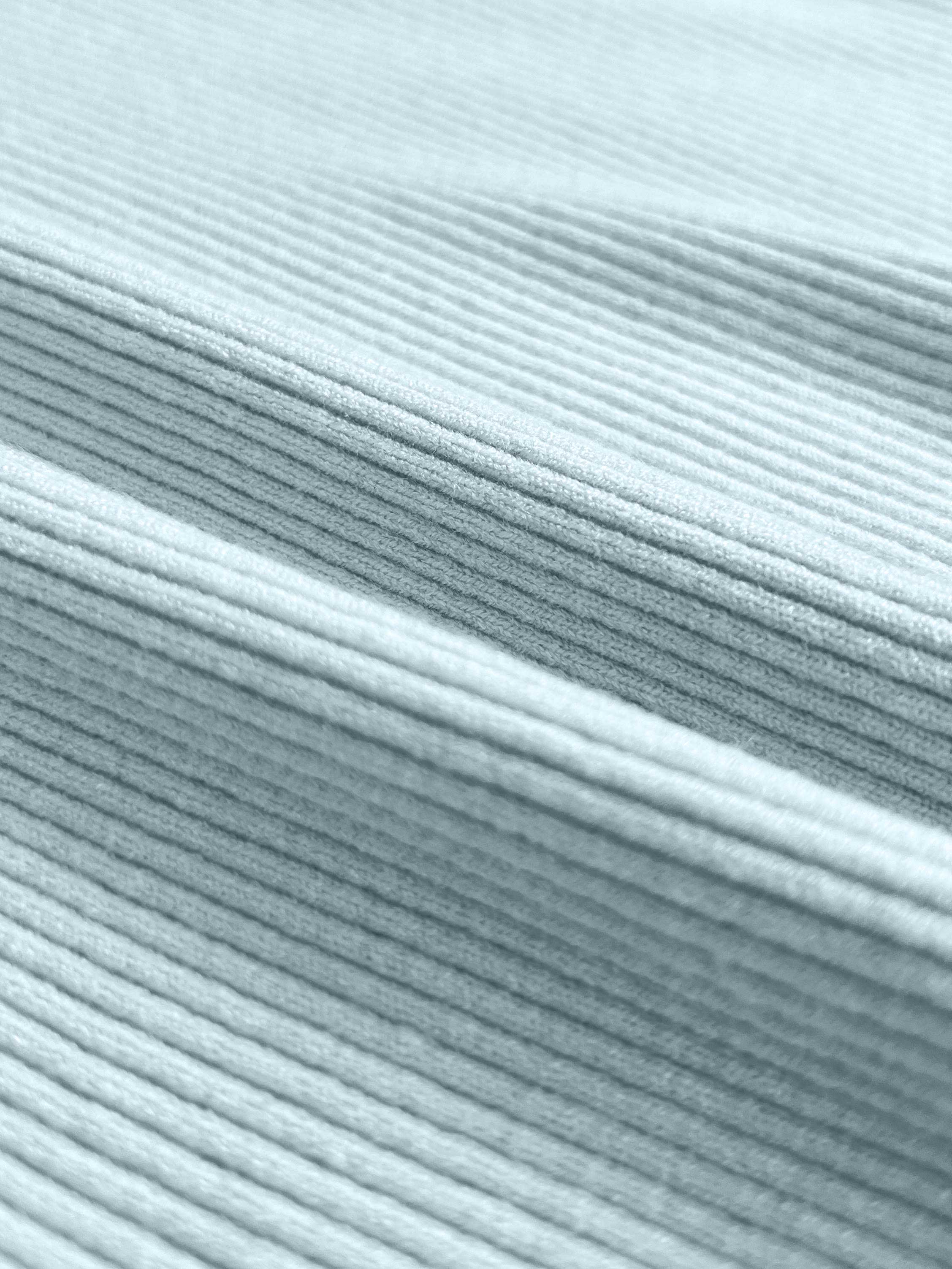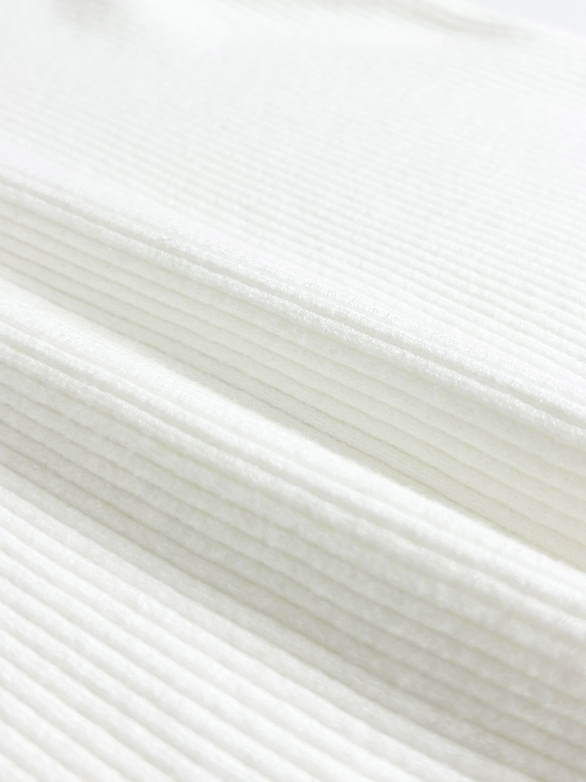 圓領 / 修身版型 / 木耳邊設計 / 坑條細針織
