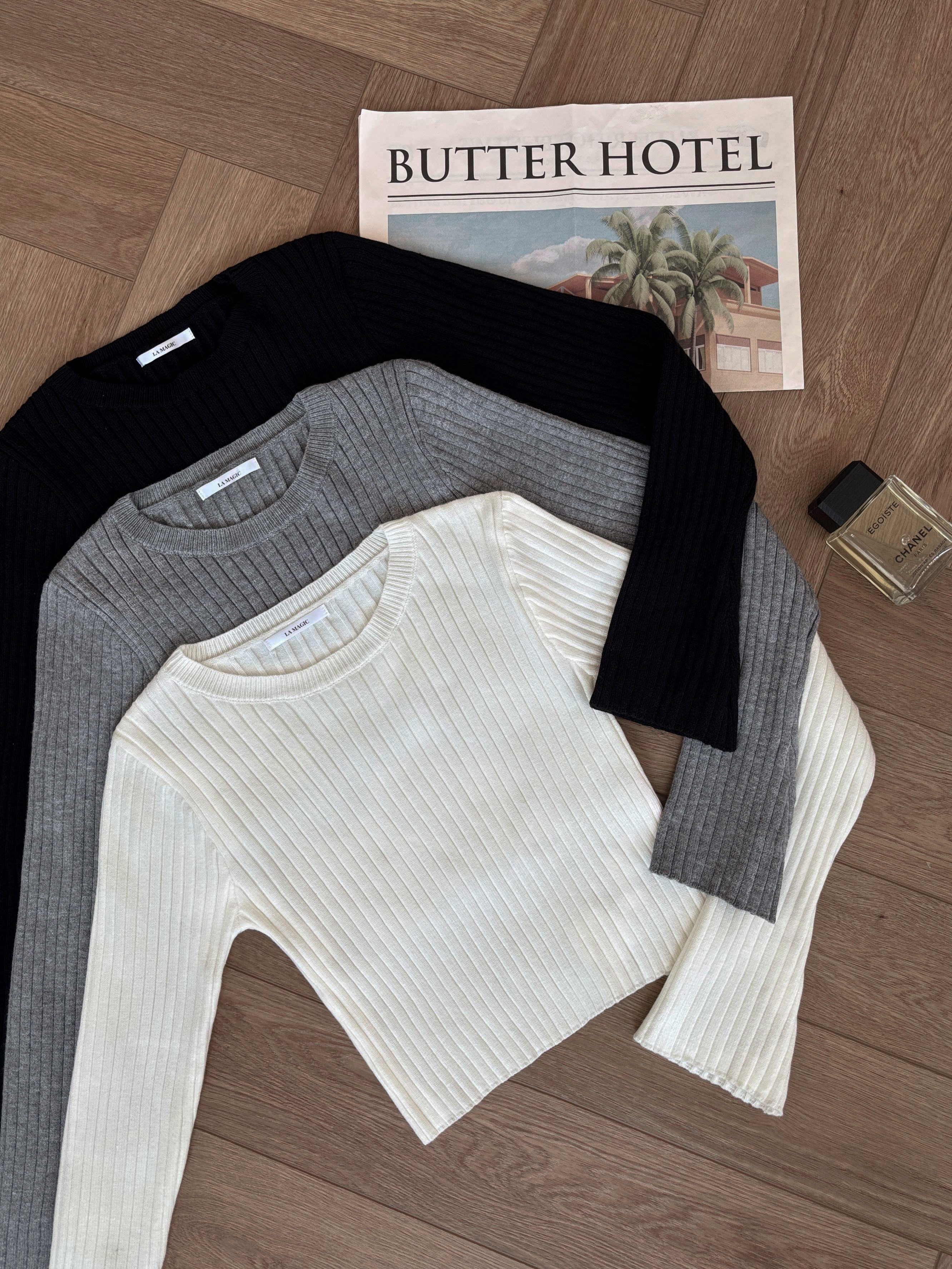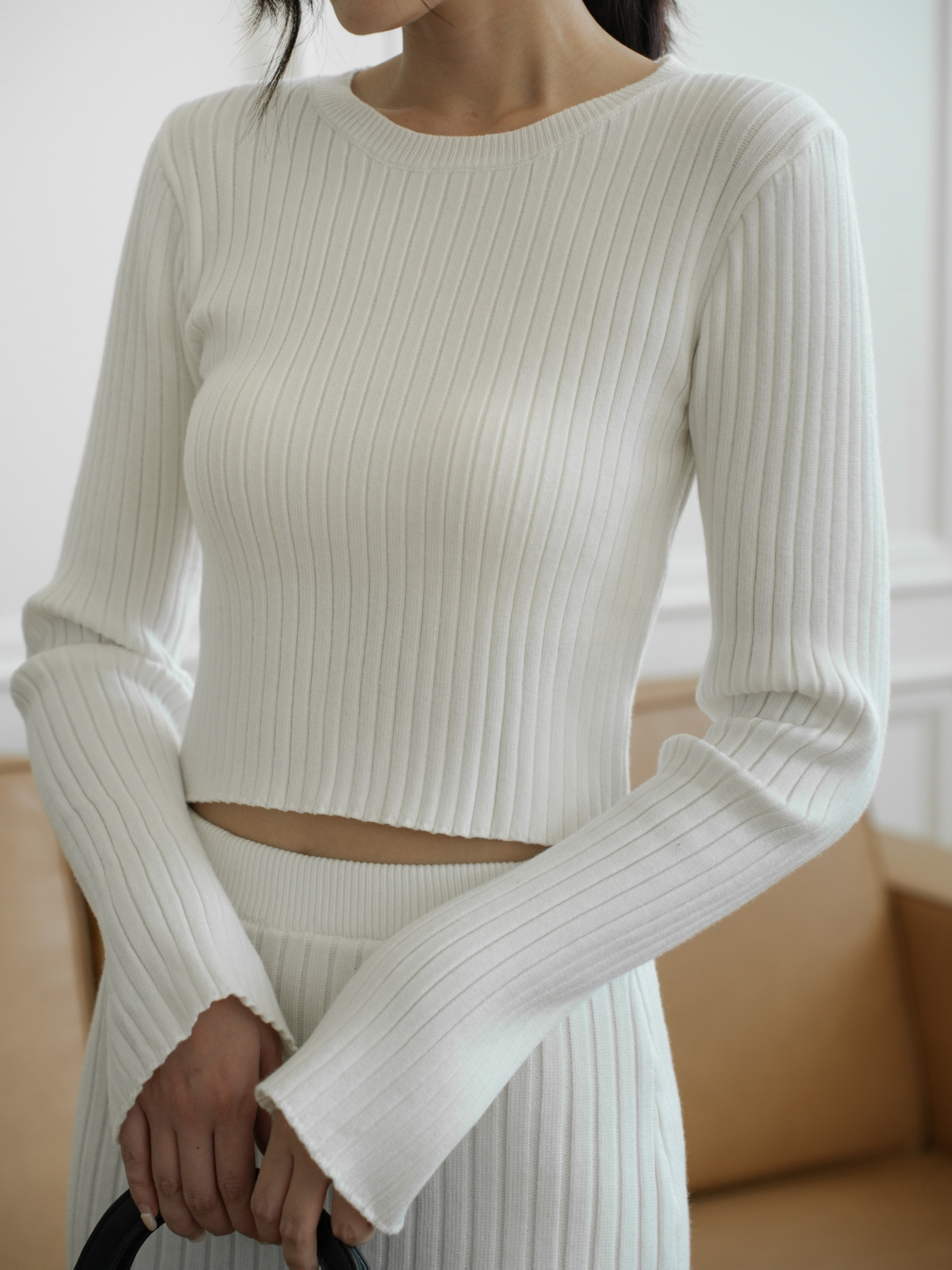 圓領剪裁 / 微短版 / 微喇叭袖設計