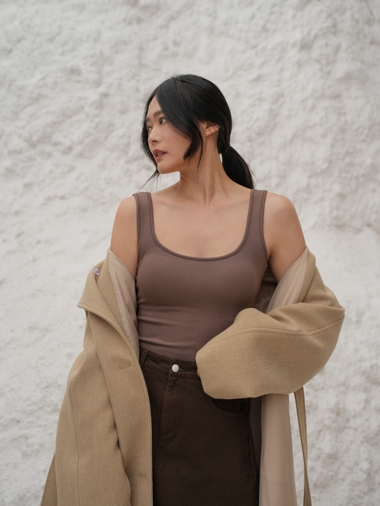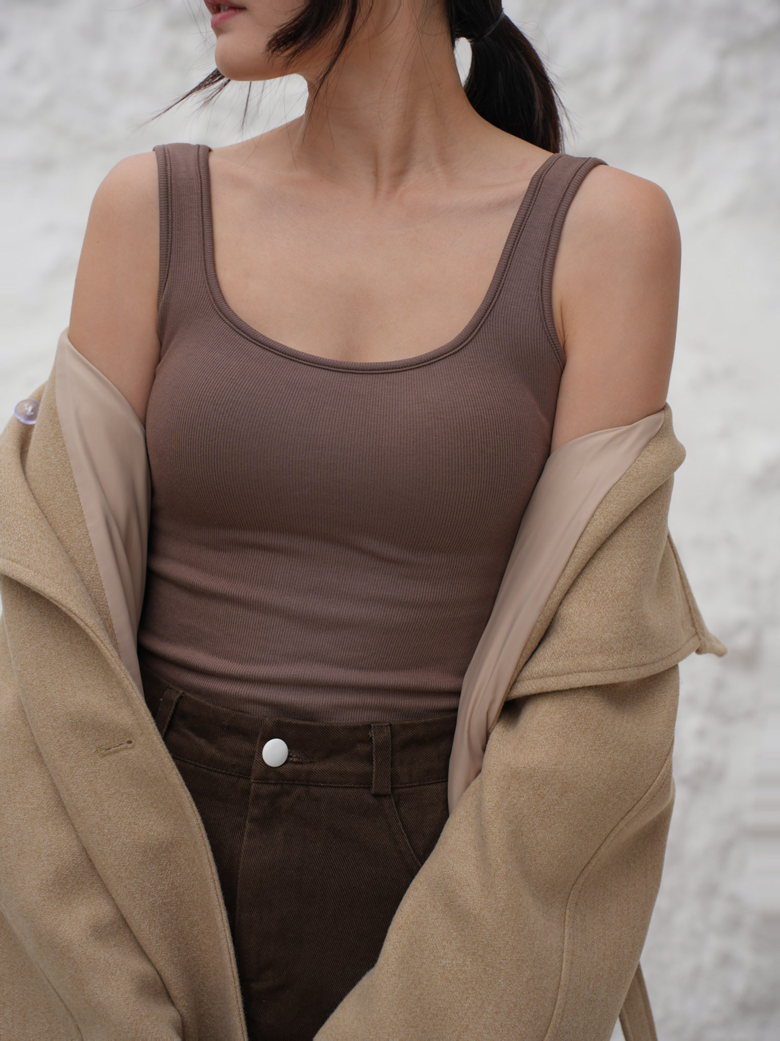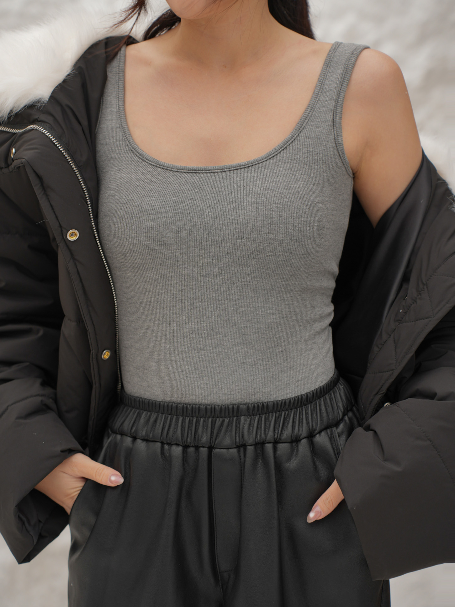 方領 / 寬肩帶 / 固定式胸墊 / 彈力螺紋面料 / 內裡保暖內磨毛