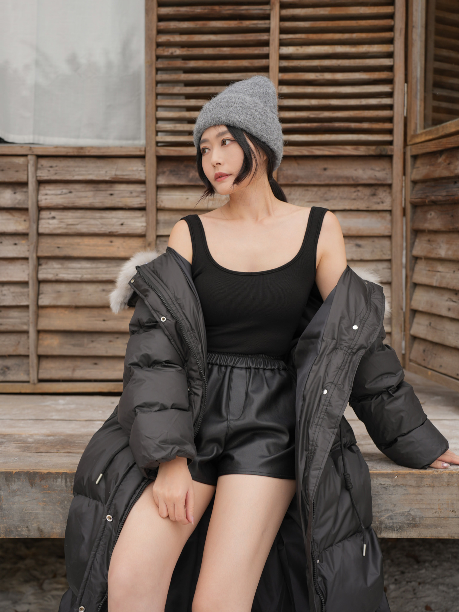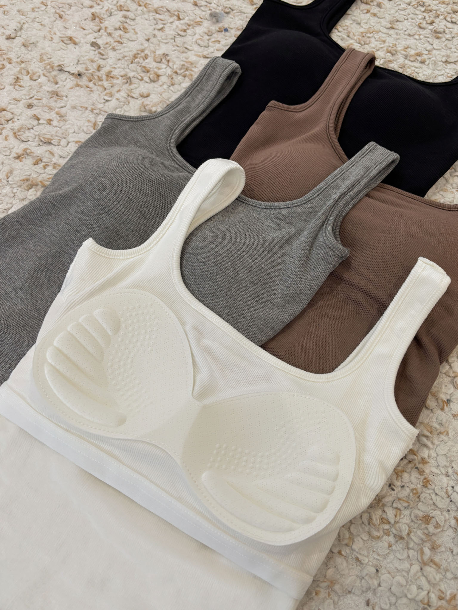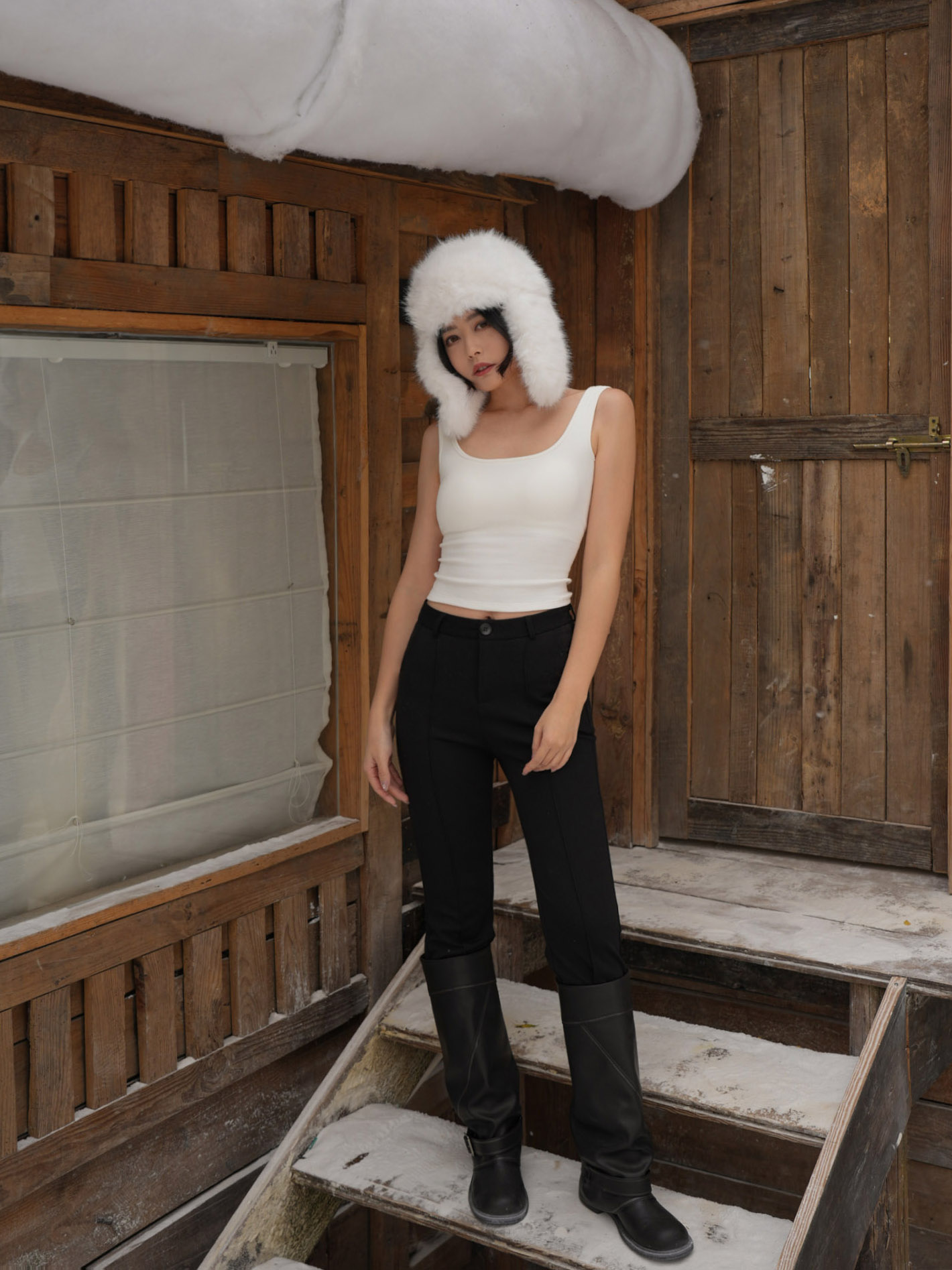 方領 / 寬肩帶 / 固定式胸墊 / 彈力螺紋面料 / 內裡保暖內磨毛