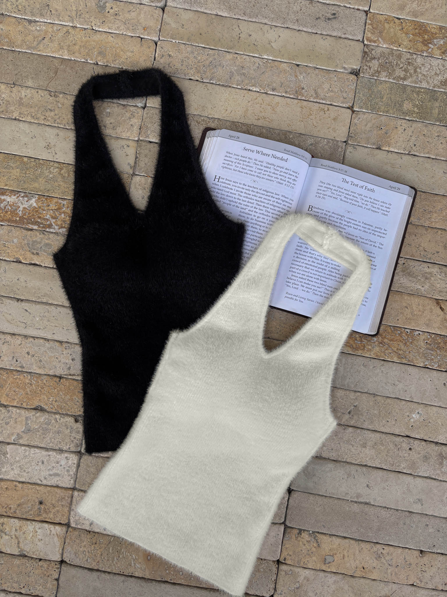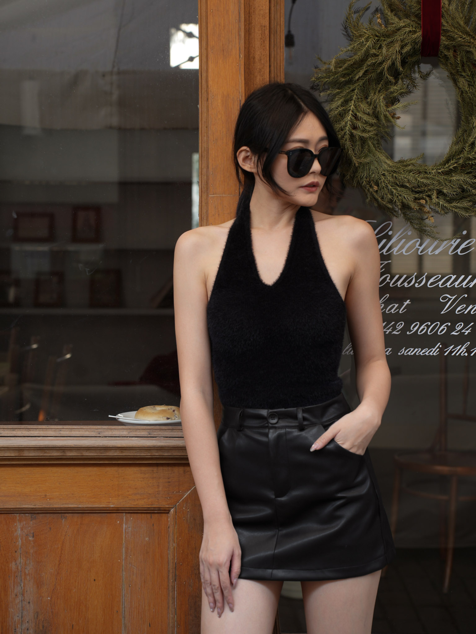 繞脖設計 / 內有可拆式胸墊 / 質感水貂毛面料