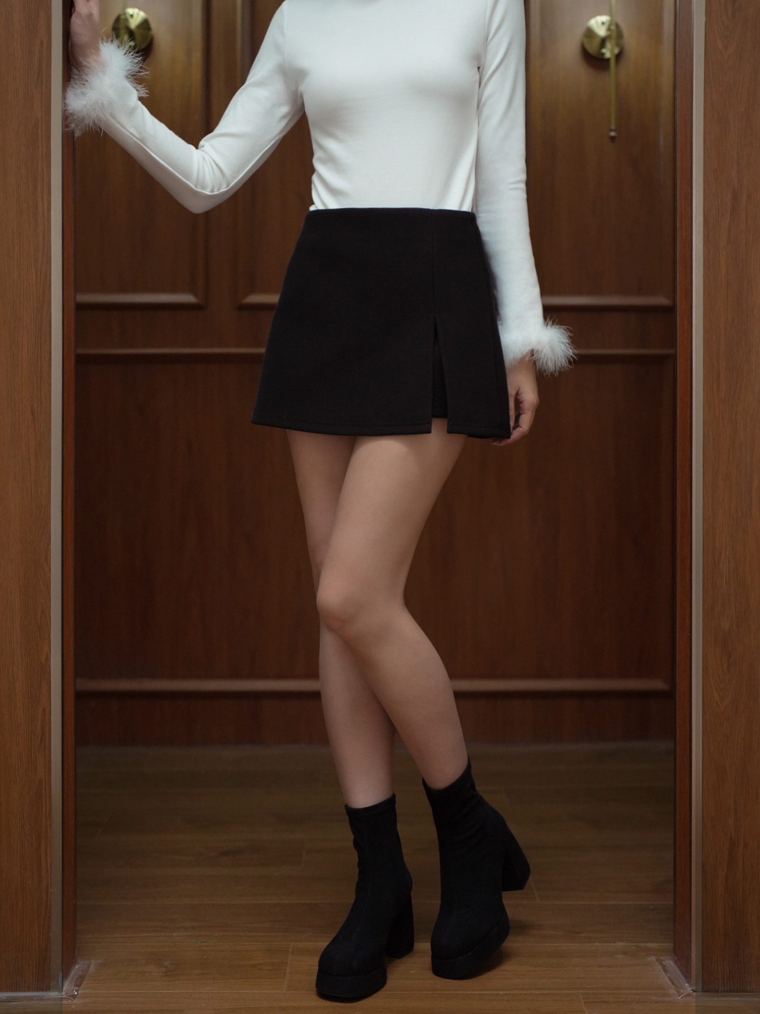開岔設計 / 有拉鍊 / 同色布褲子內裡 / 挺版毛呢面料