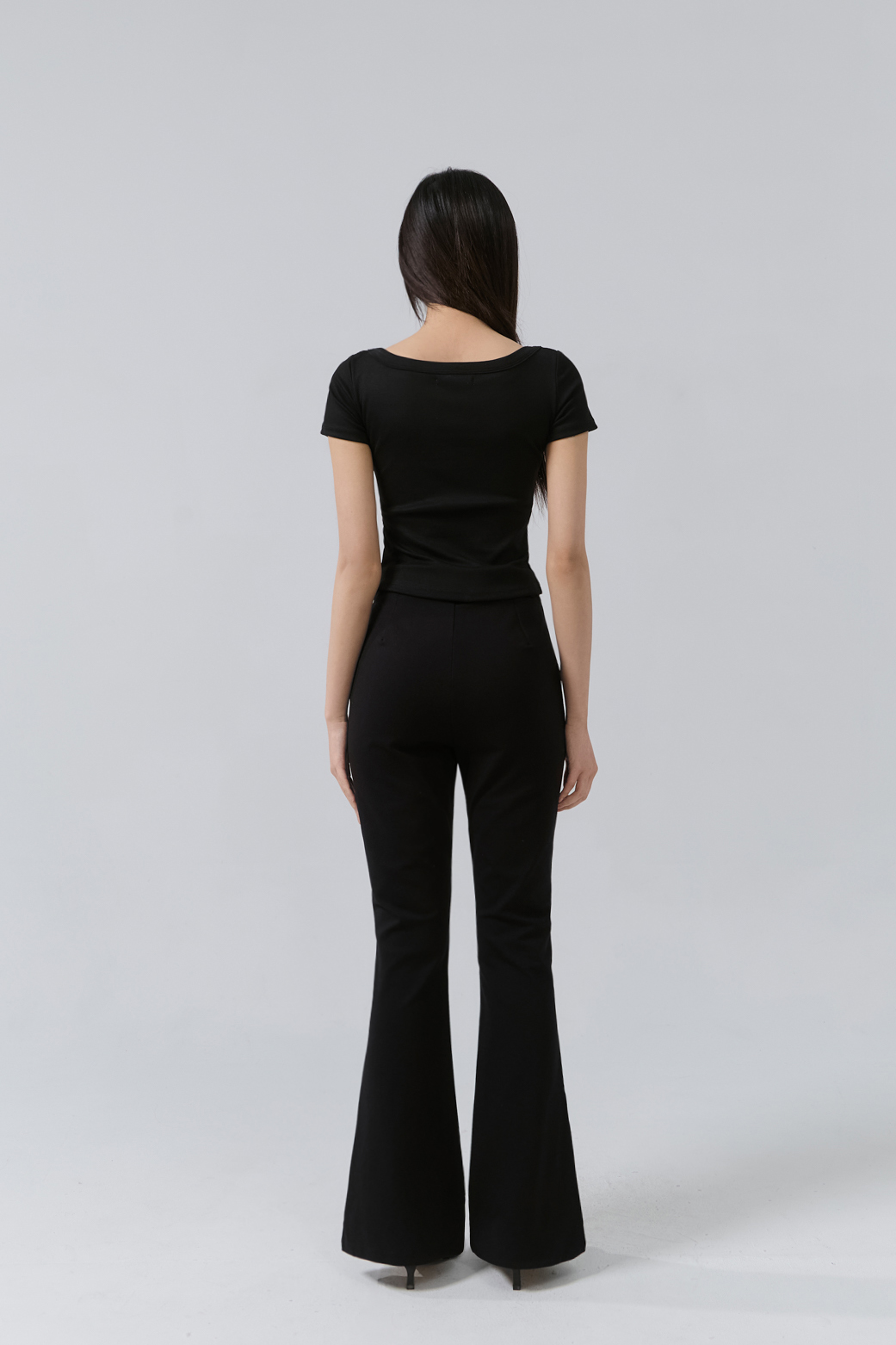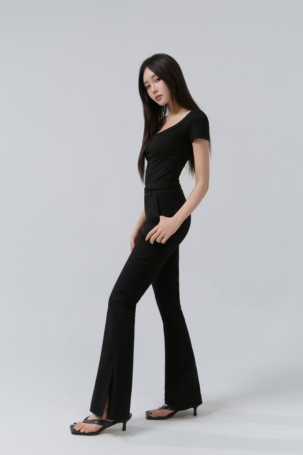 中高腰 / 直筒版型 / 鈕釦及拉鍊 / 有褲耳 / 兩側口袋 / 兩側褲管開岔
