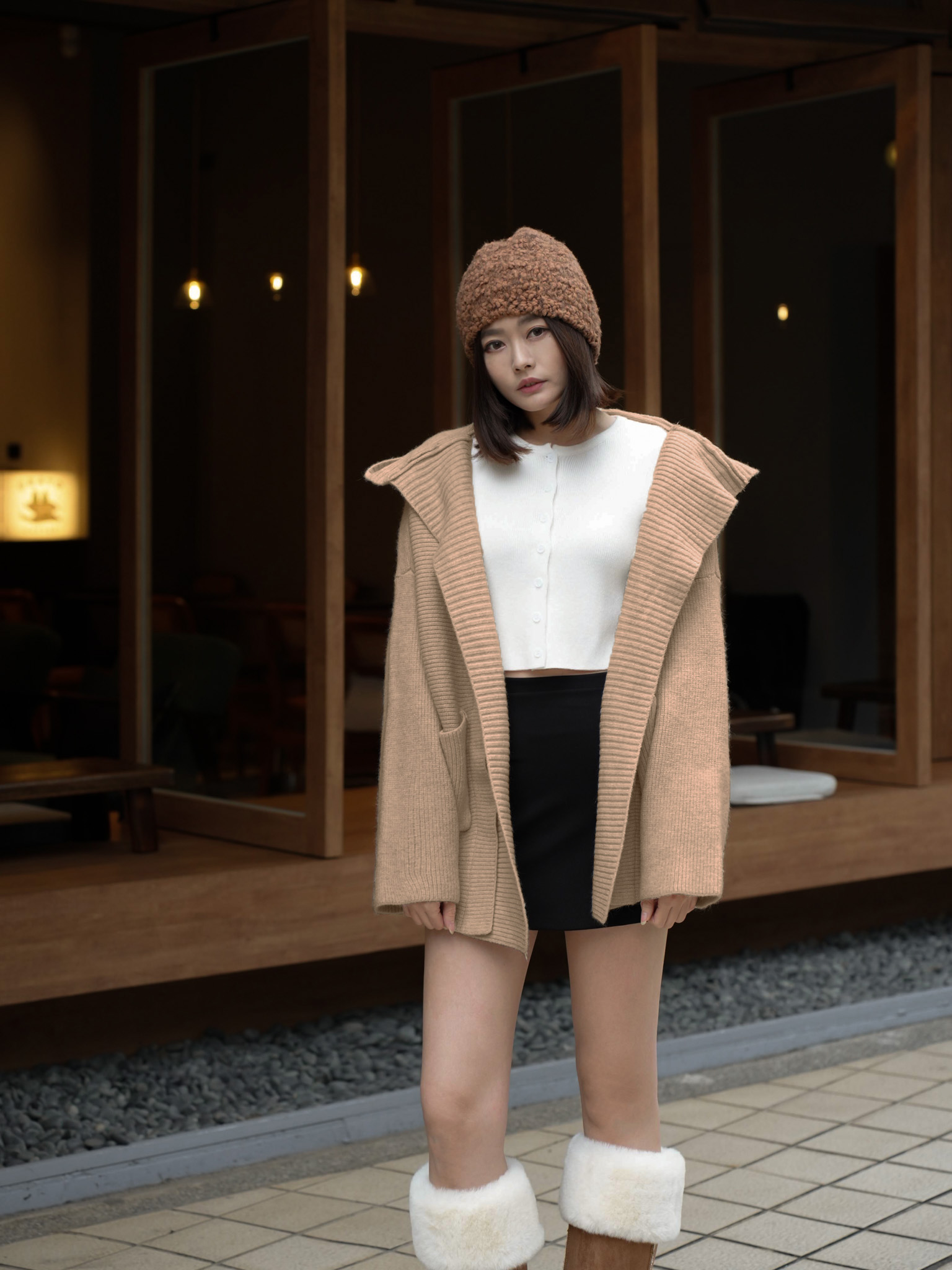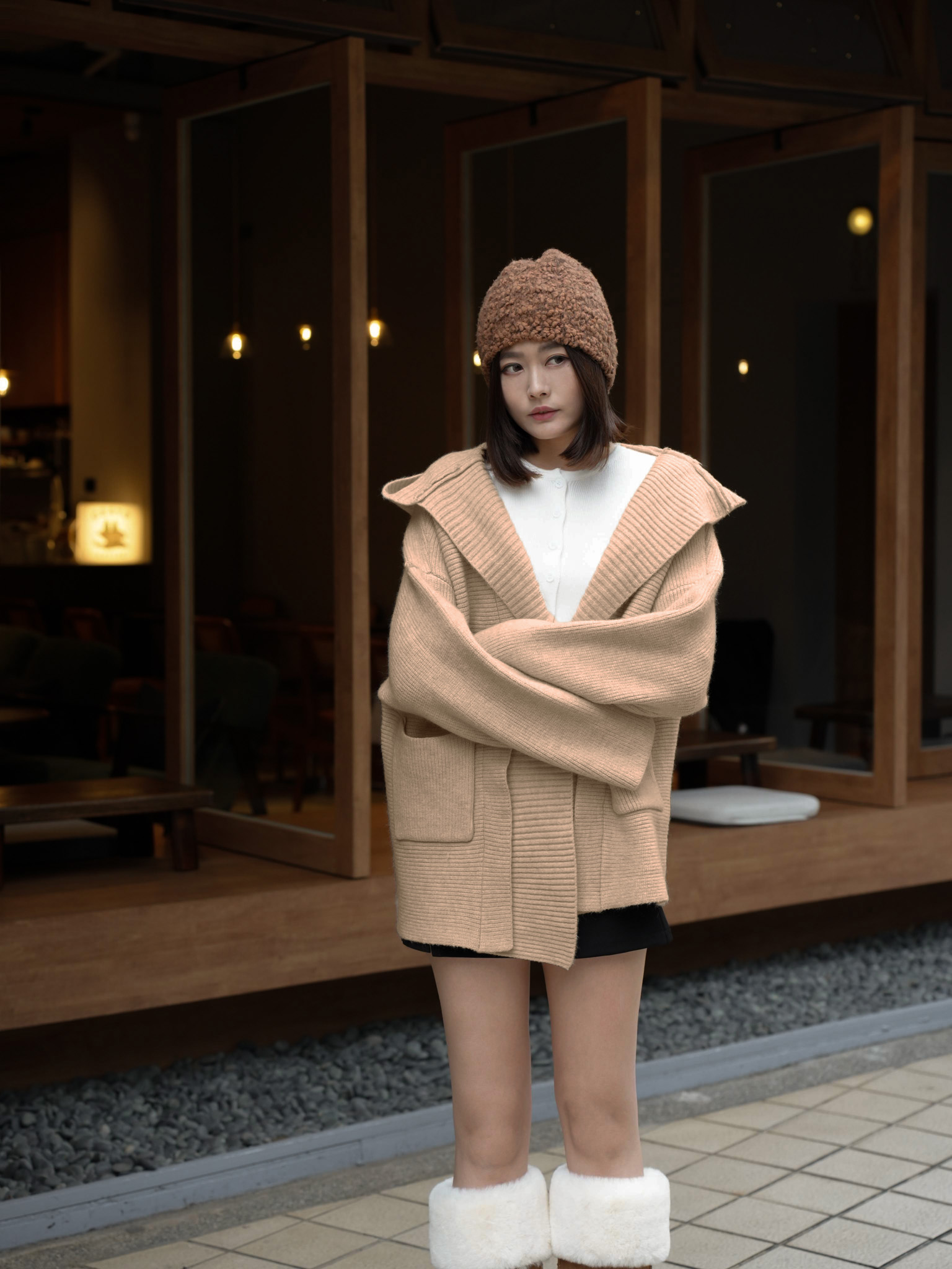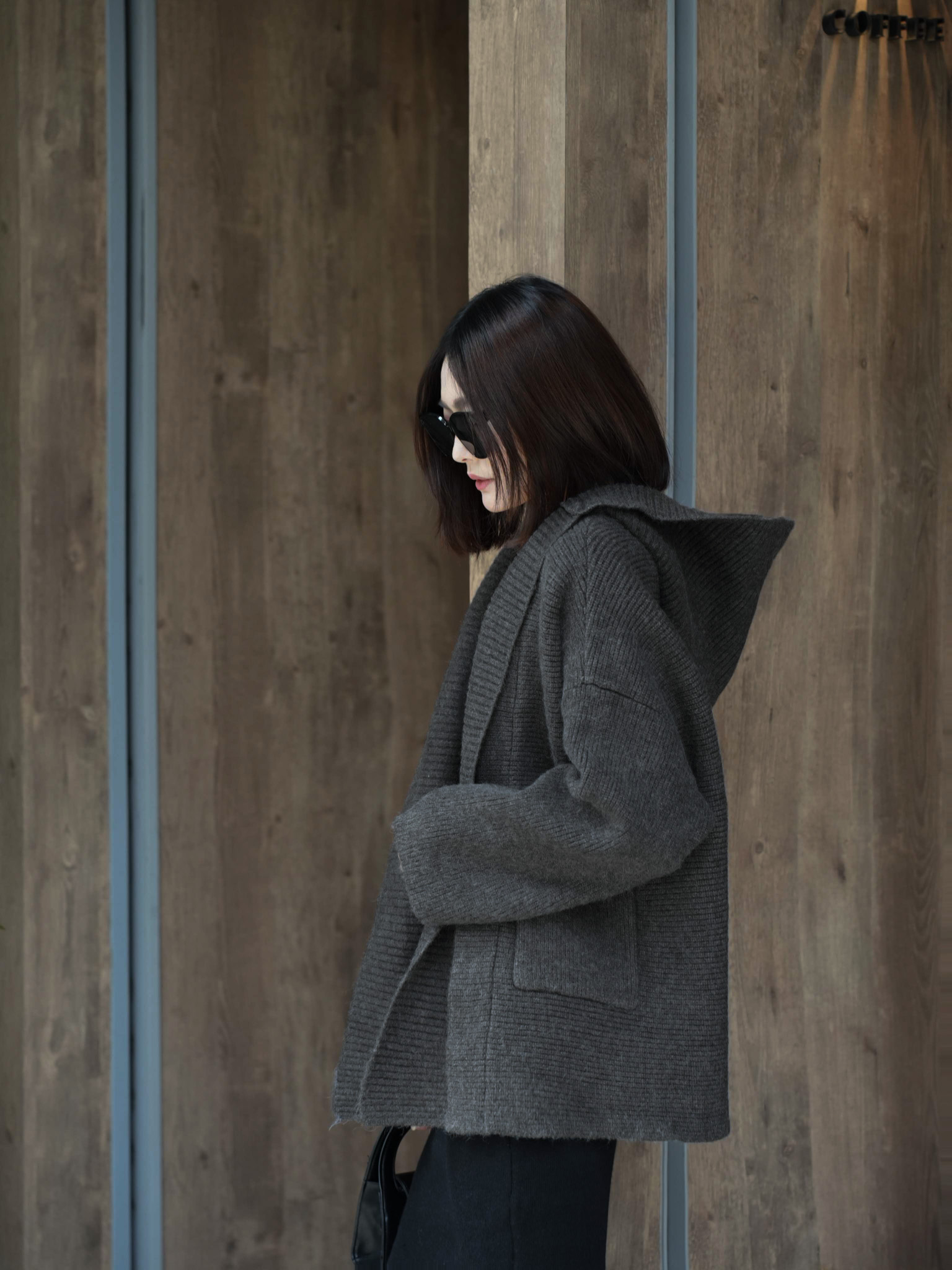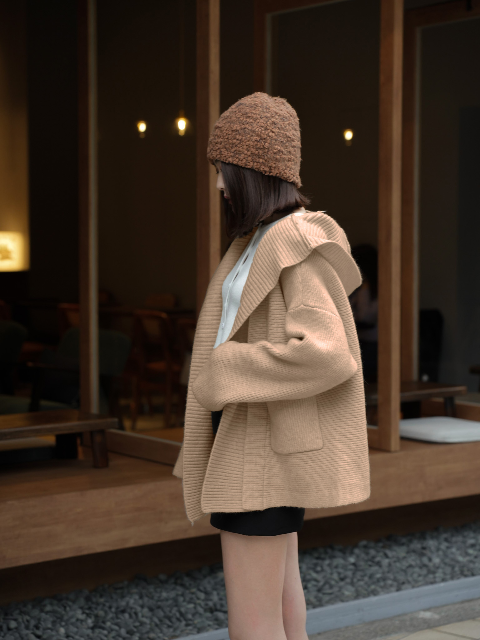 厚磅羊絨連帽口袋針織外套 0107252