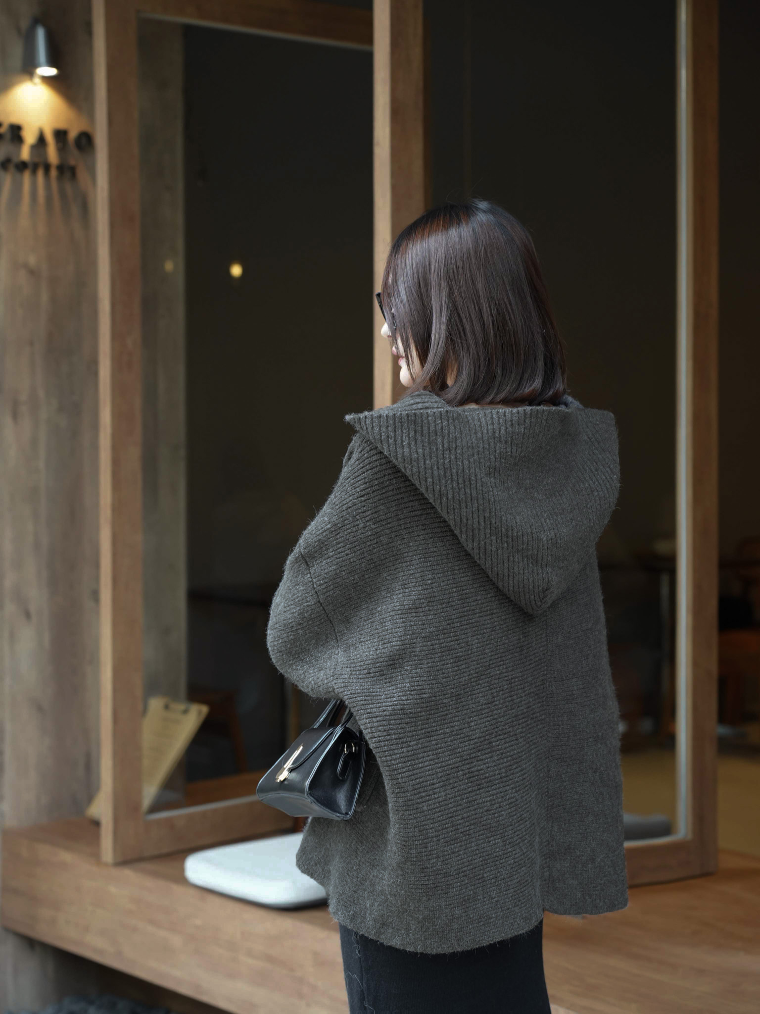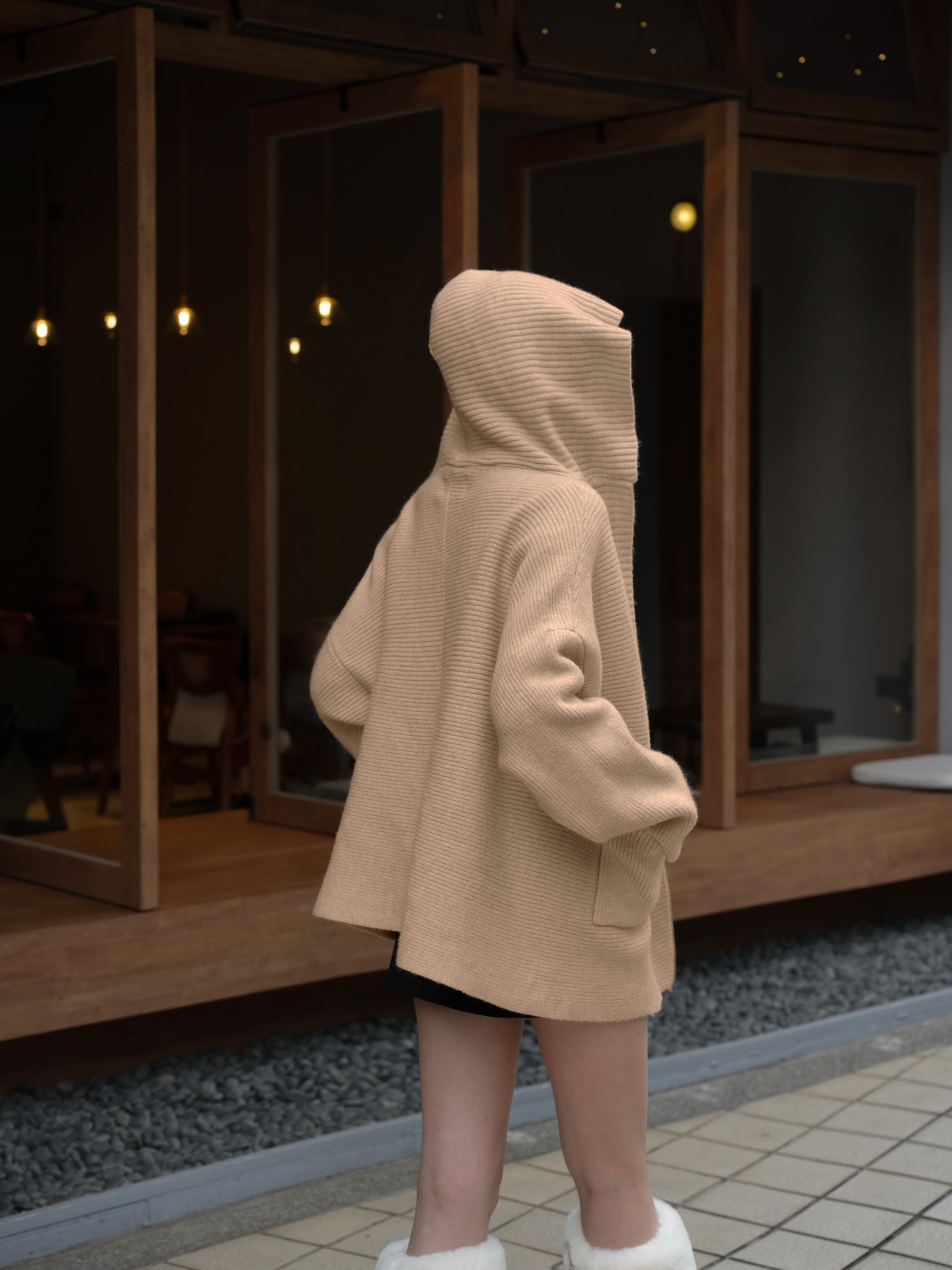 寬鬆落肩/連帽設計/前口袋/厚磅挺版羊絨針織