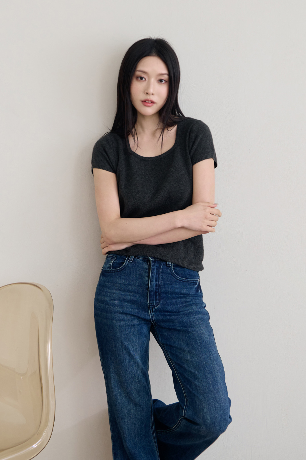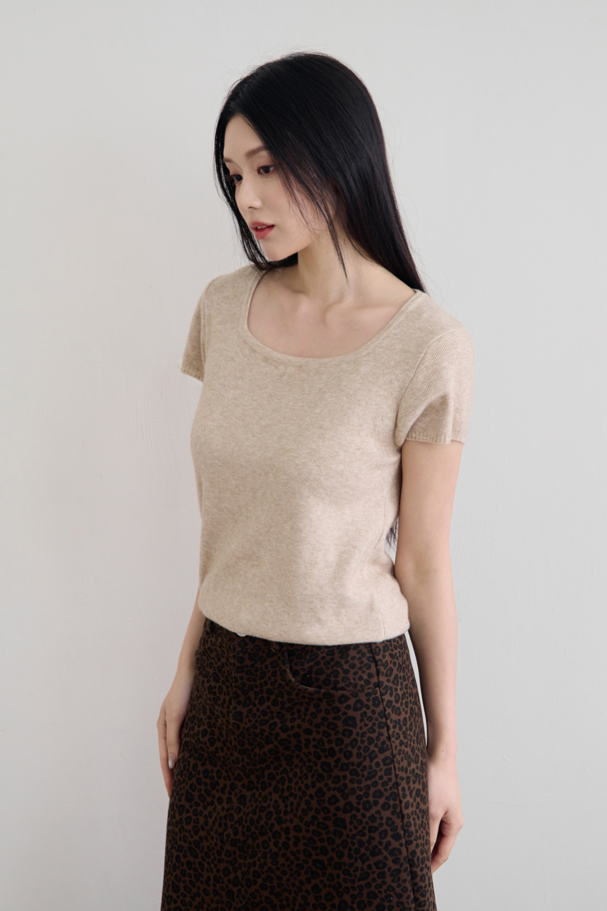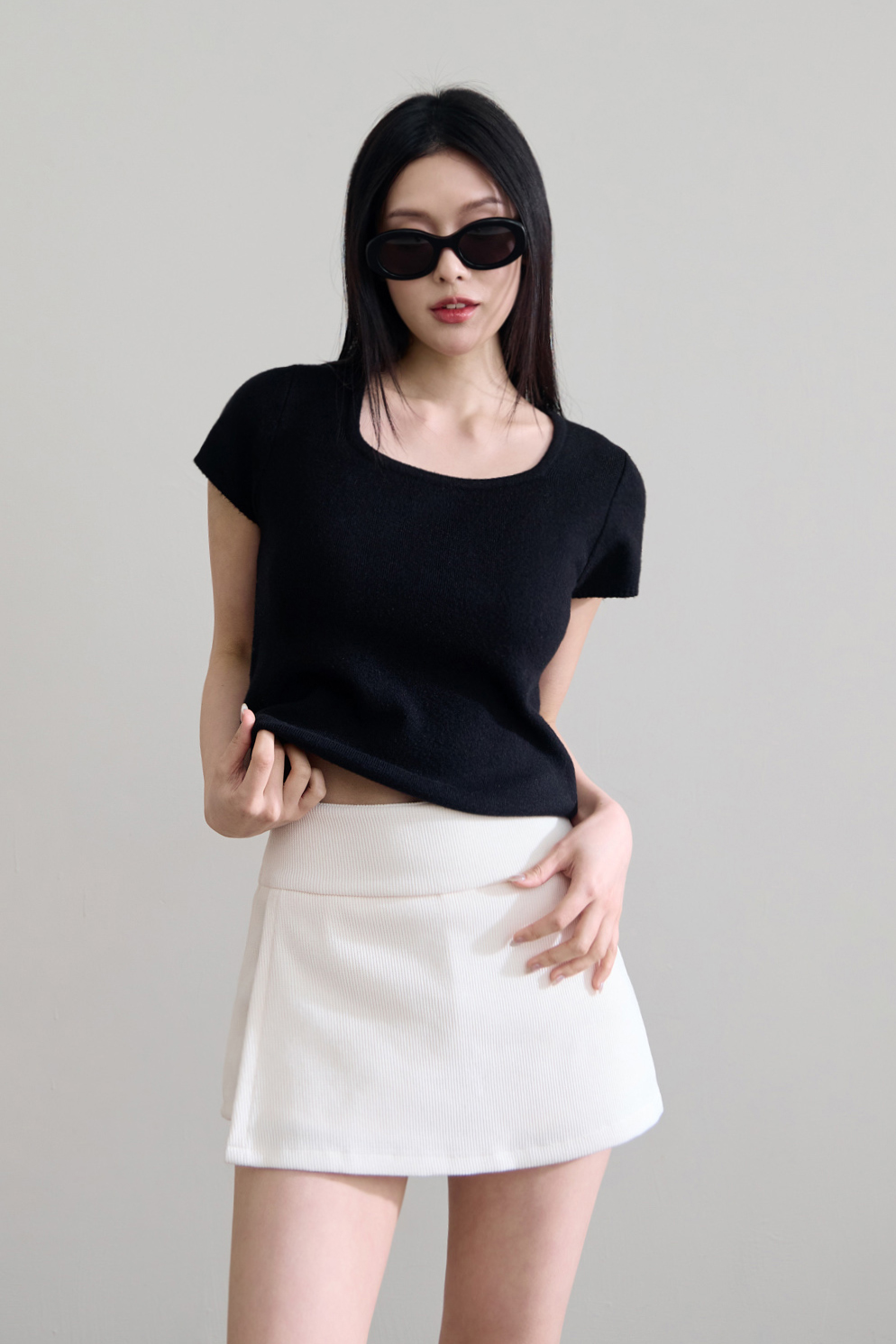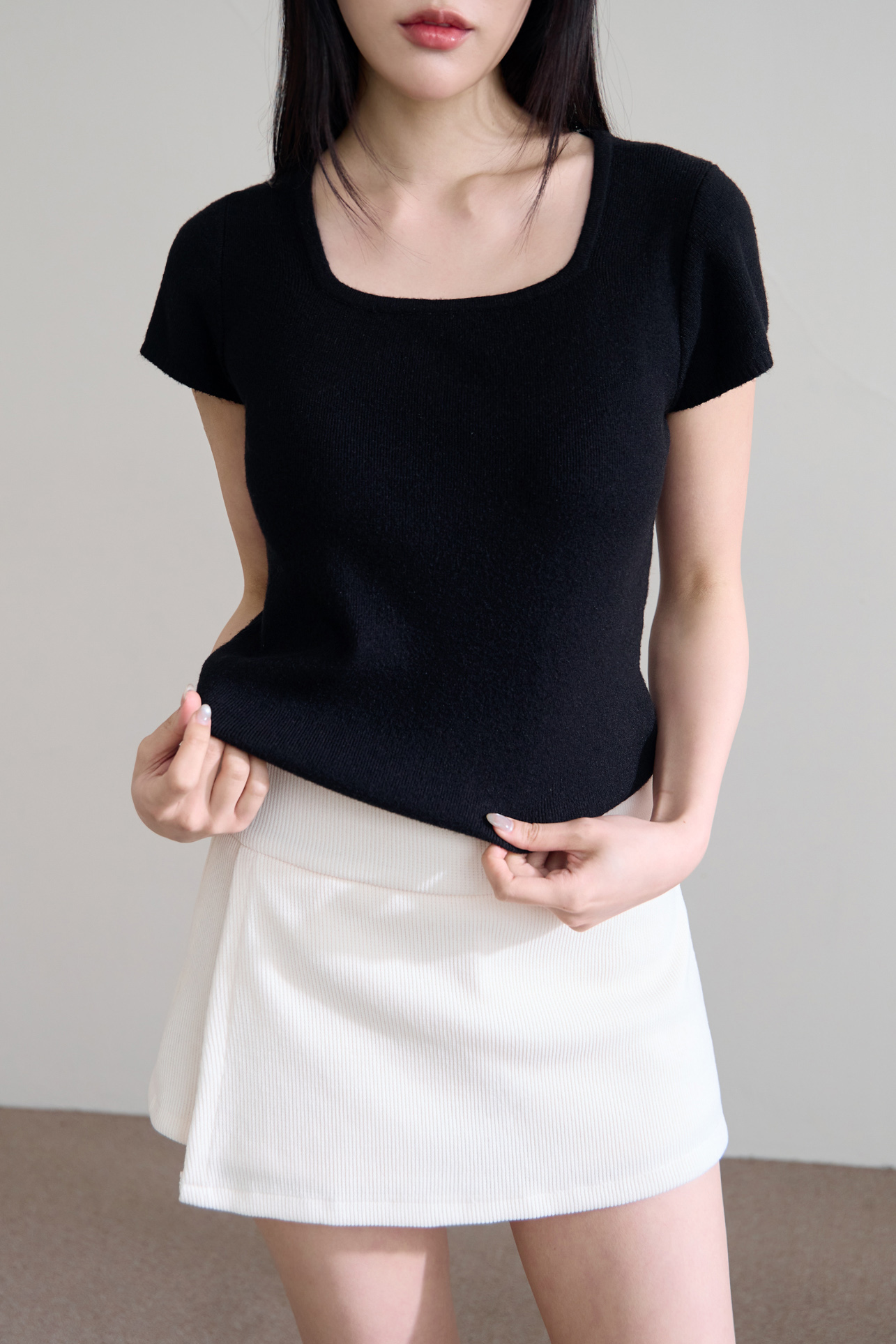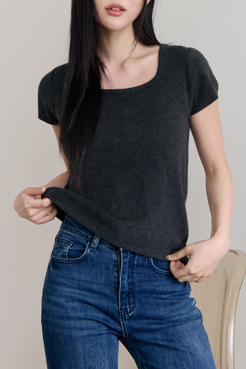 細針織方領短袖上衣 0104253