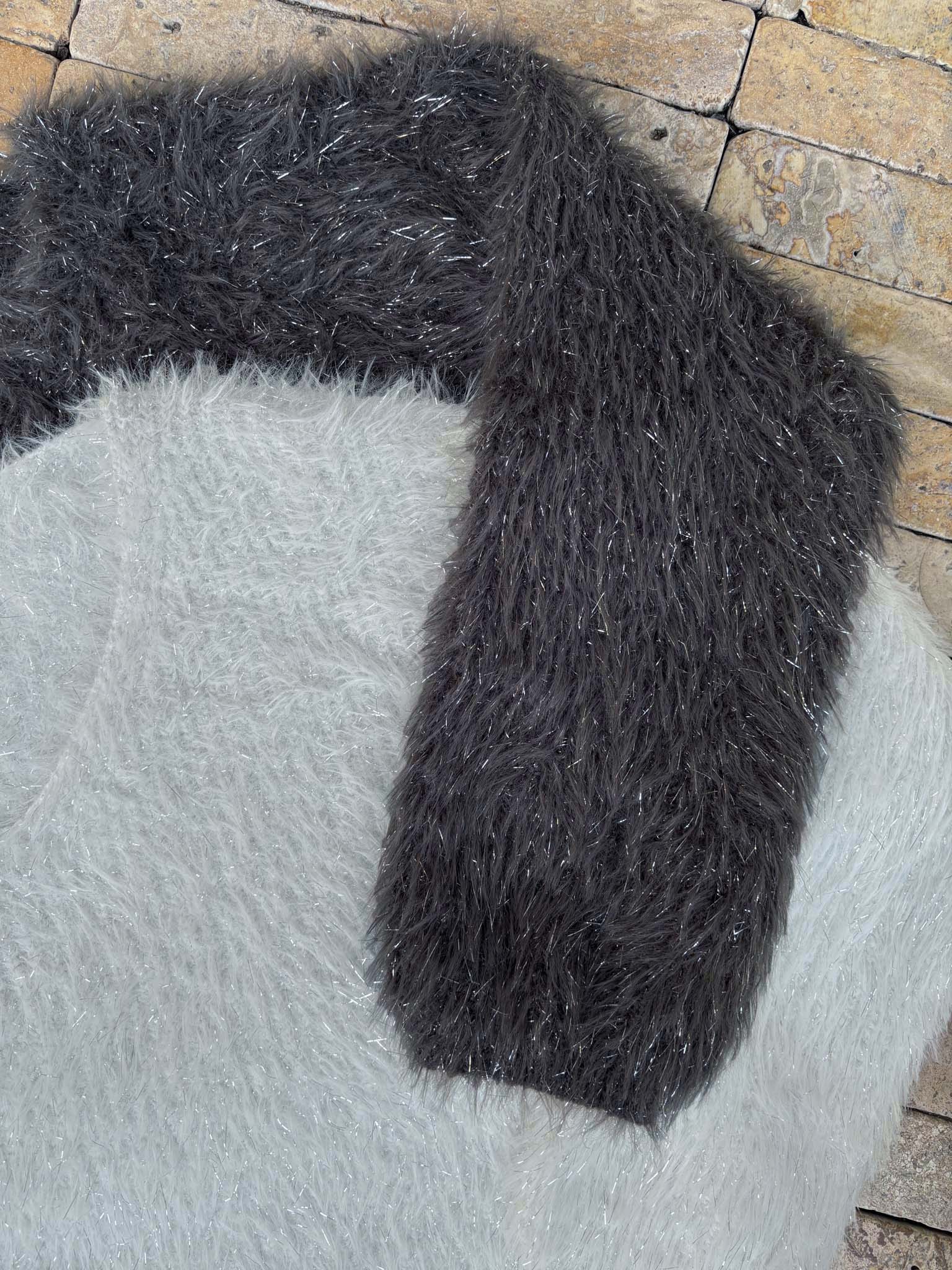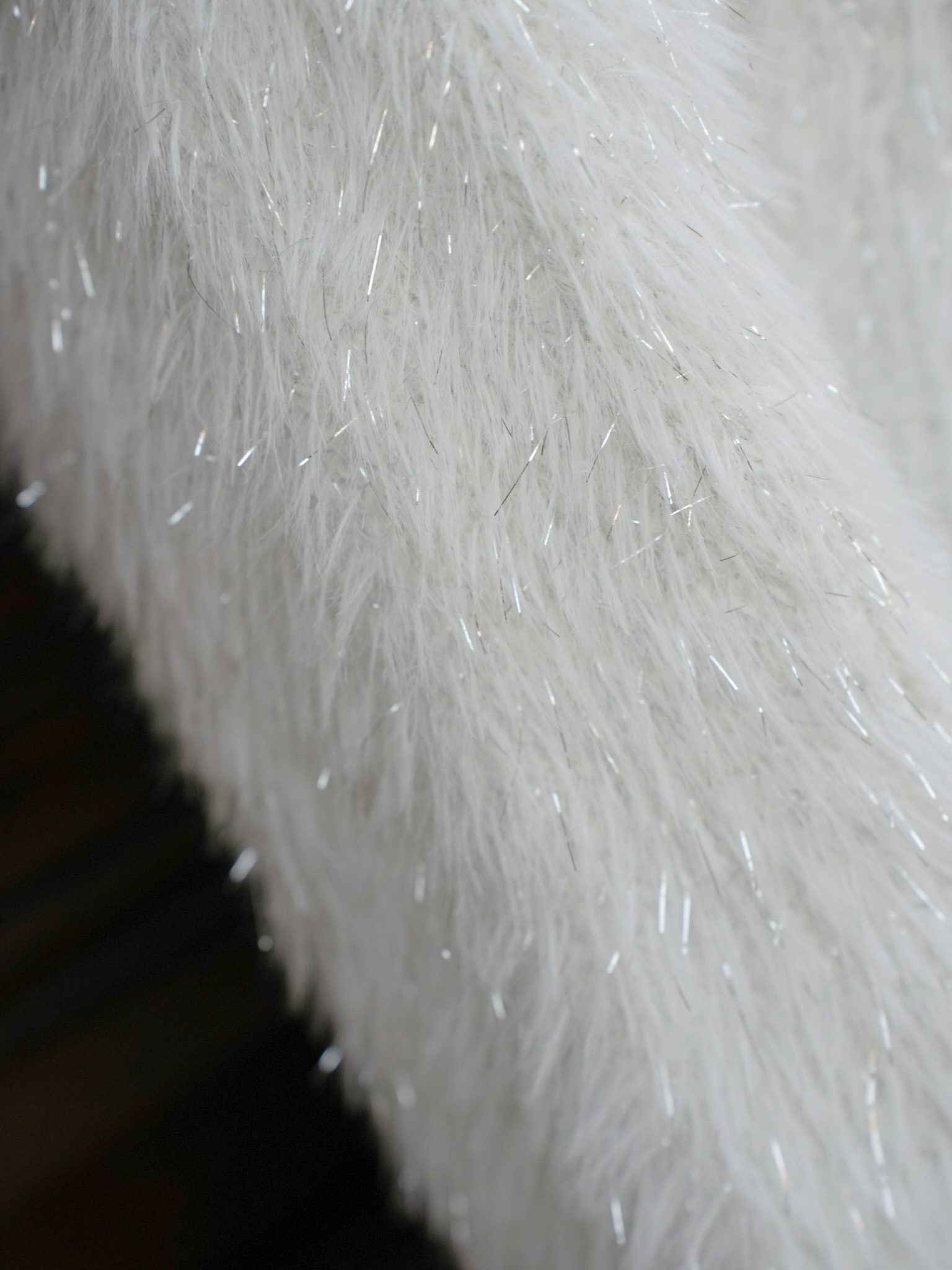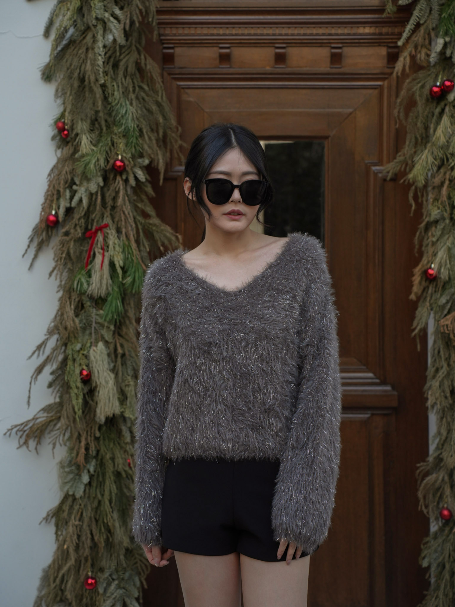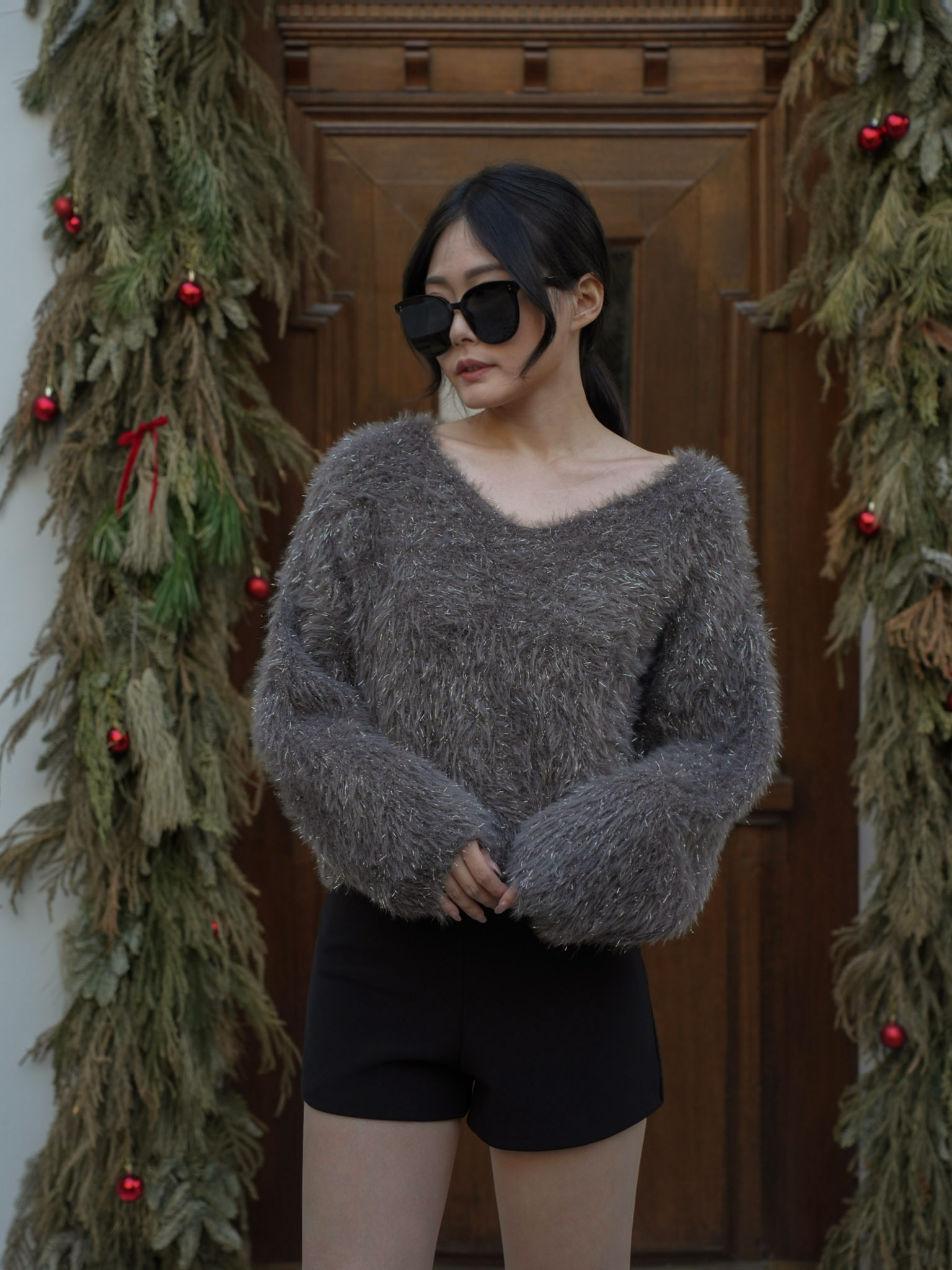 寬鬆落肩 / 大V領可穿斜肩&一字領 / 混銀蔥細節(不刺膚) / 柔軟水貂毛針織