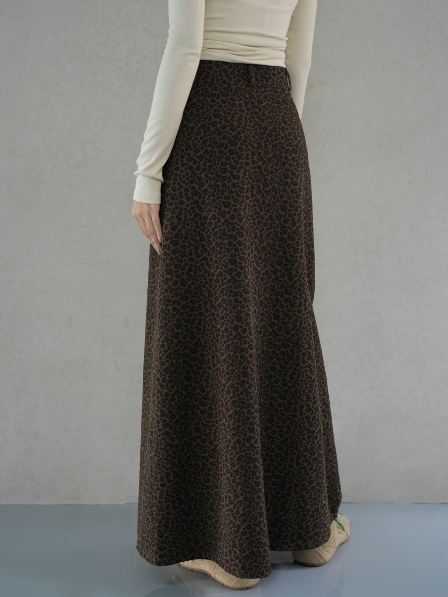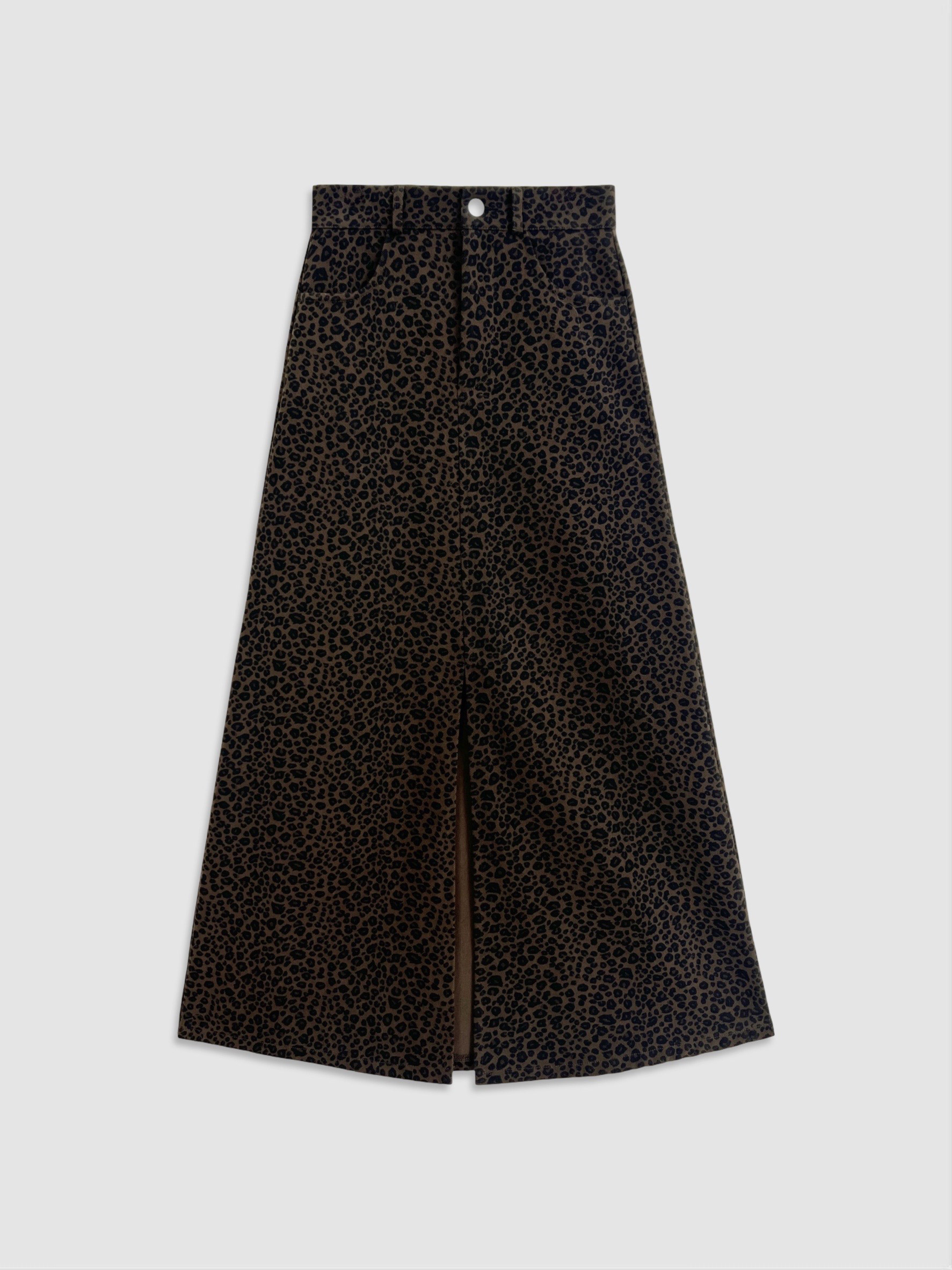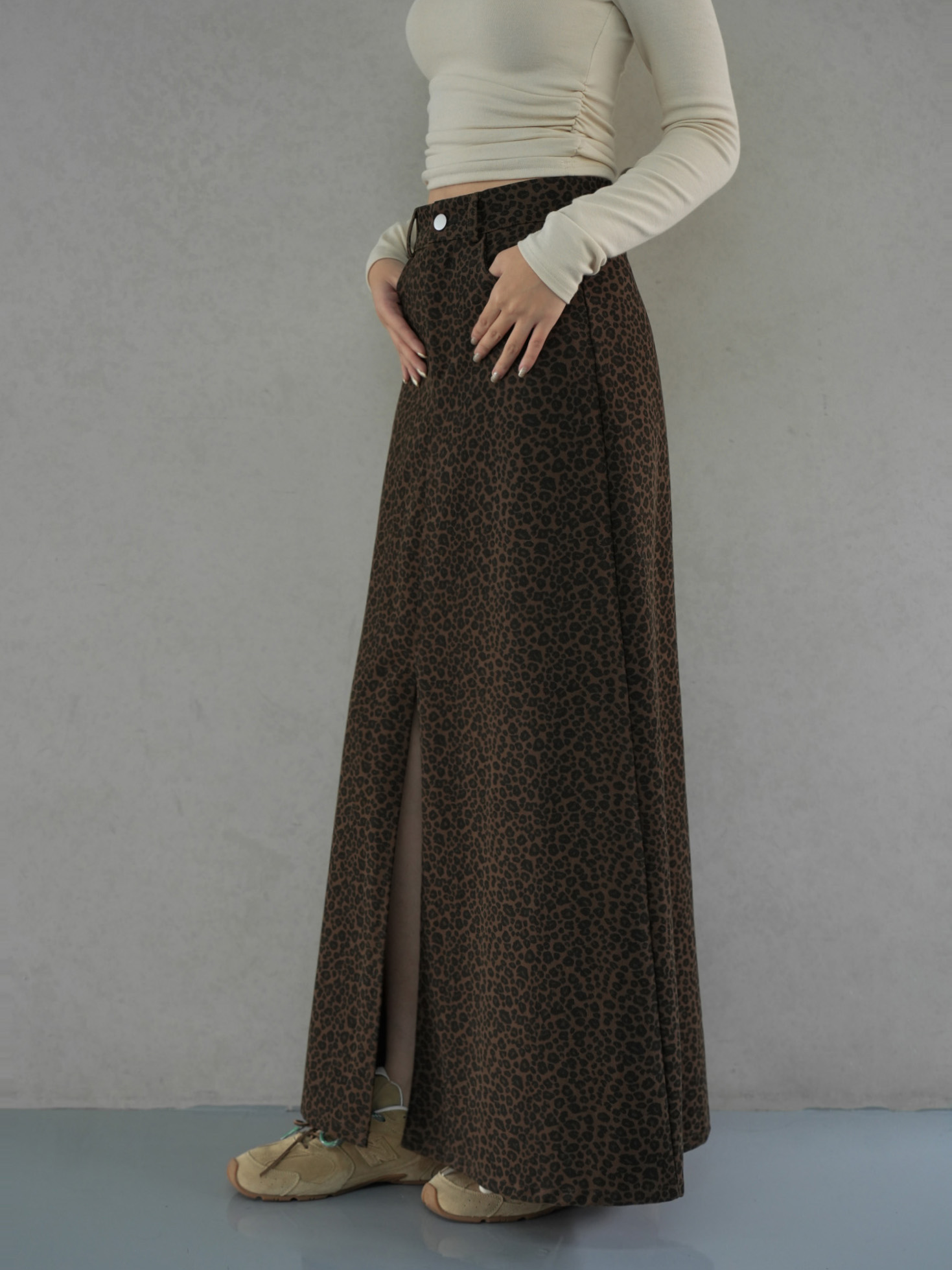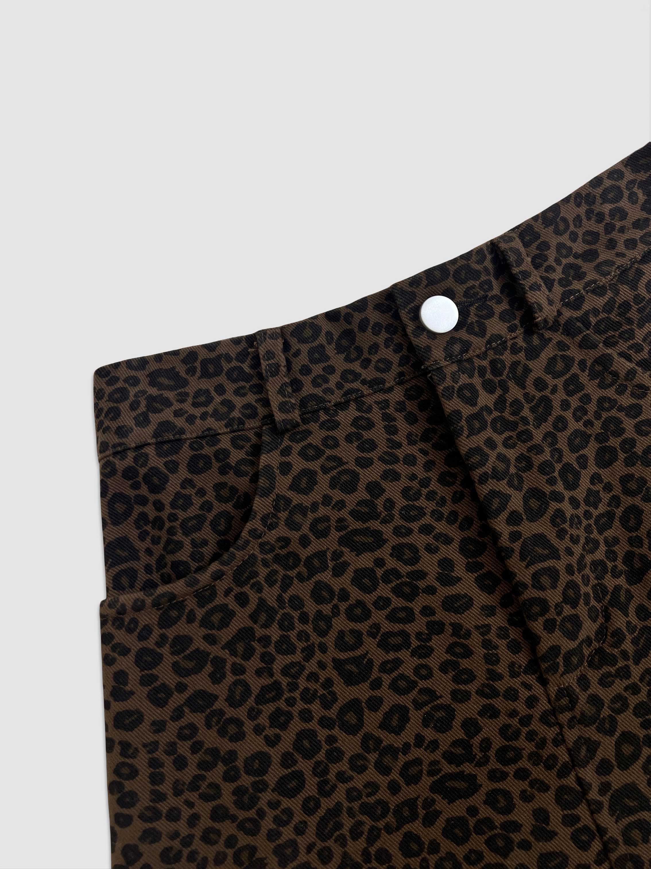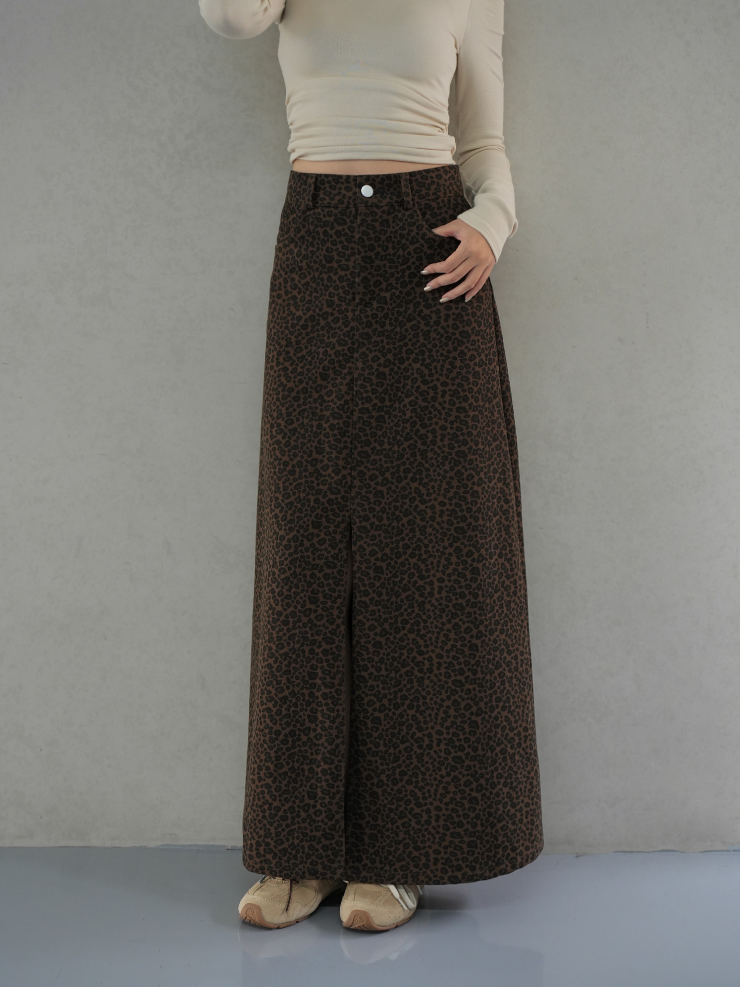 正面兩側口袋 / 前開岔 / 傘擺設計 / 修身版型 / 質感豹紋