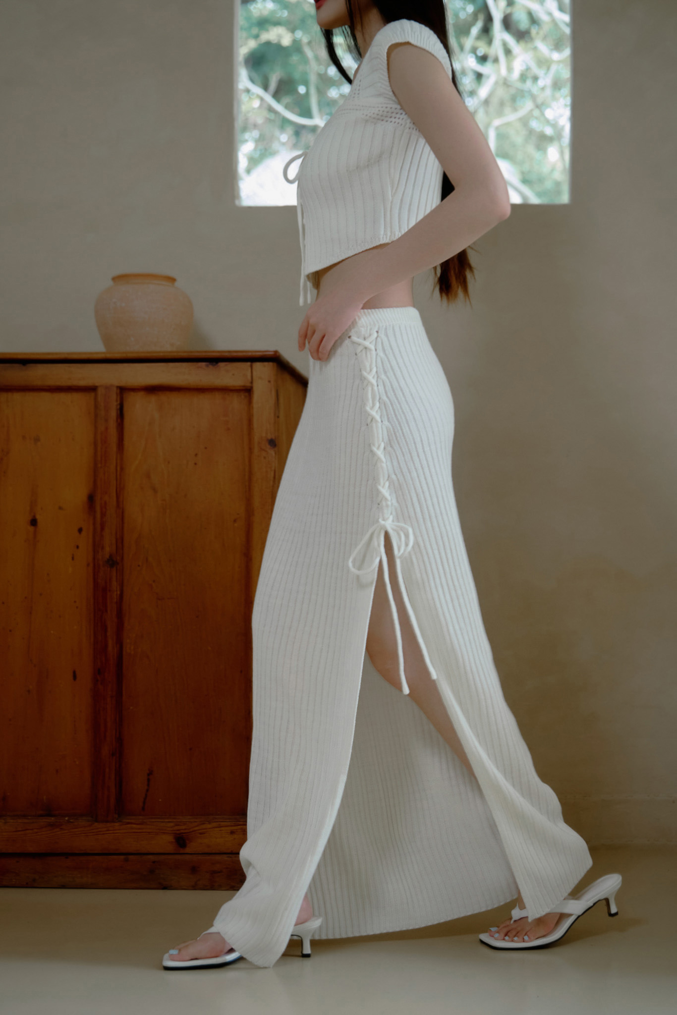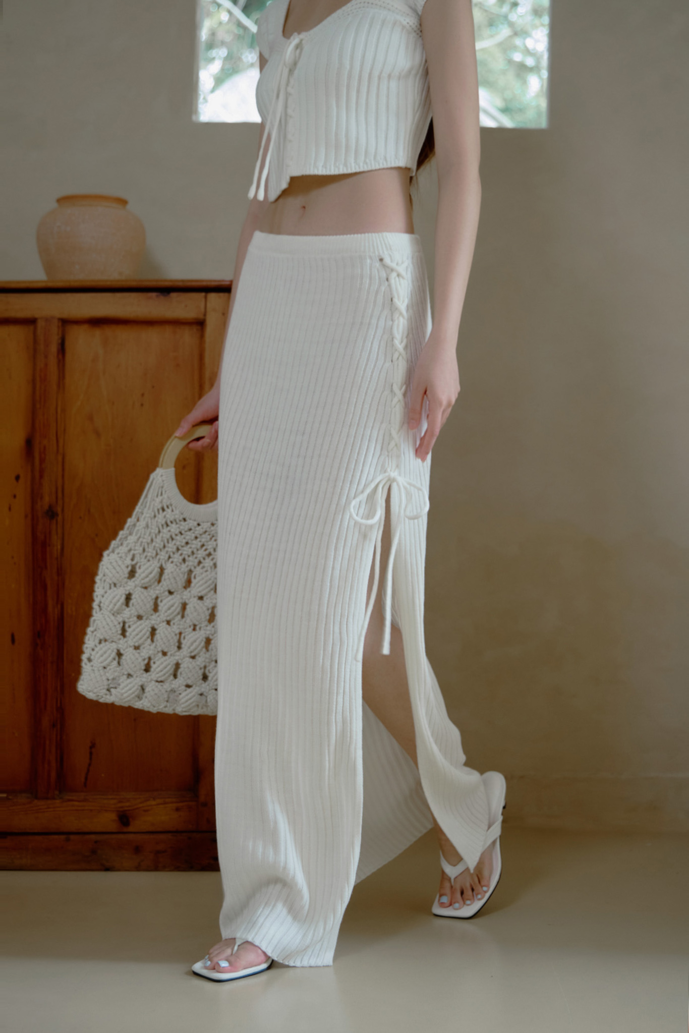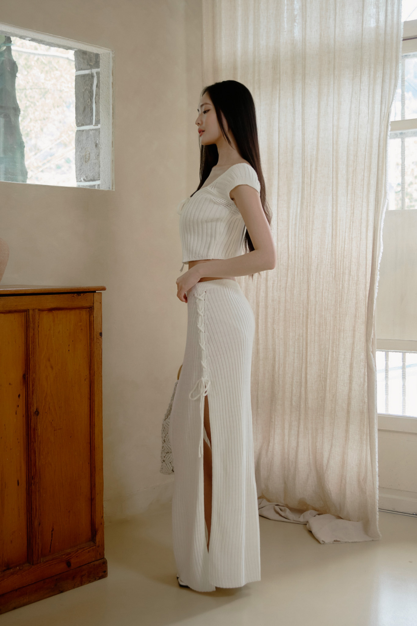 針織:避免陽光曝曬,採用陰乾方式。建議盡量手洗,勿大力扭轉或搓揉,熨燙請使用蒸汽熨斗,中低溫並保持距離。陰涼通風處晾乾,切勿掛在衣架晾乾,使用中性洗滌劑手洗及放入洗衣袋洗滌。