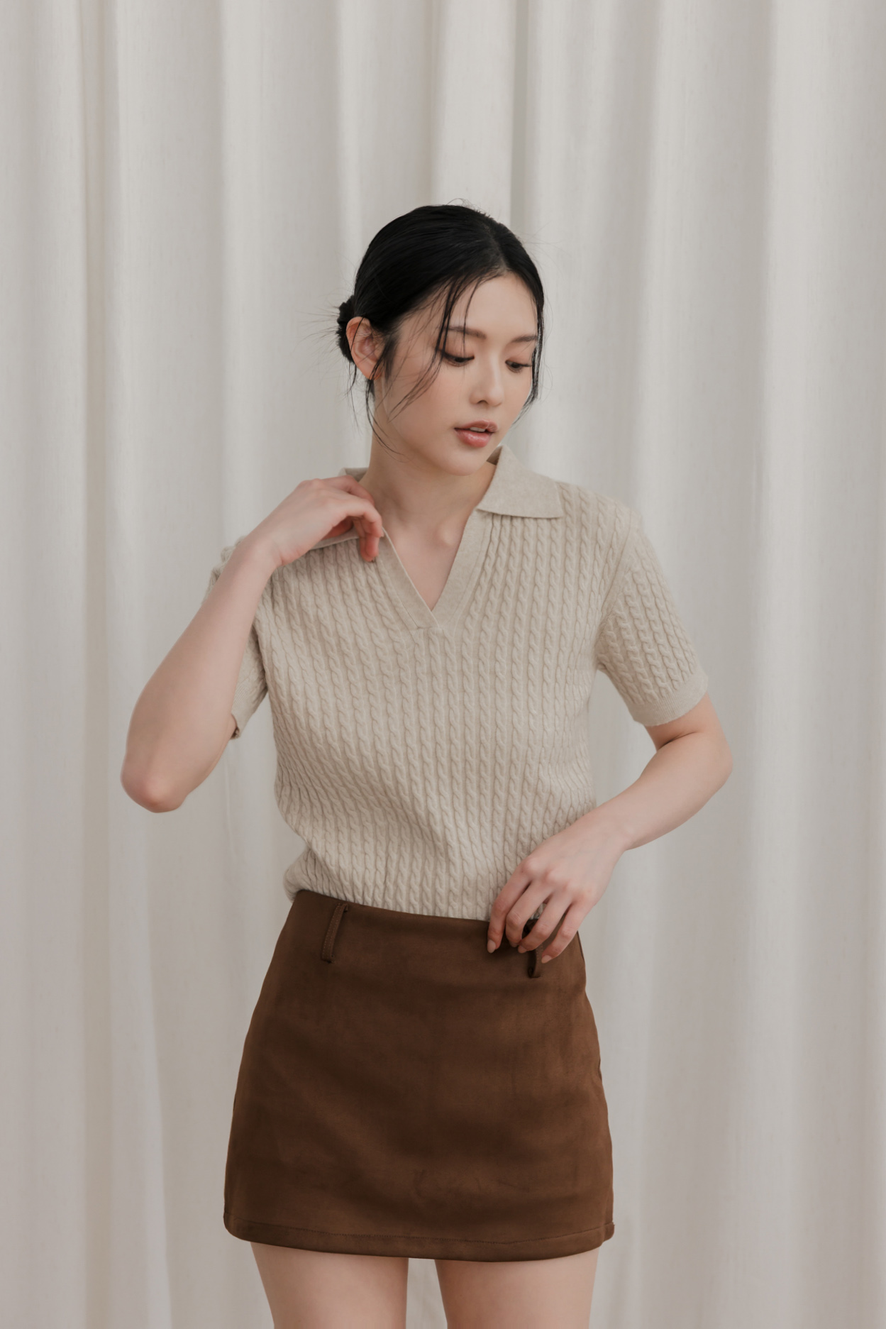 V領剪裁顯臉小,日常就能輕鬆穿搭