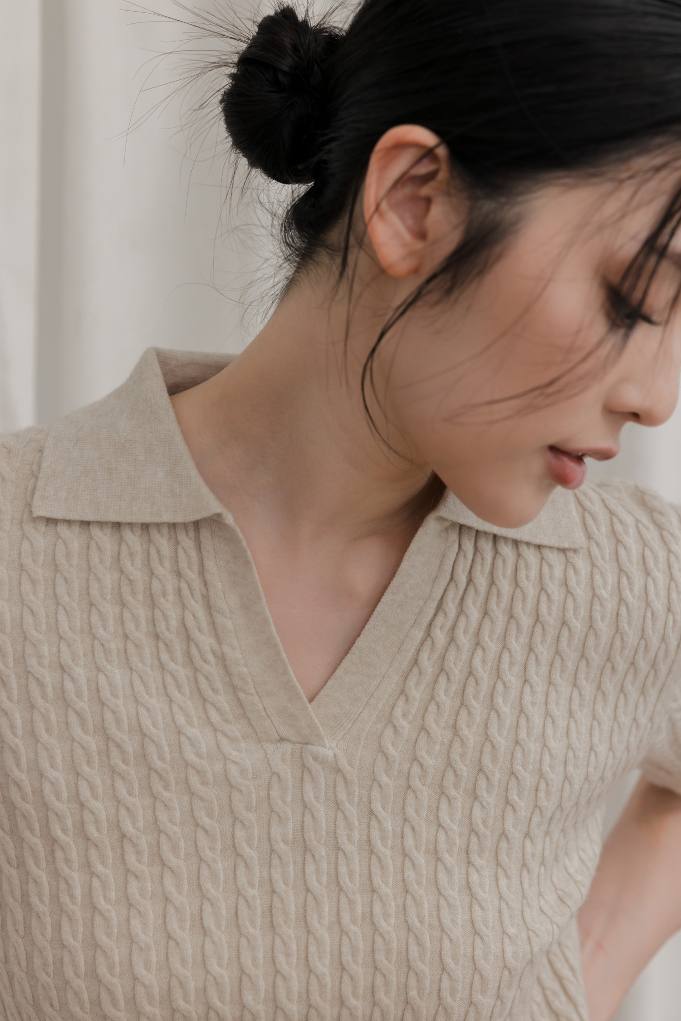 V領 / 寬鬆 / 整件彈性 / 立體麻花紋 / 質感細針織
