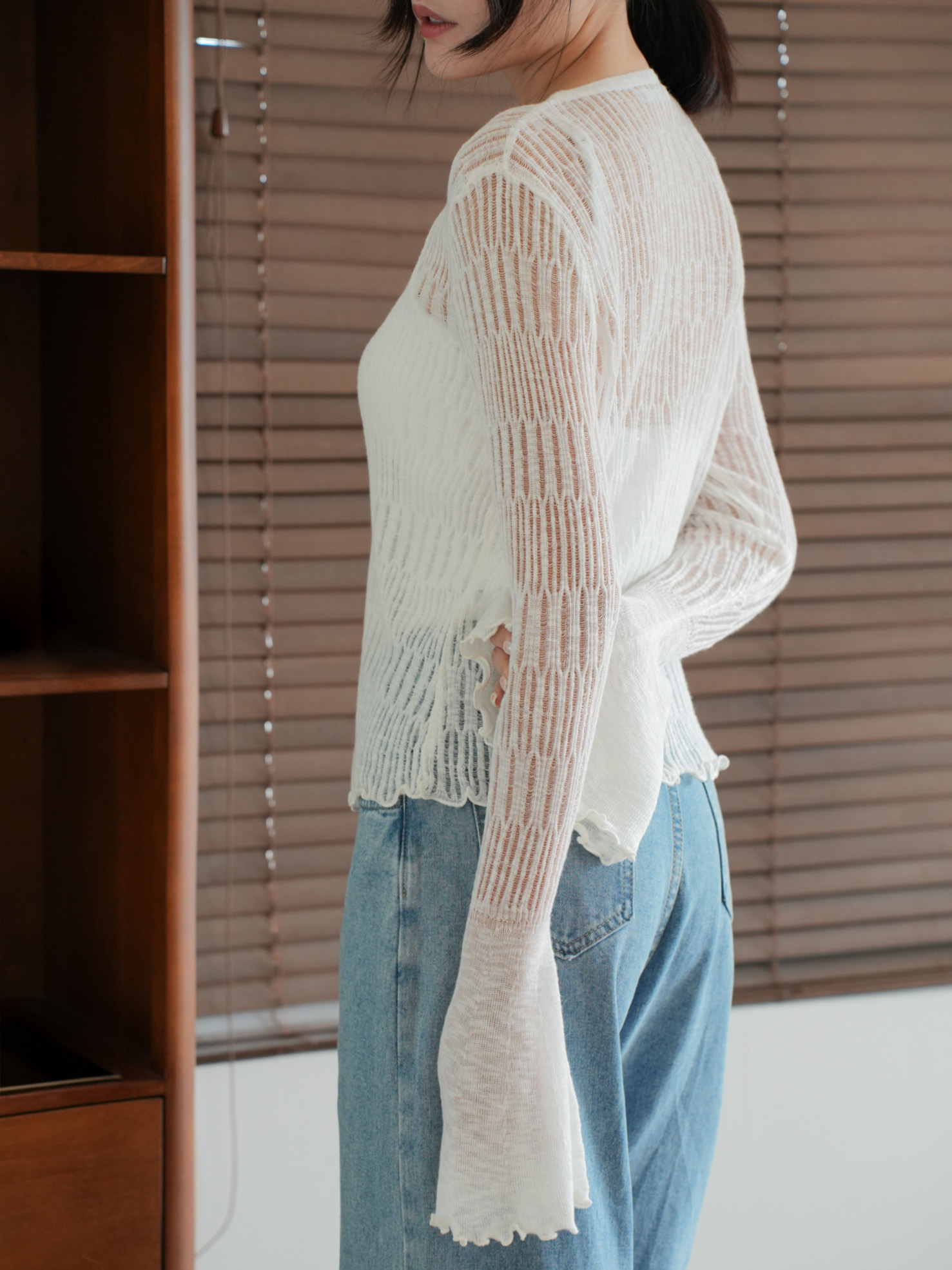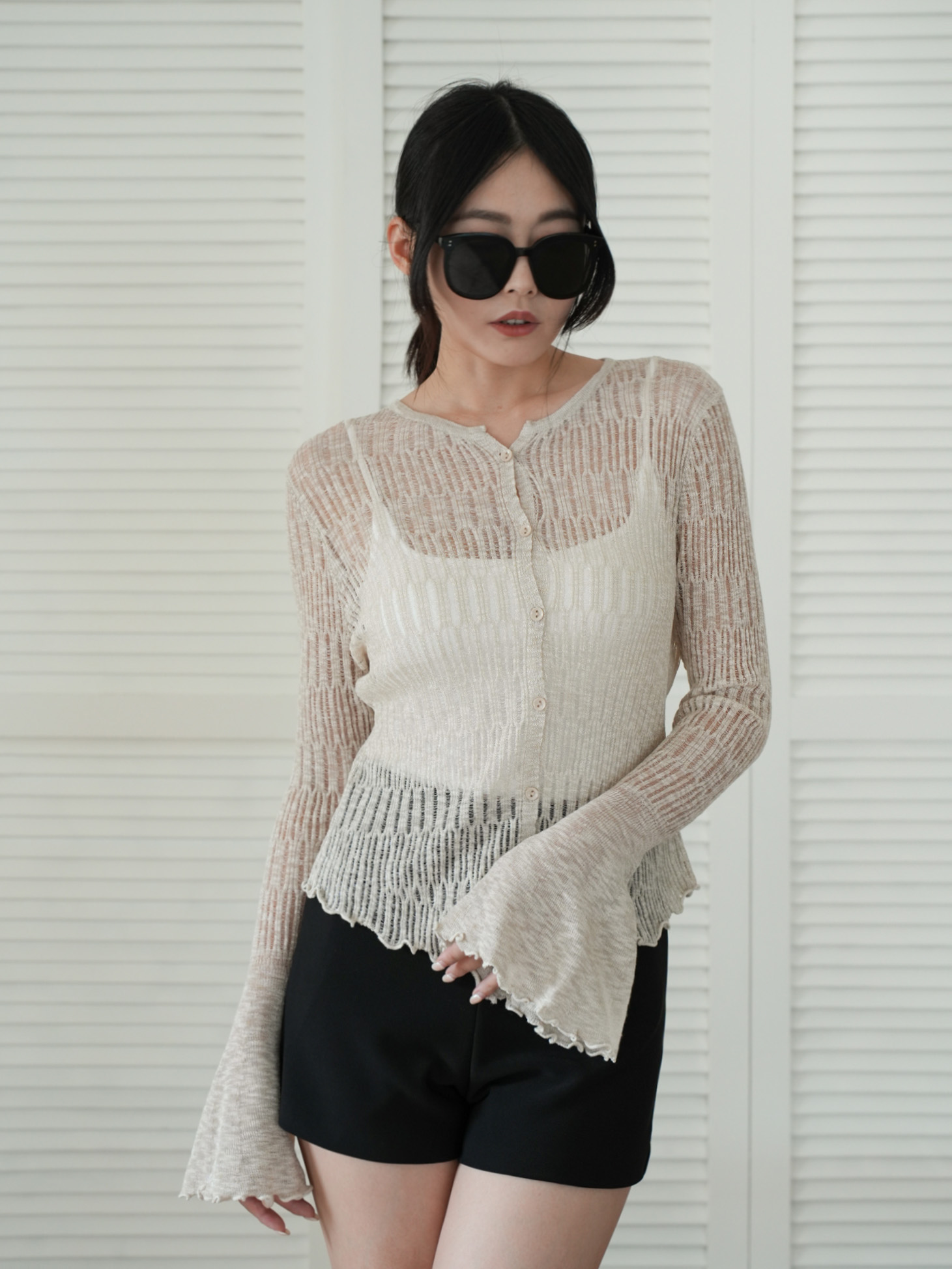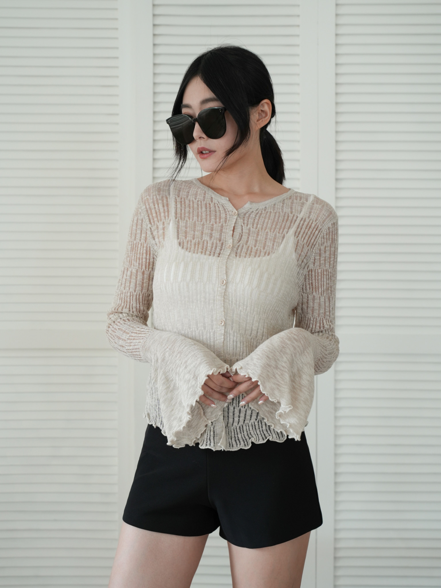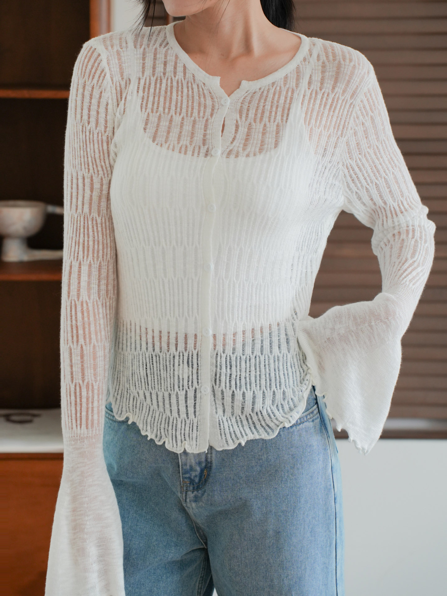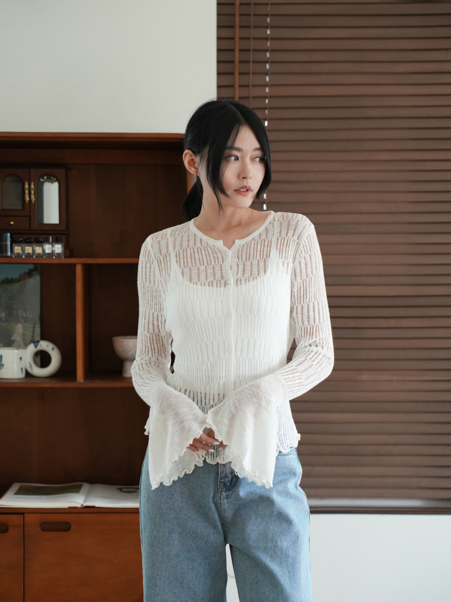 排釦 / 喇叭袖 / 簍空造型 / 微透需內搭