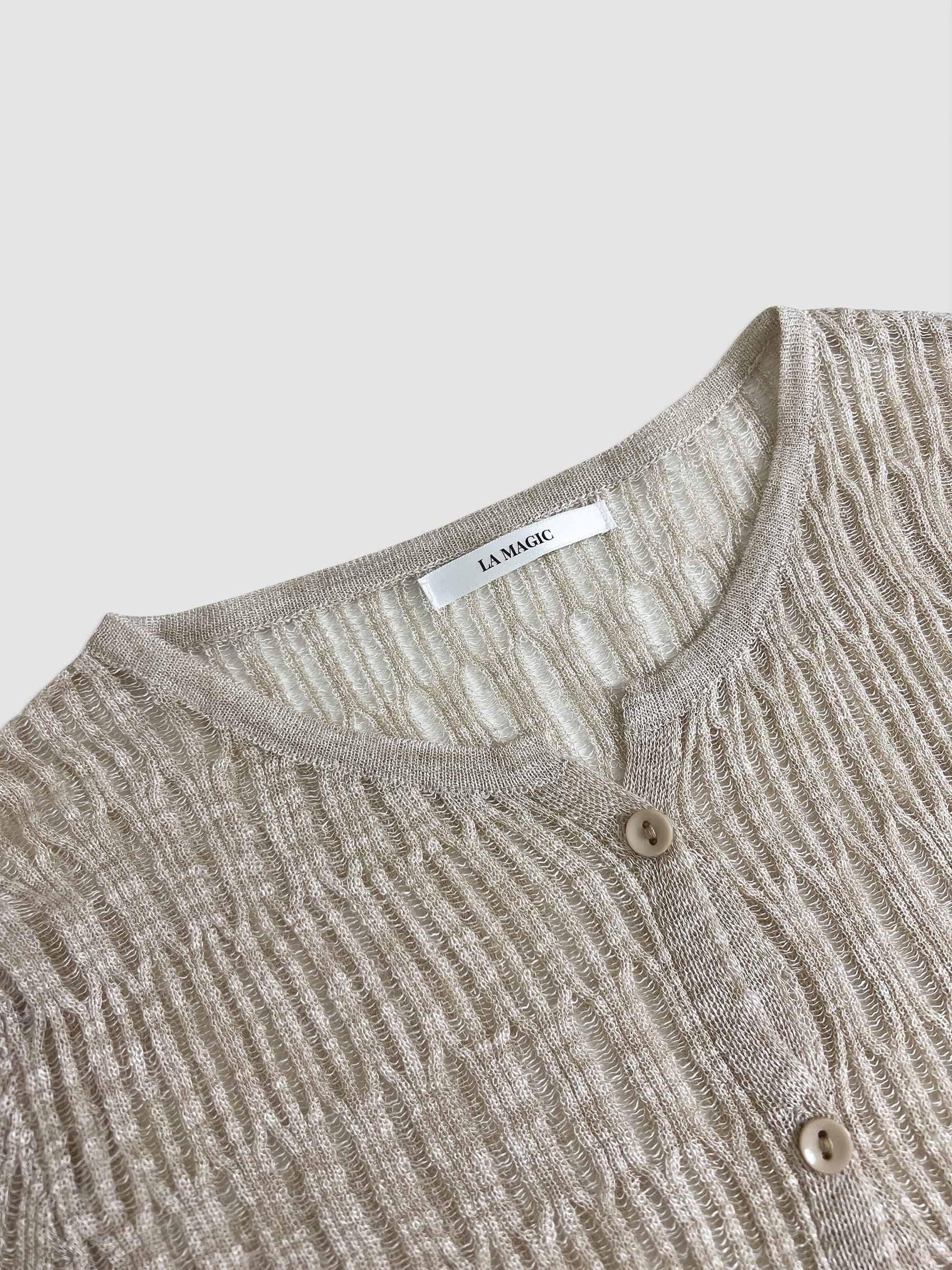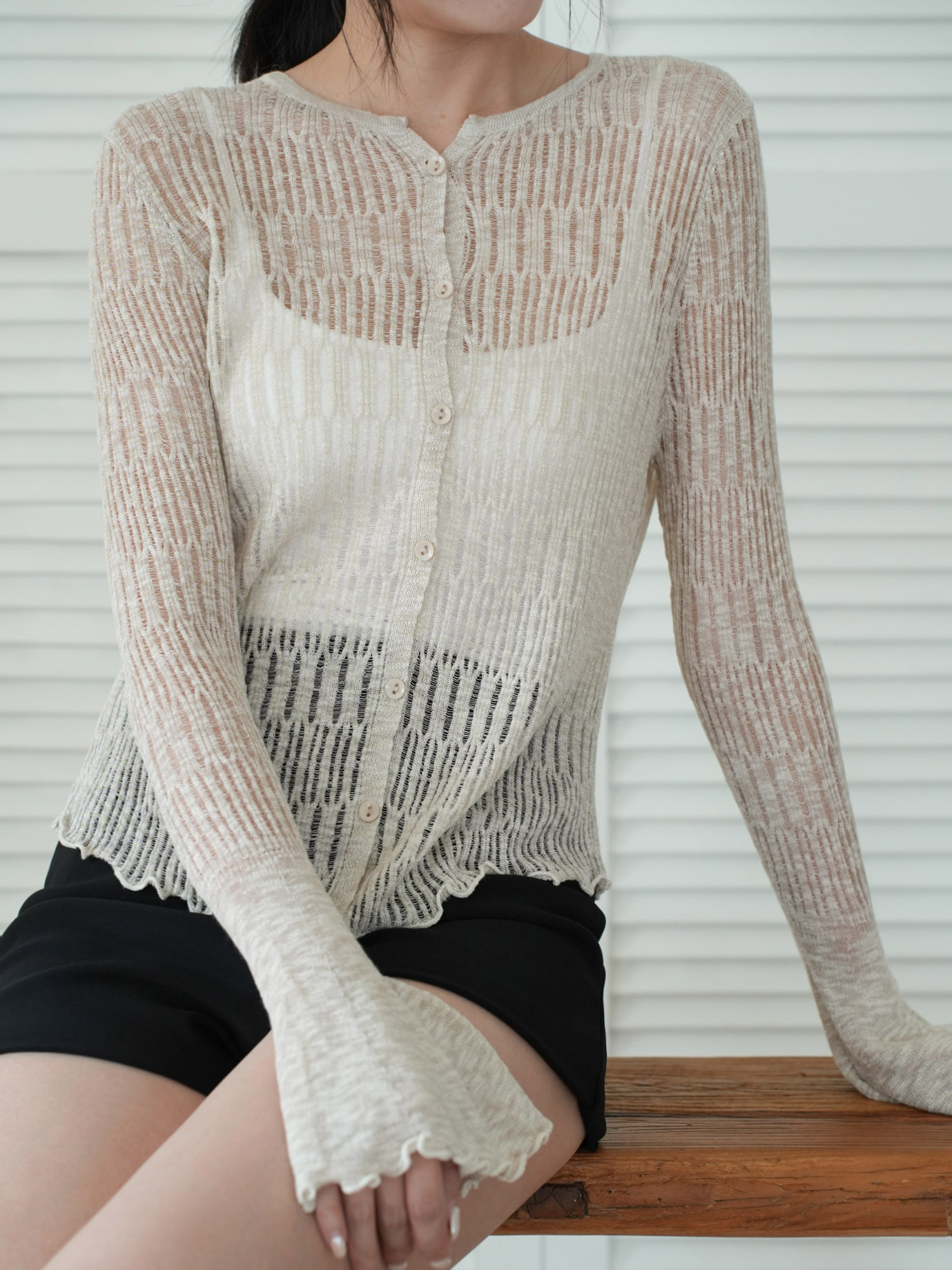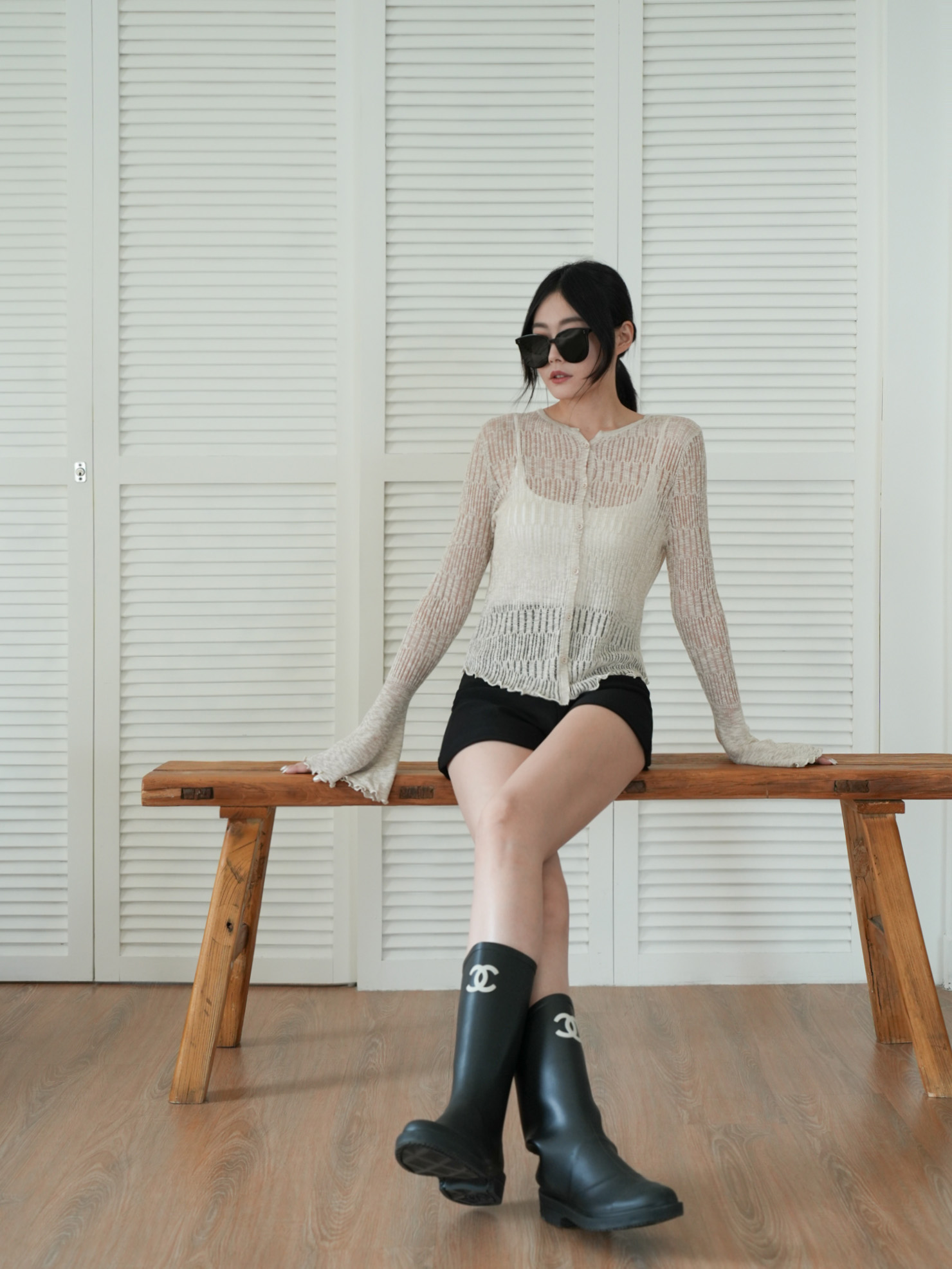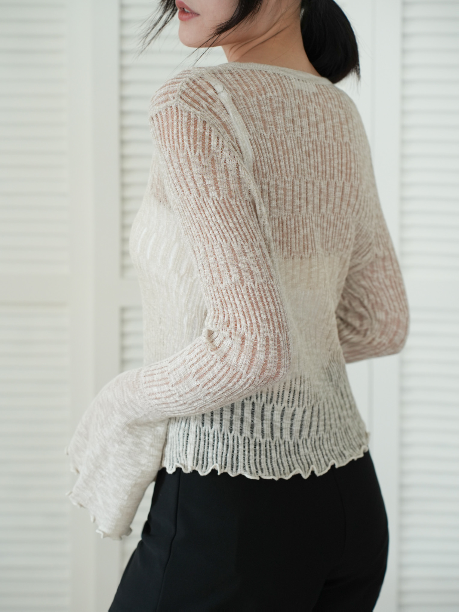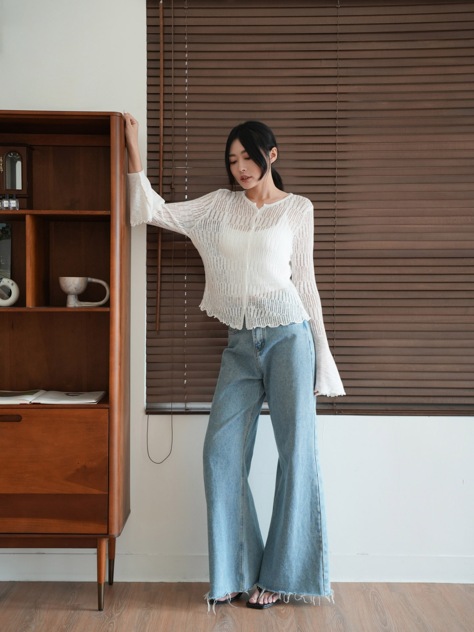 排釦 / 喇叭袖 / 簍空造型 / 微透需內搭