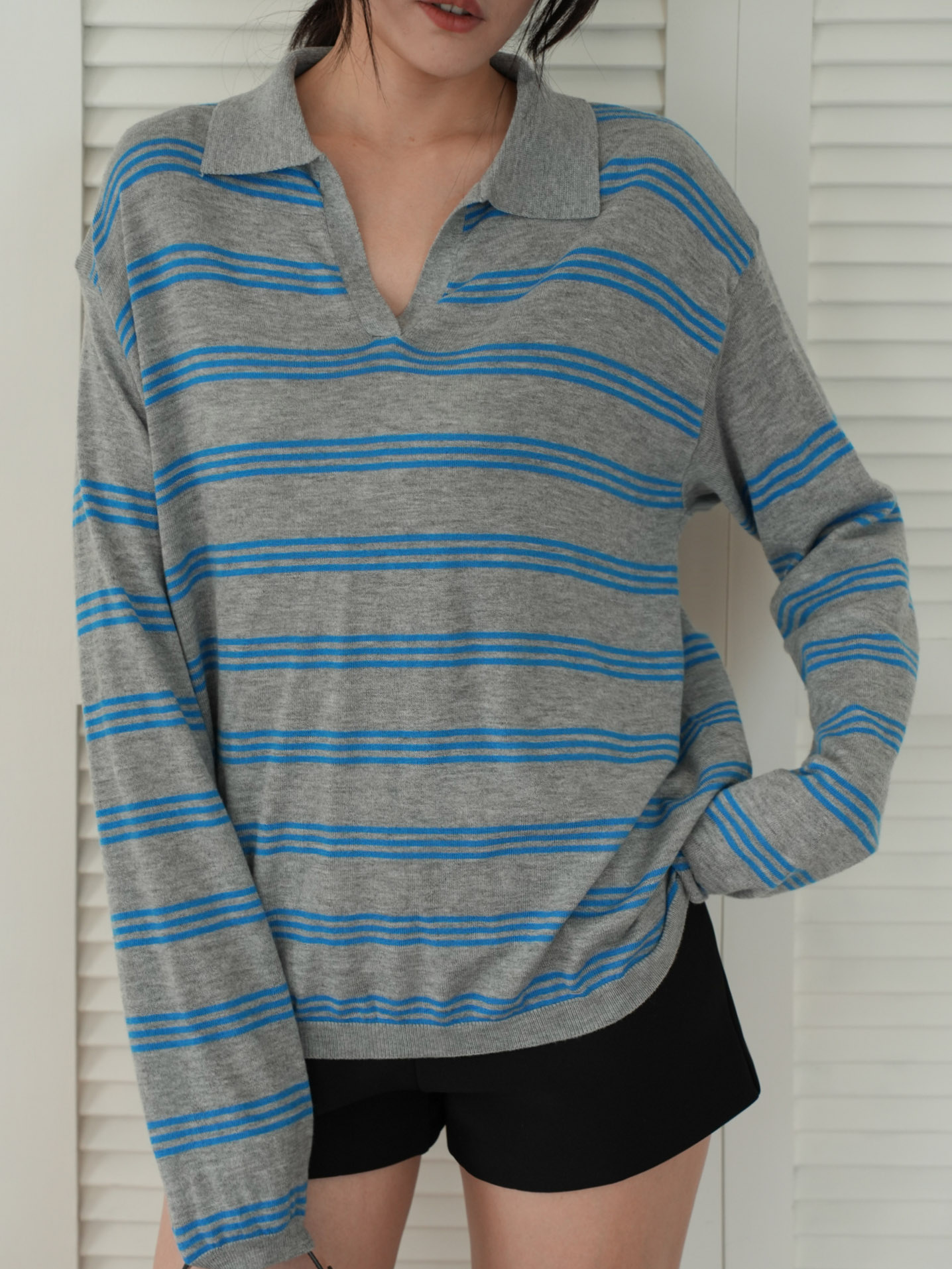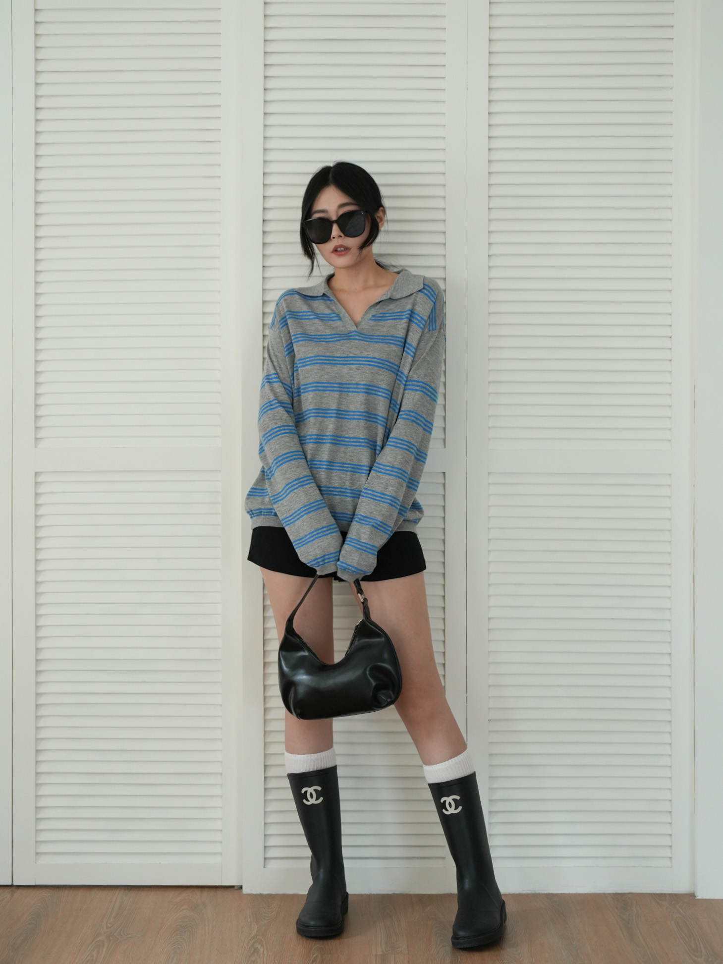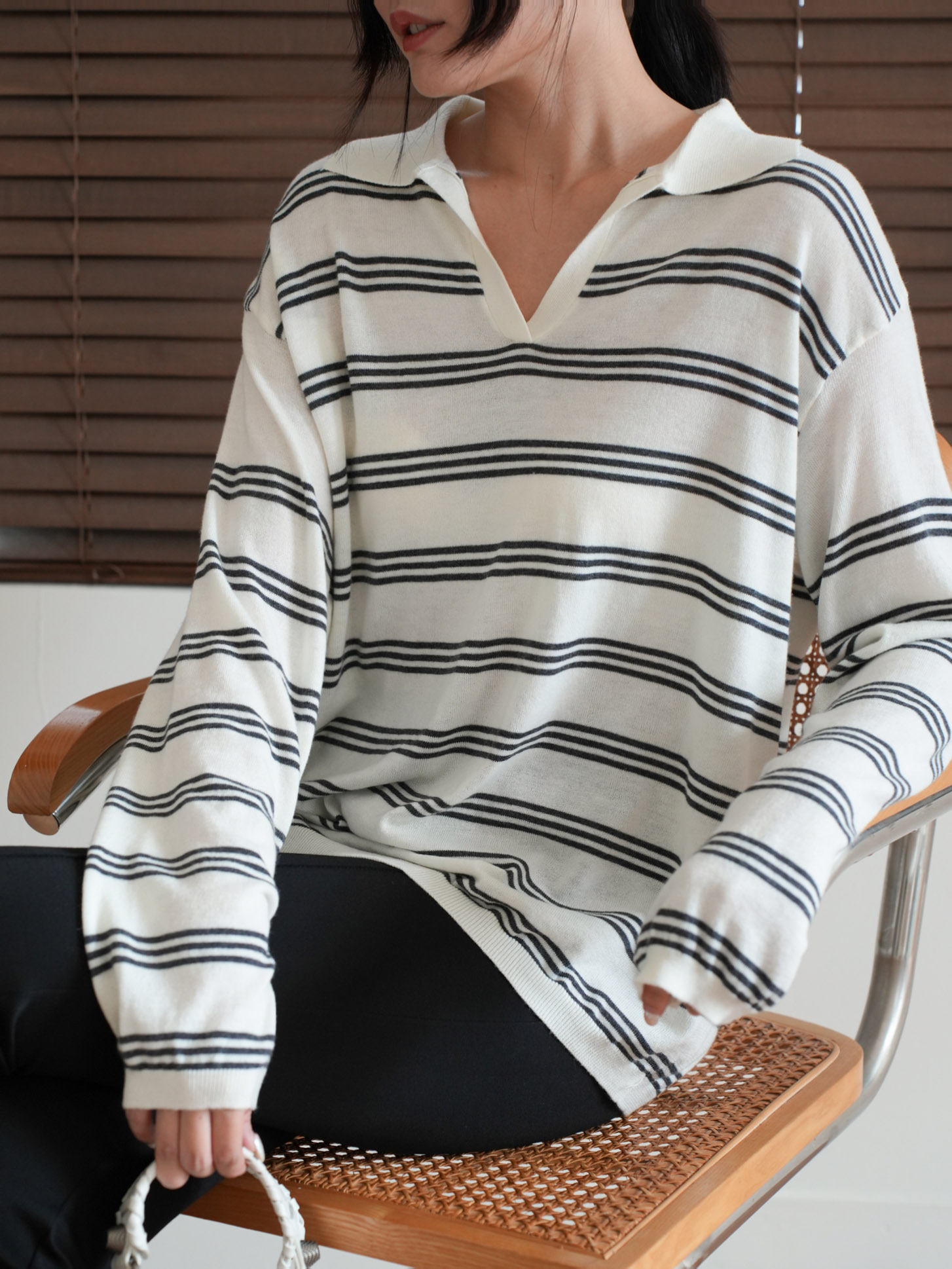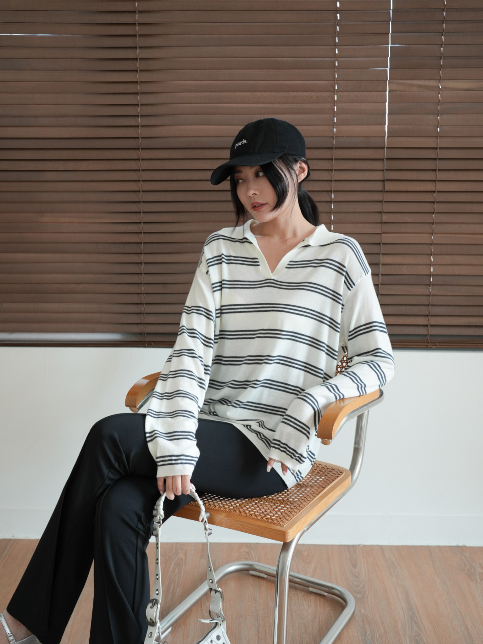POLO領 / 寬鬆版型 / 撞色條紋 / 親膚細針織