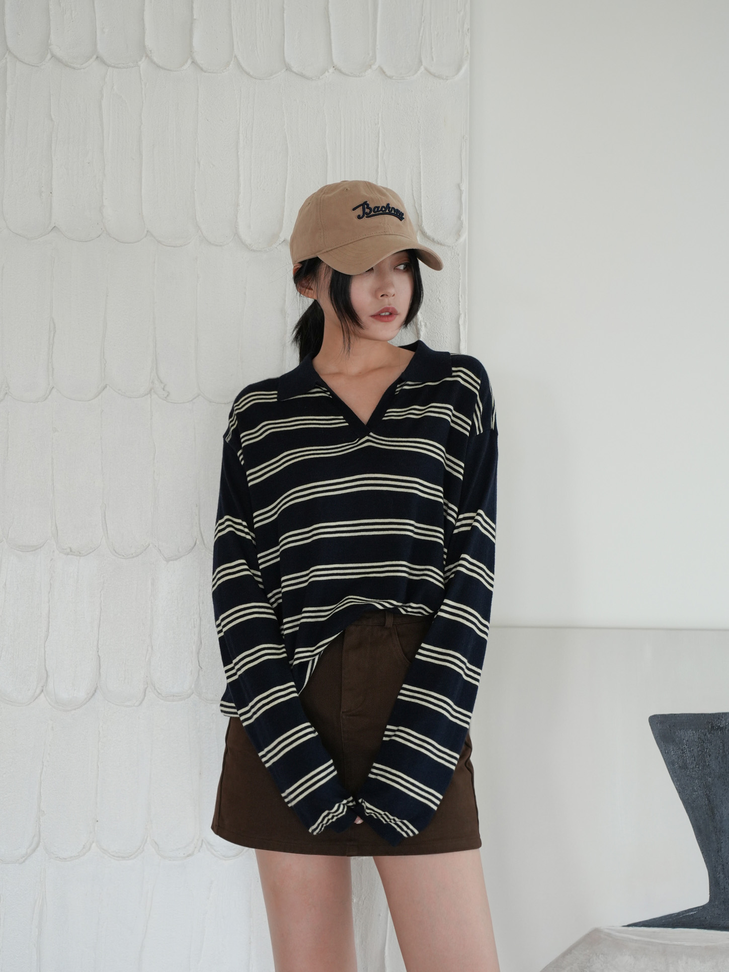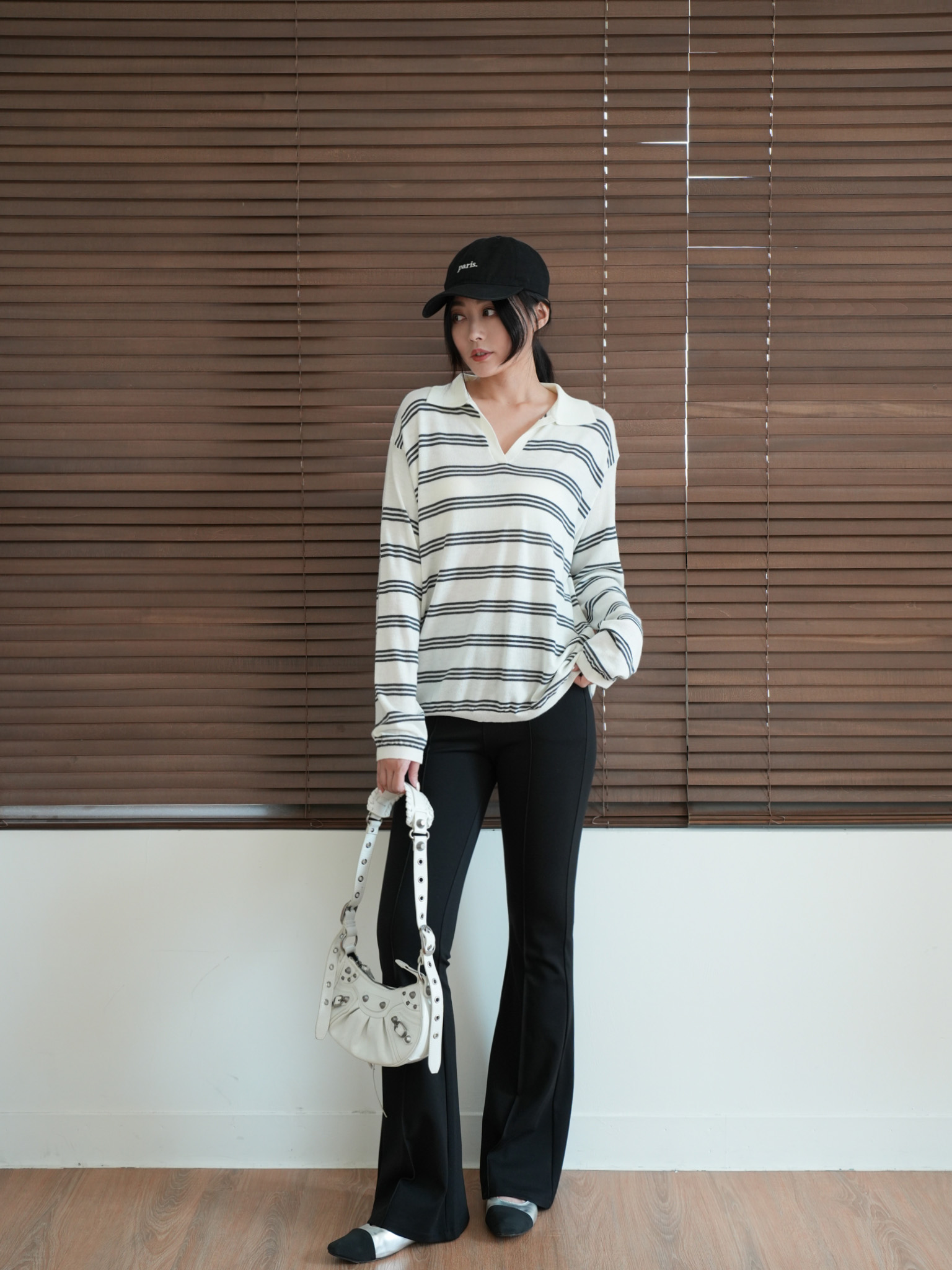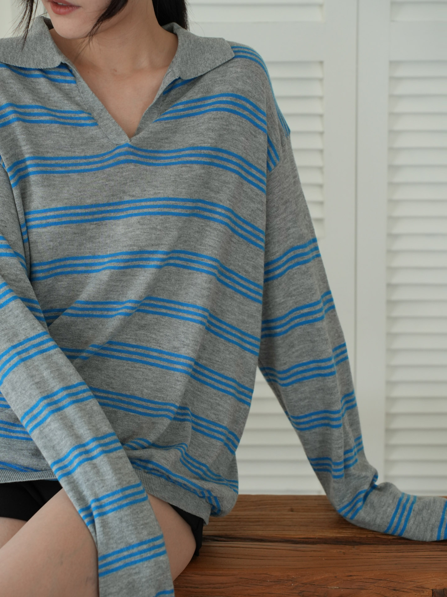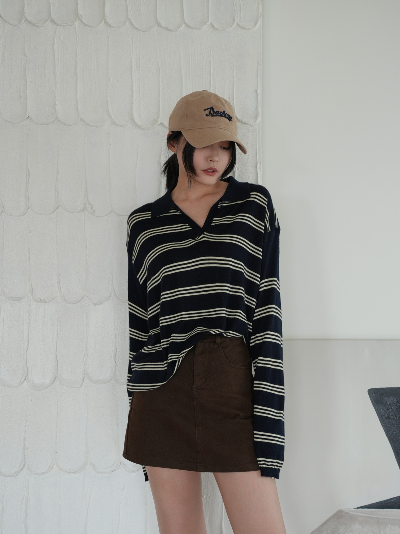 POLO領 / 寬鬆版型 / 撞色條紋 / 親膚細針織