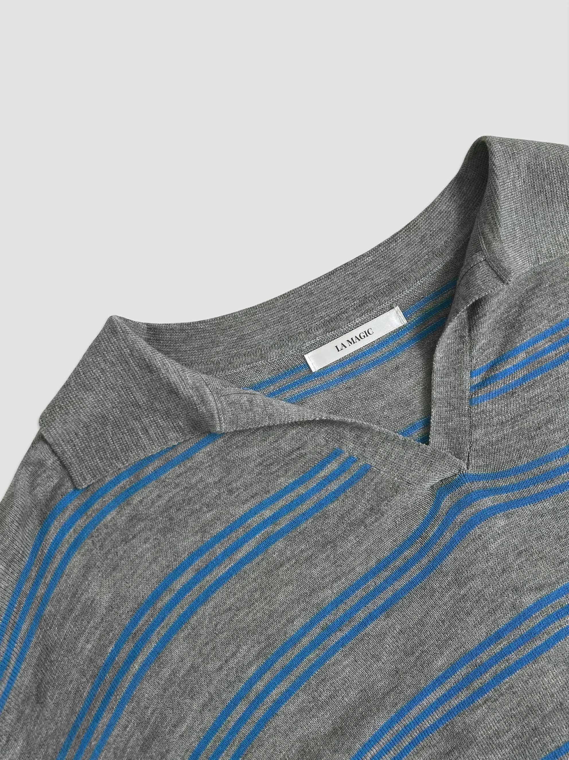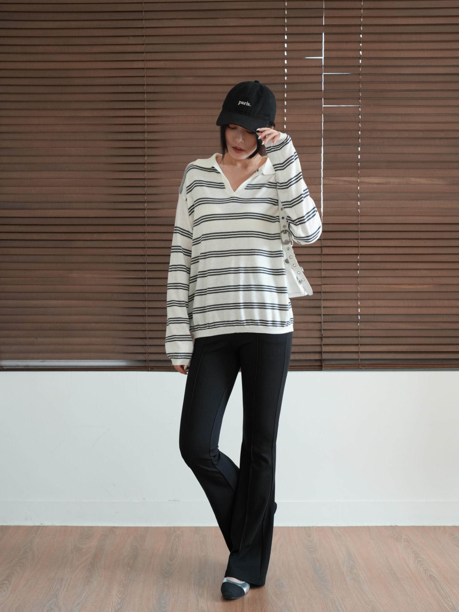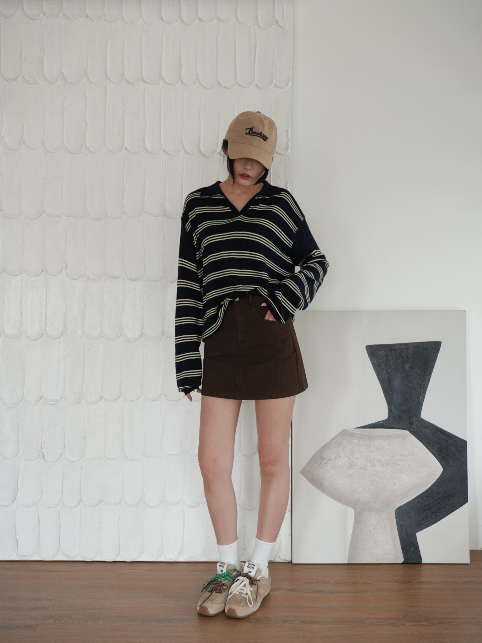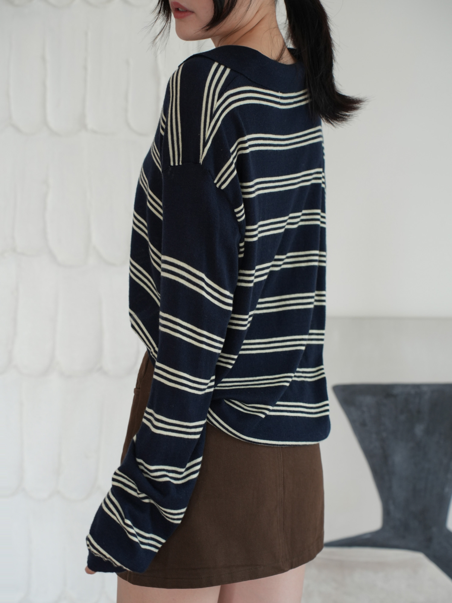 POLO領 / 寬鬆版型 / 撞色條紋 / 親膚細針織