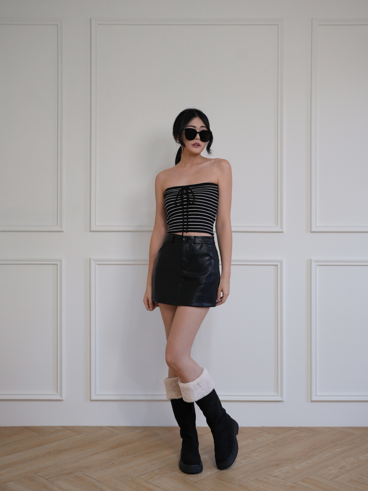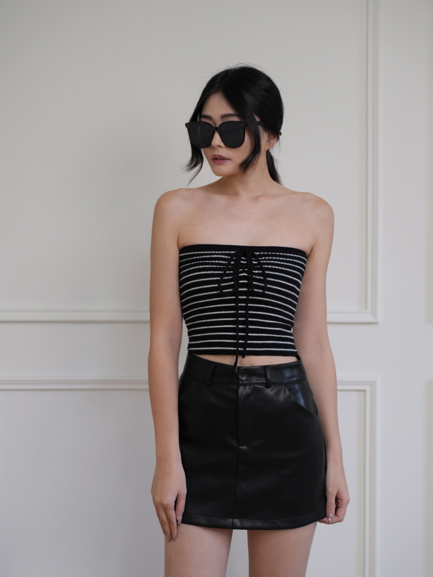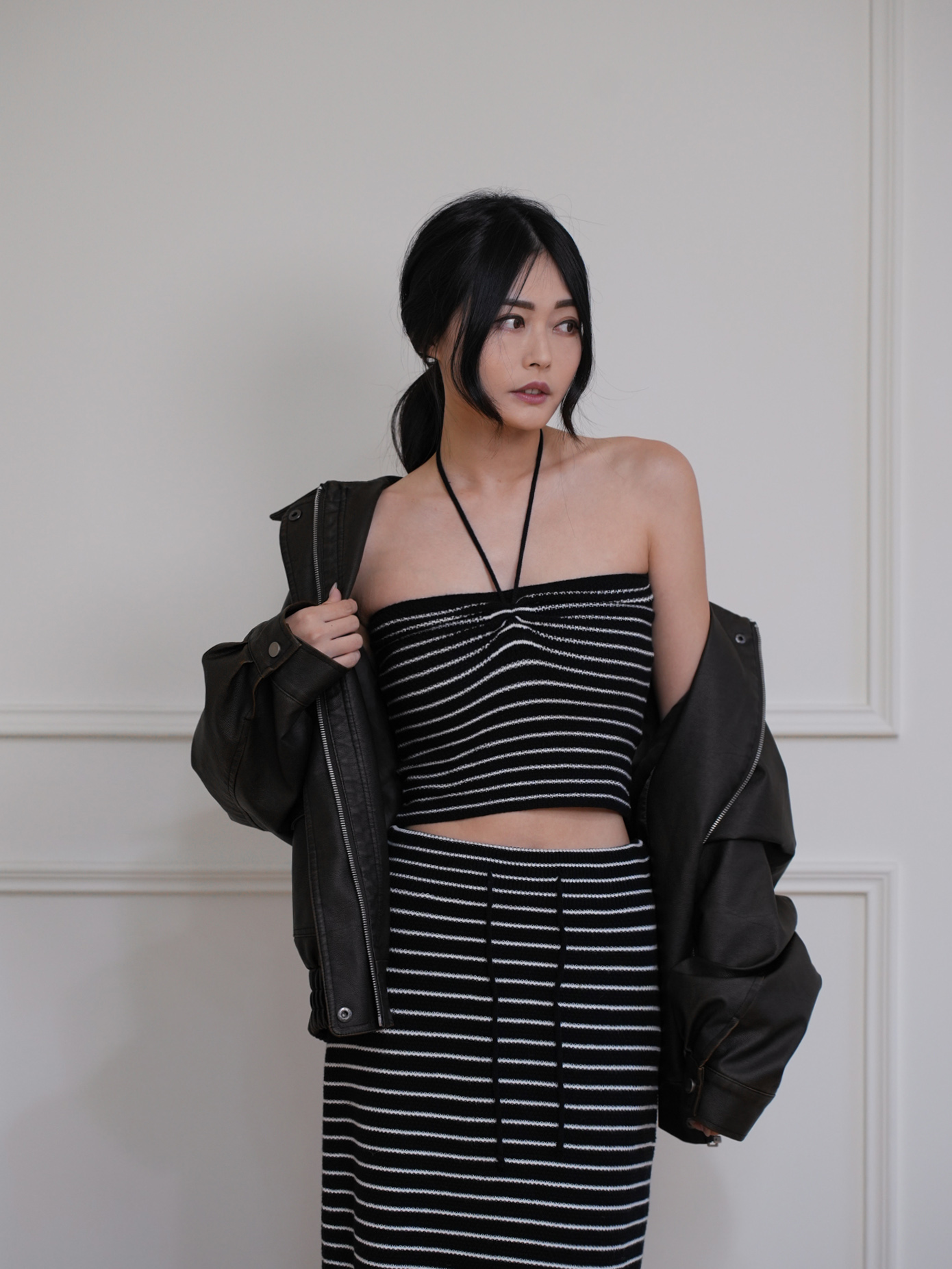 平口 / 胸前綁帶及繞脖兩穿 / 雙色條紋針織 / 整件有彈性