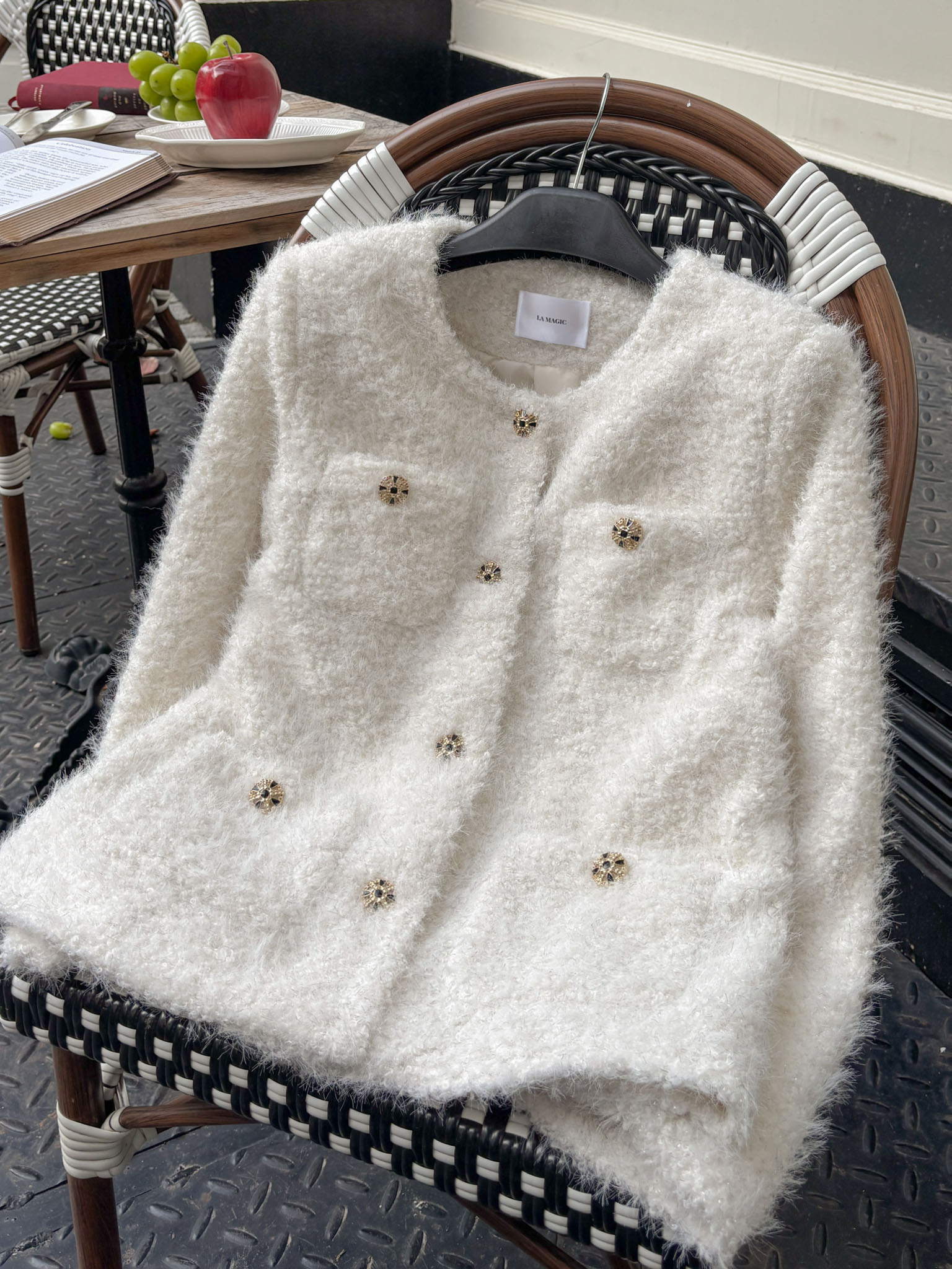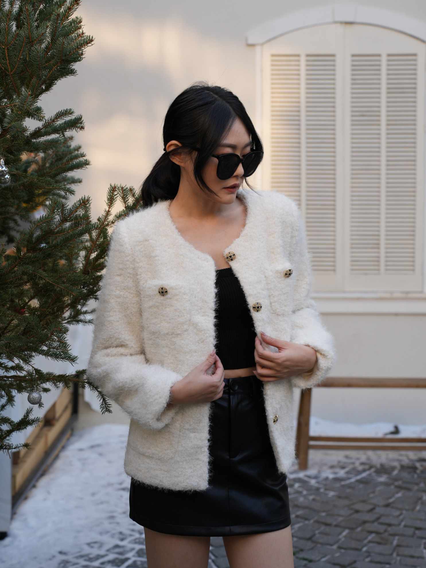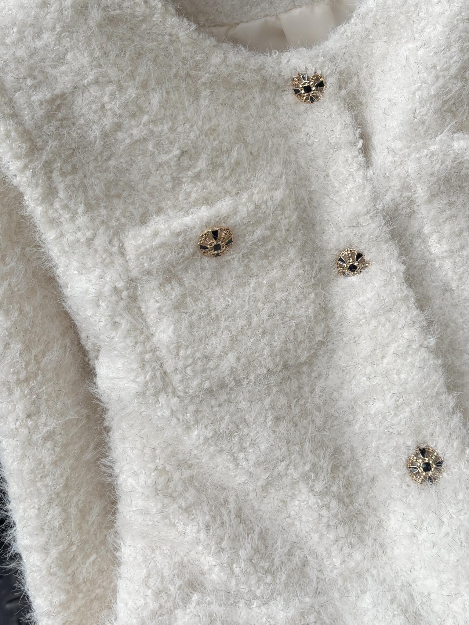 圓領 / 排釦 / 有口袋 / 毛毛織紋面料
