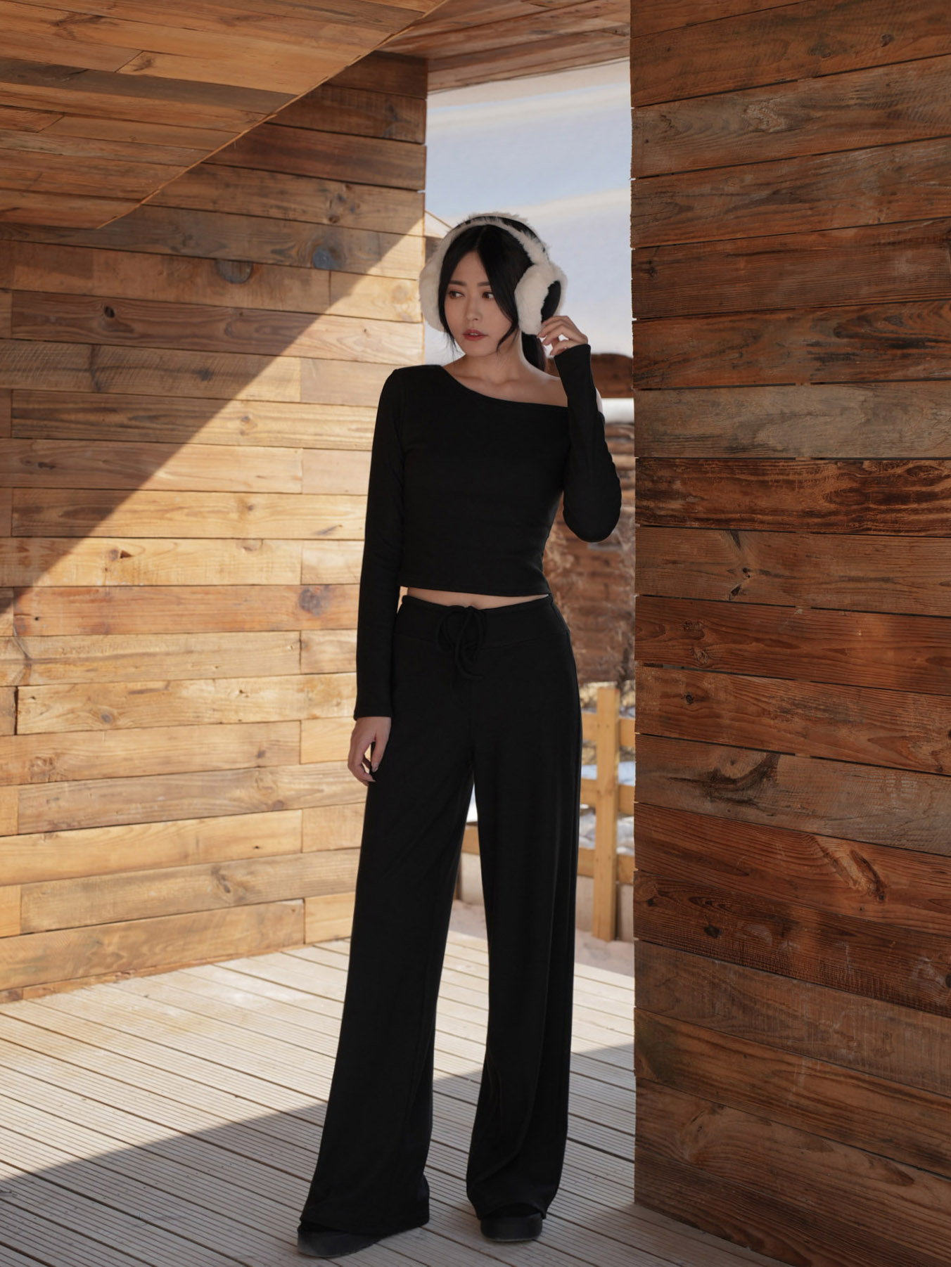 寬腰頭 / 抽繩設計 / 寬鬆褲型