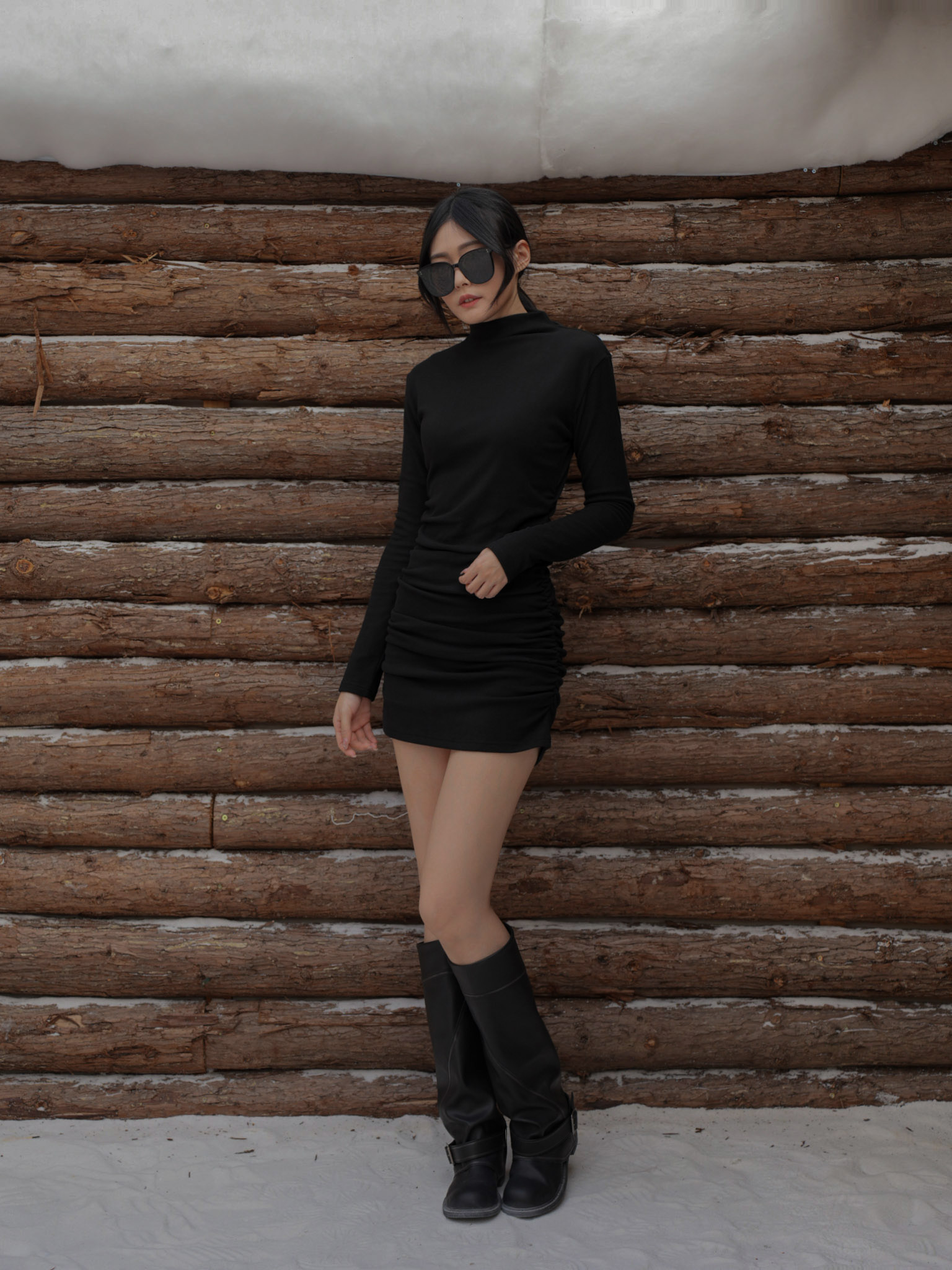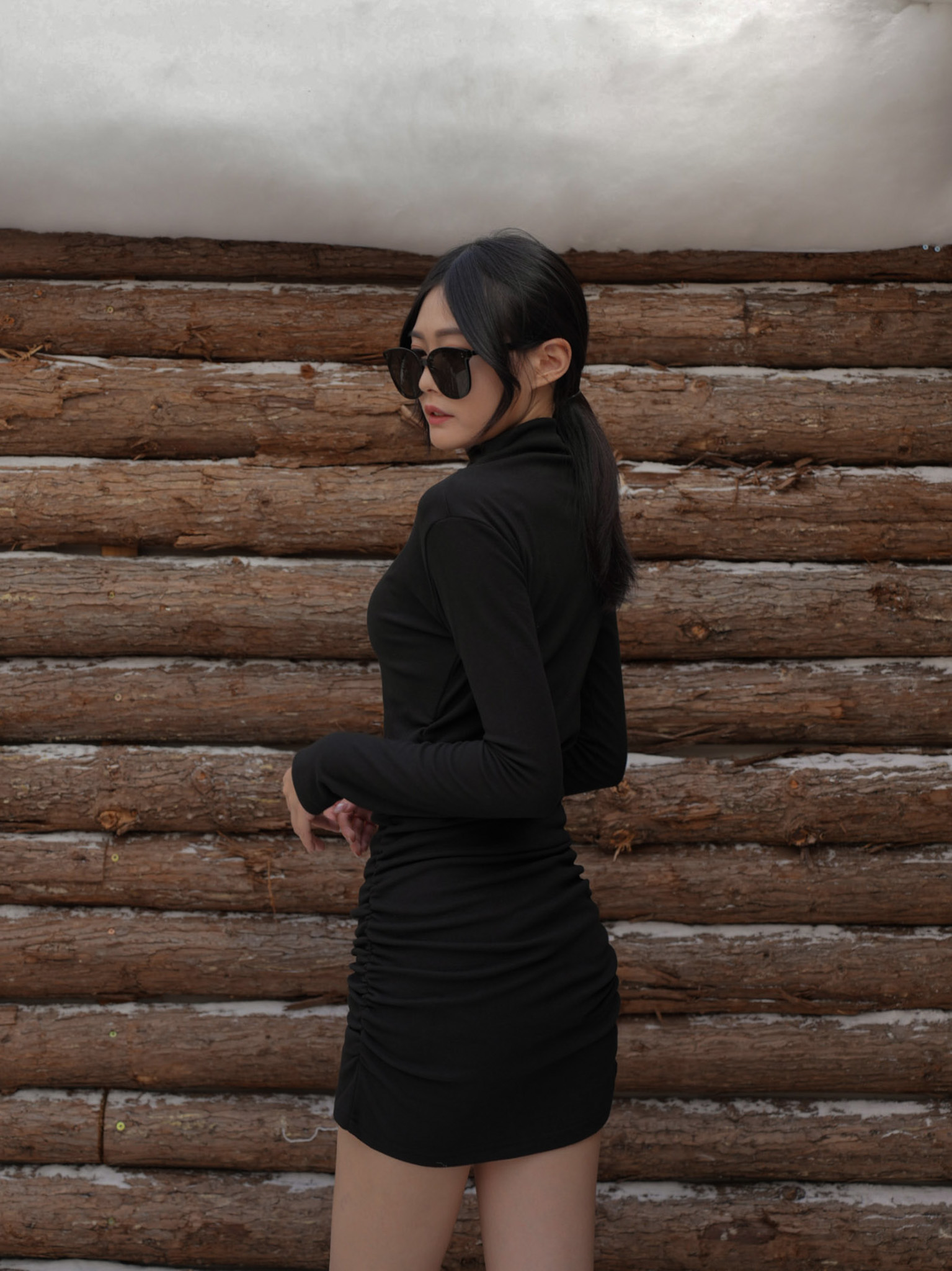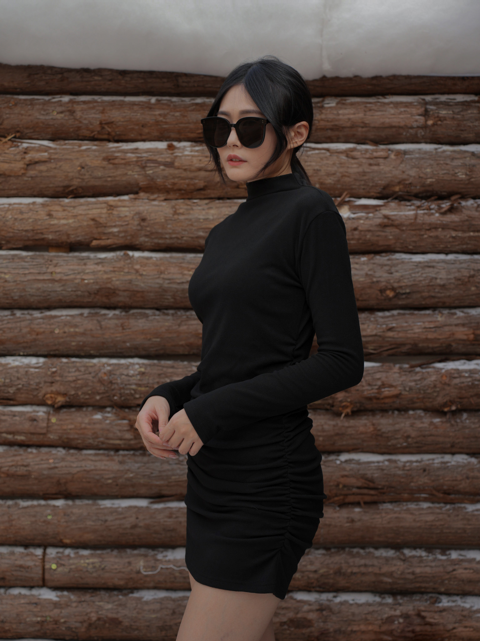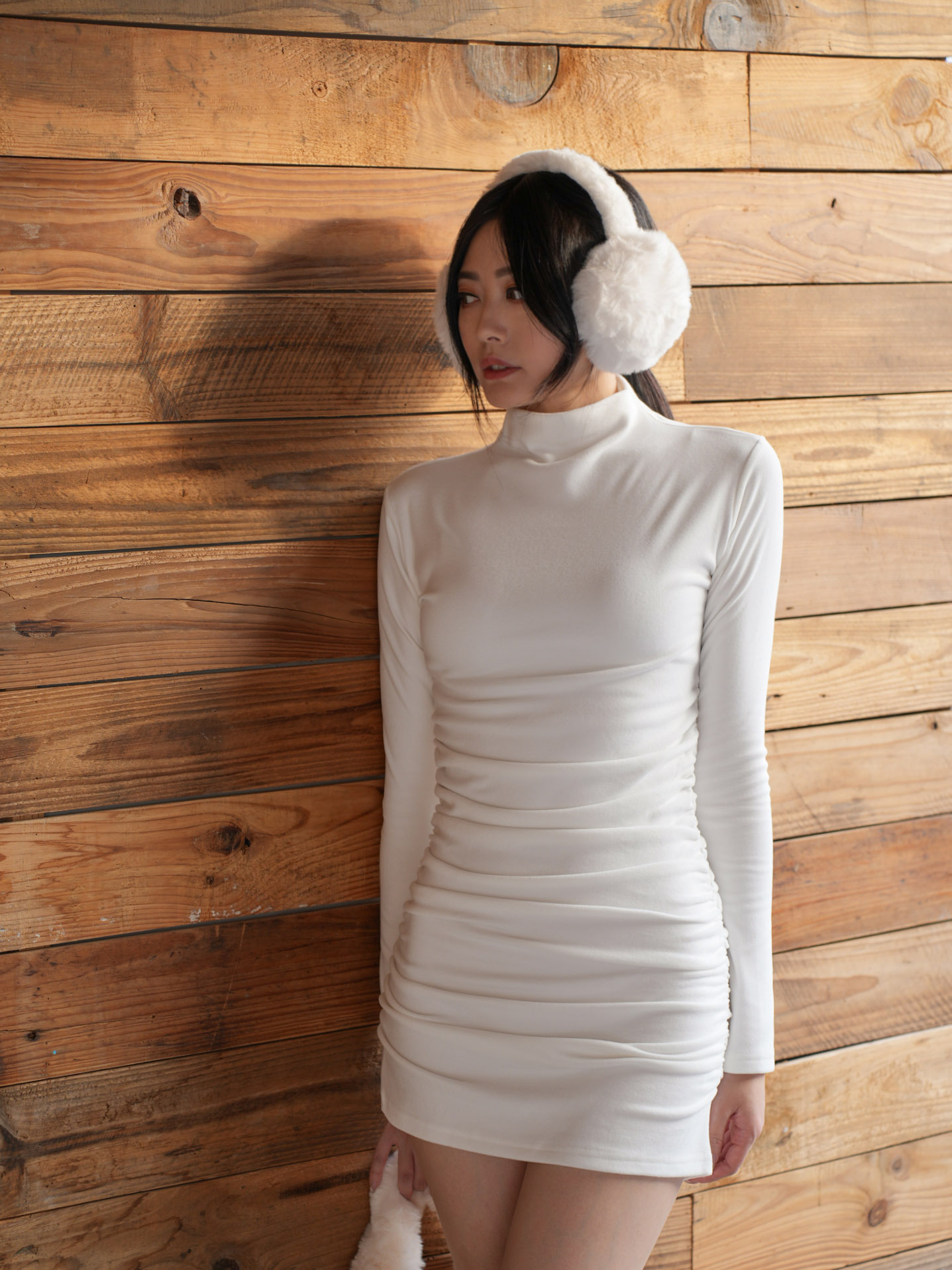 微高領剪裁 / 側抓皺設計 / 修身版型