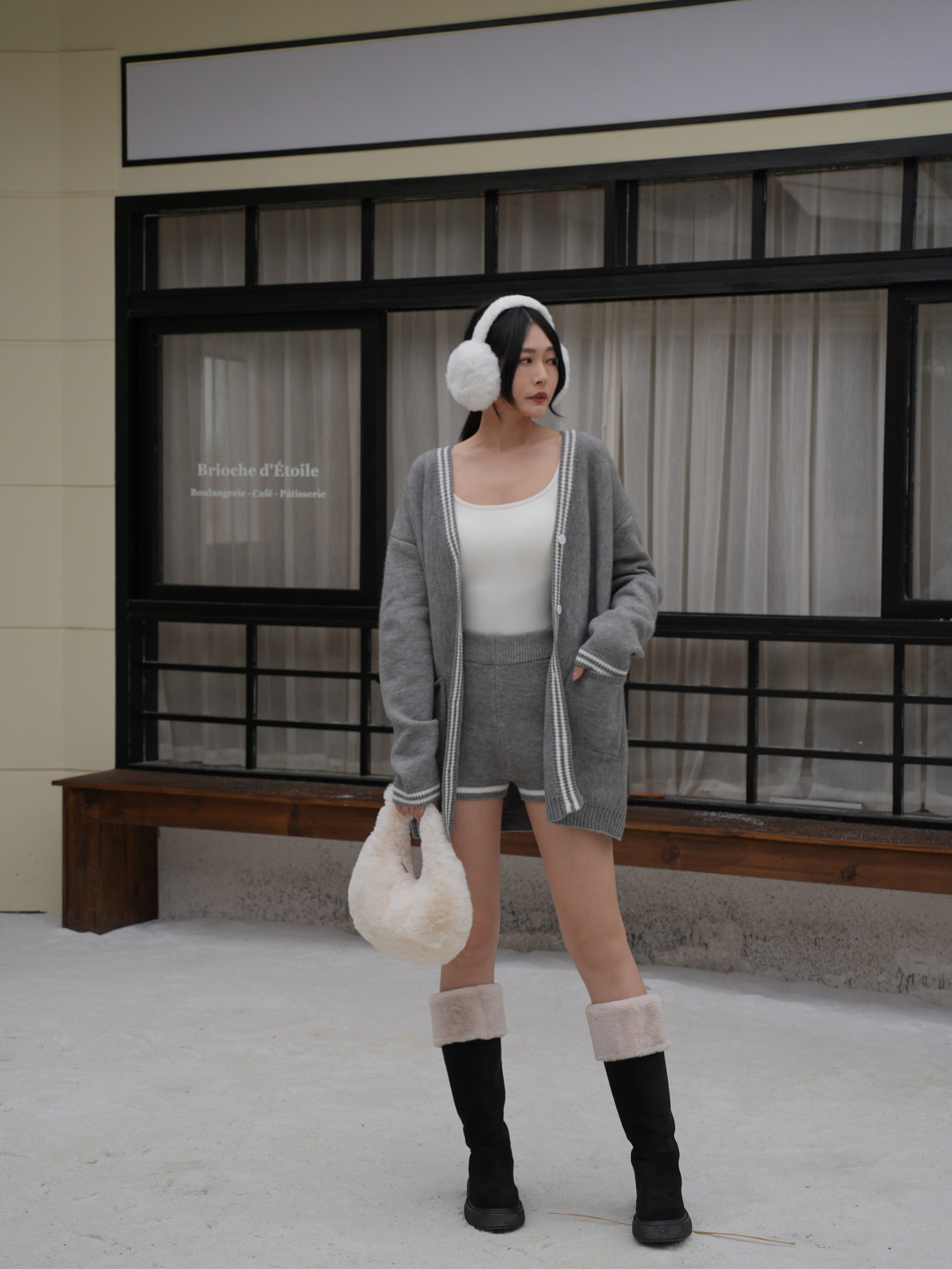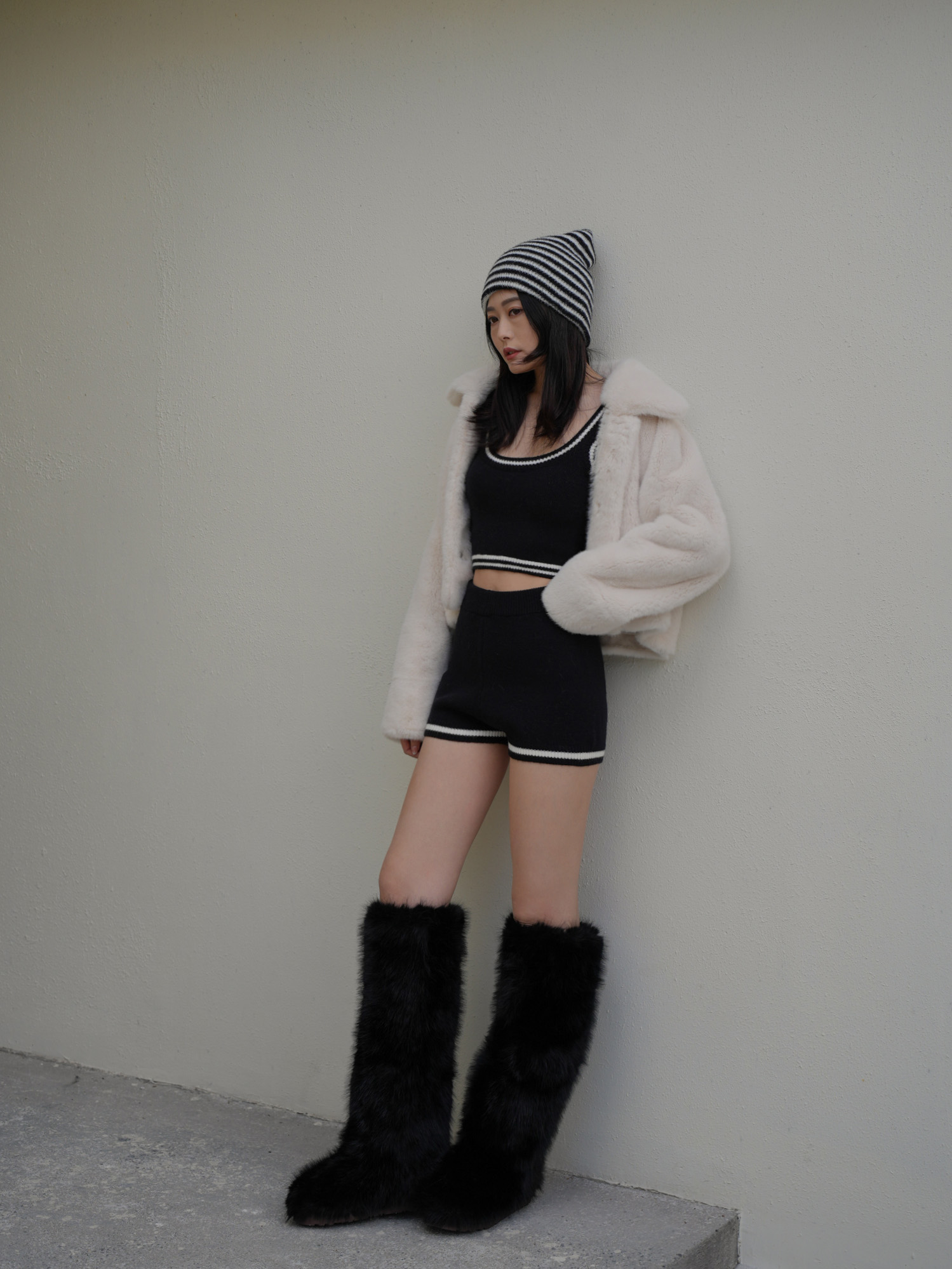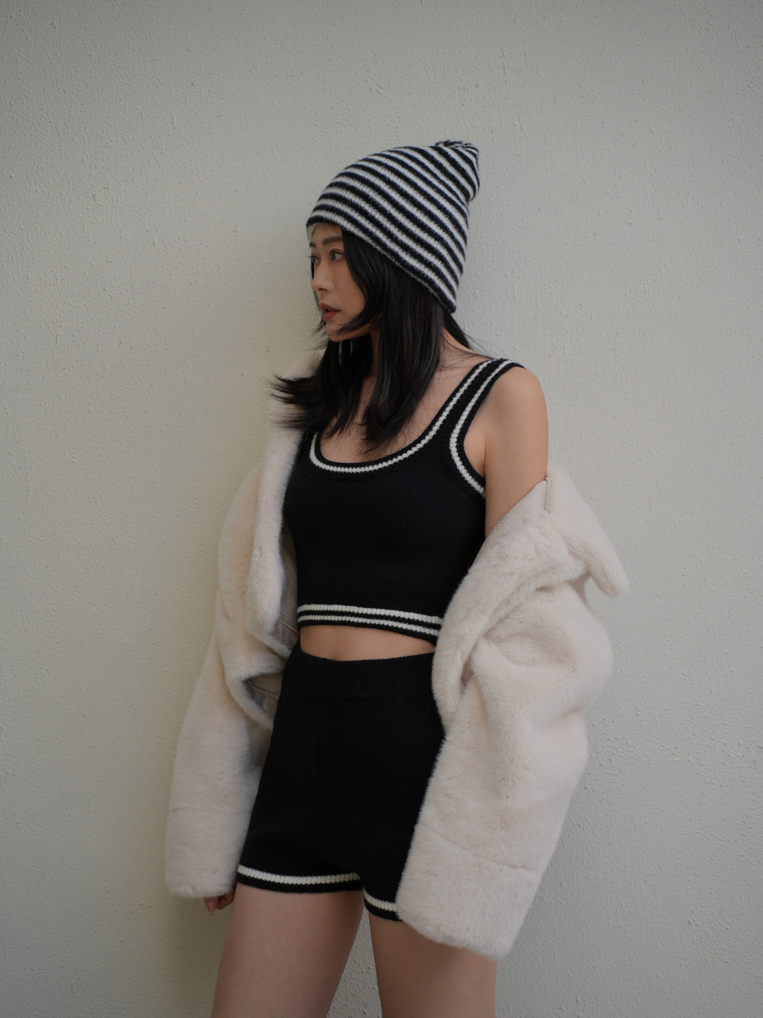 撞色北極絨針織短褲 0201142