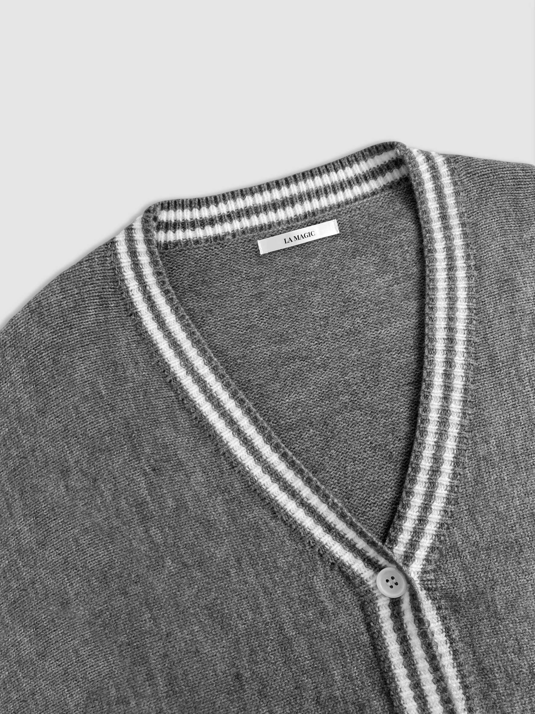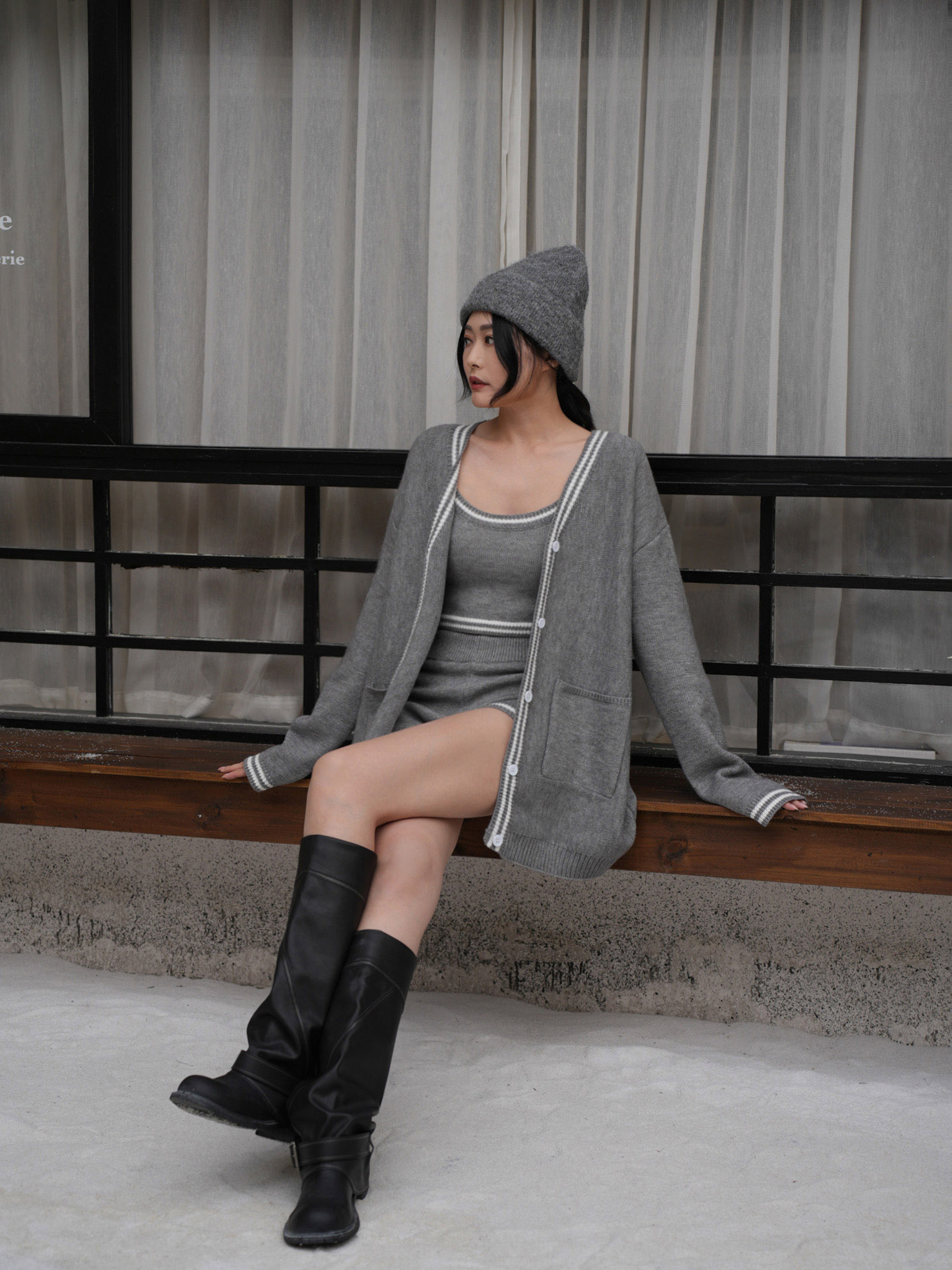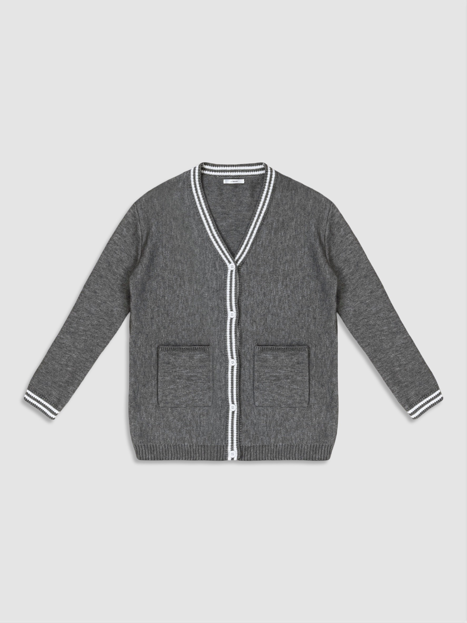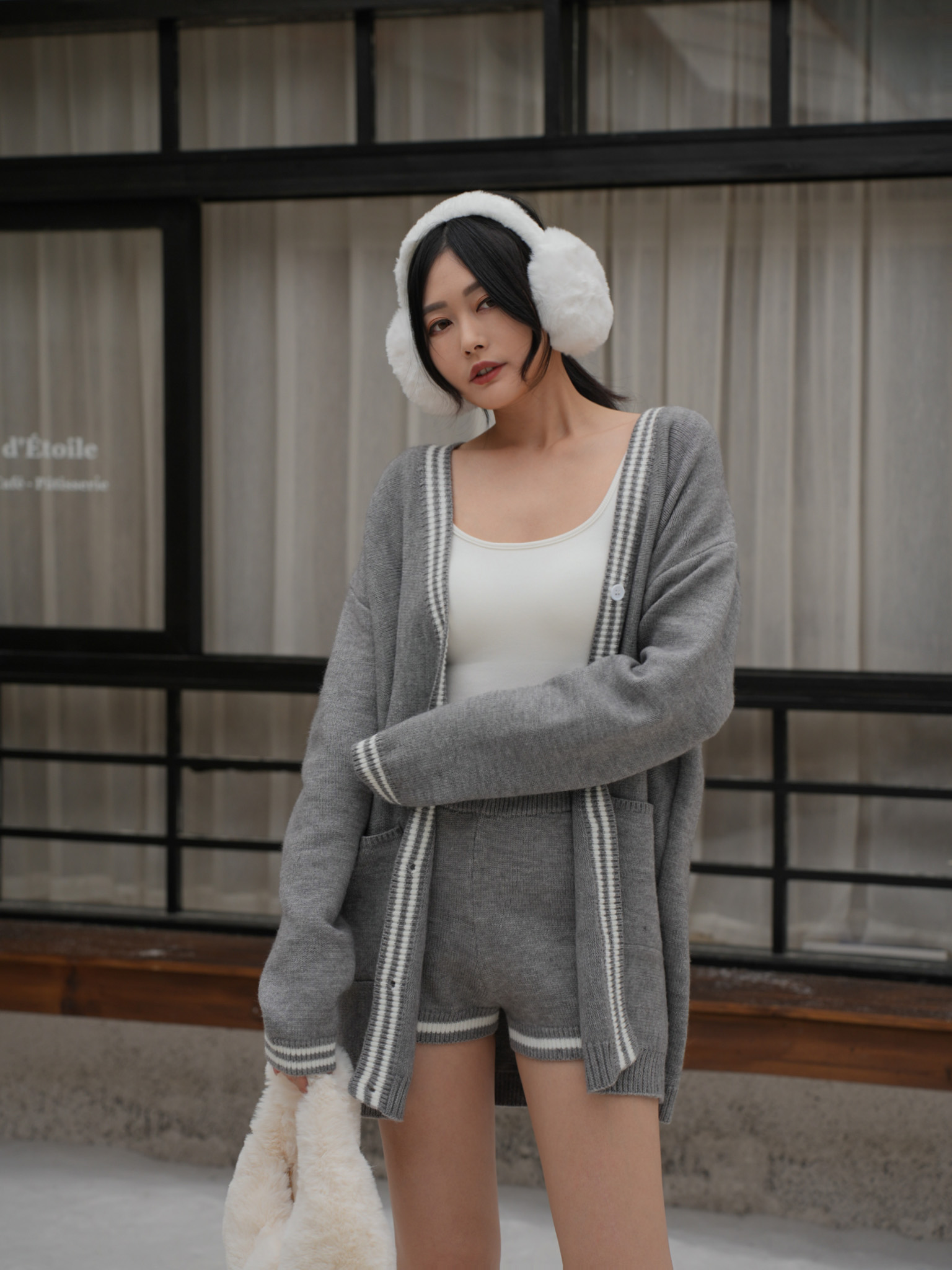 V領剪裁 / 寬鬆落肩版型 / 排釦設計 / 兩側有口袋