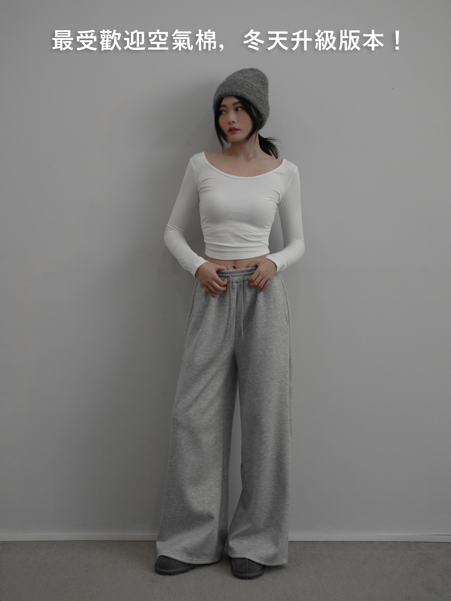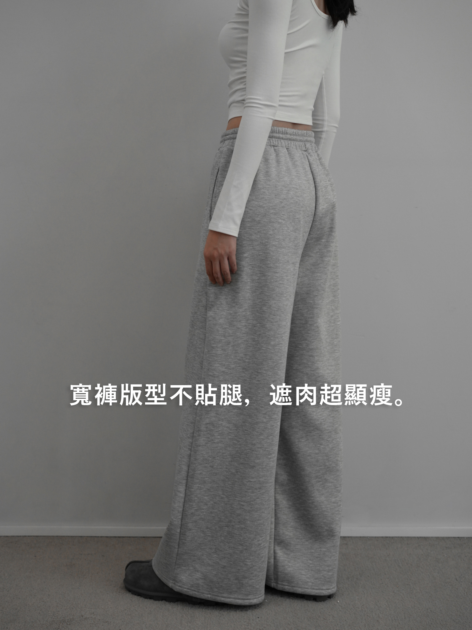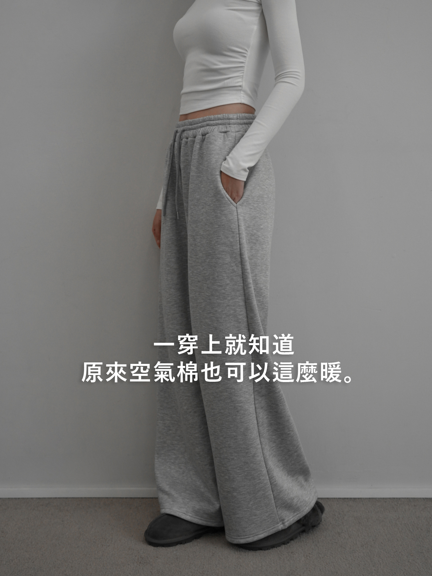 腰圍整圈鬆緊 / 抽繩設計 / 寬褲版型 / 內裡保暖刷絨