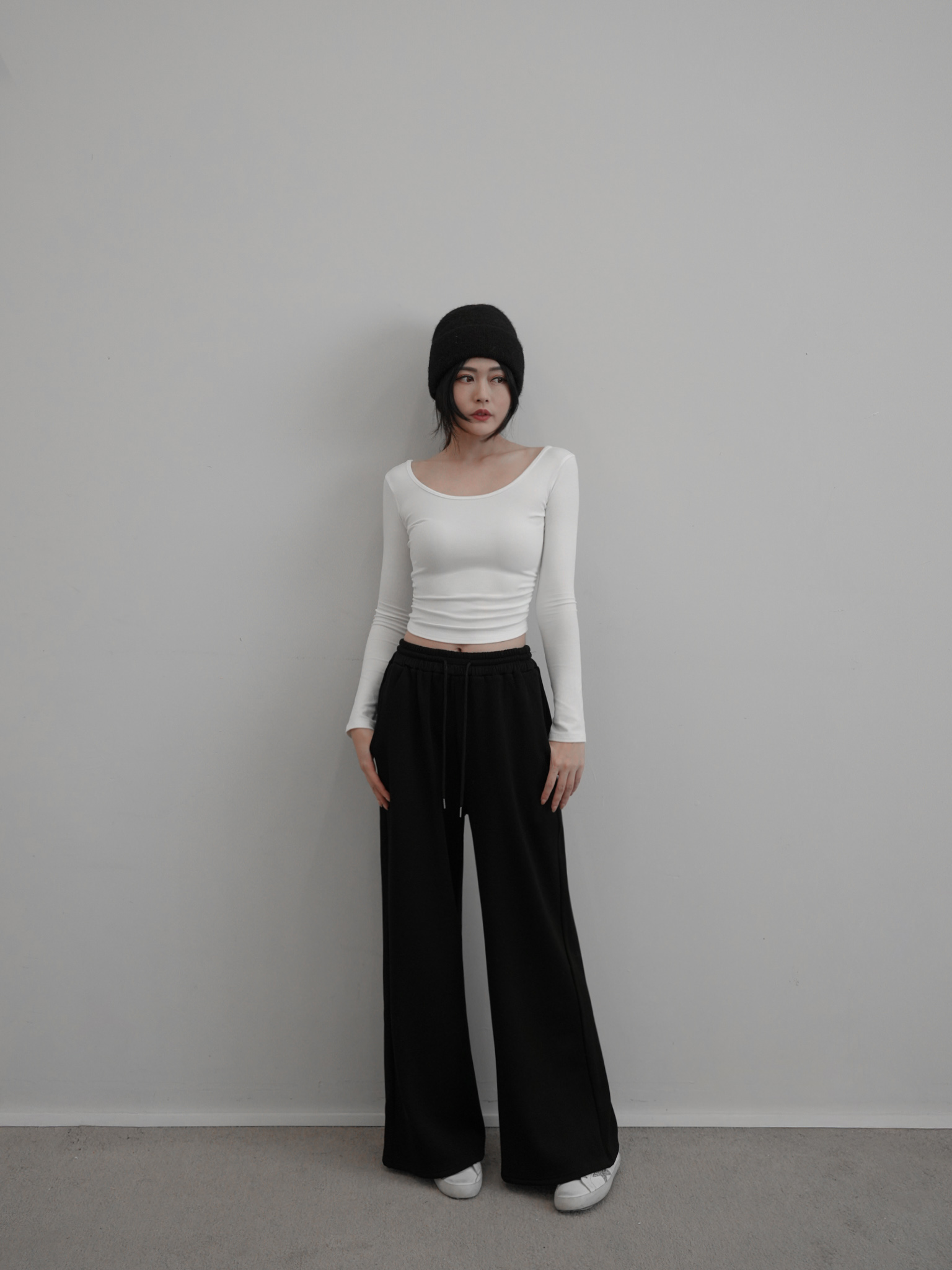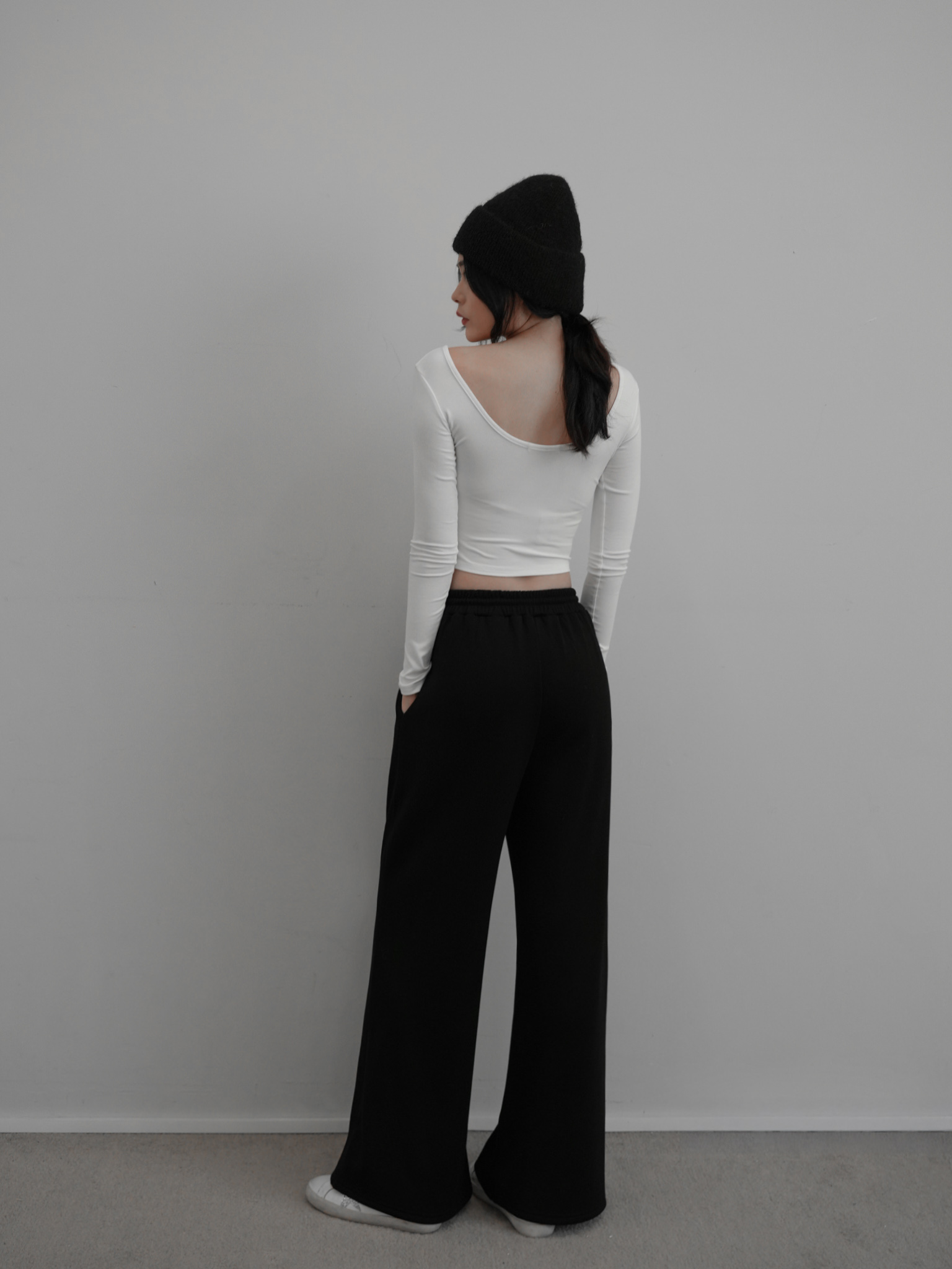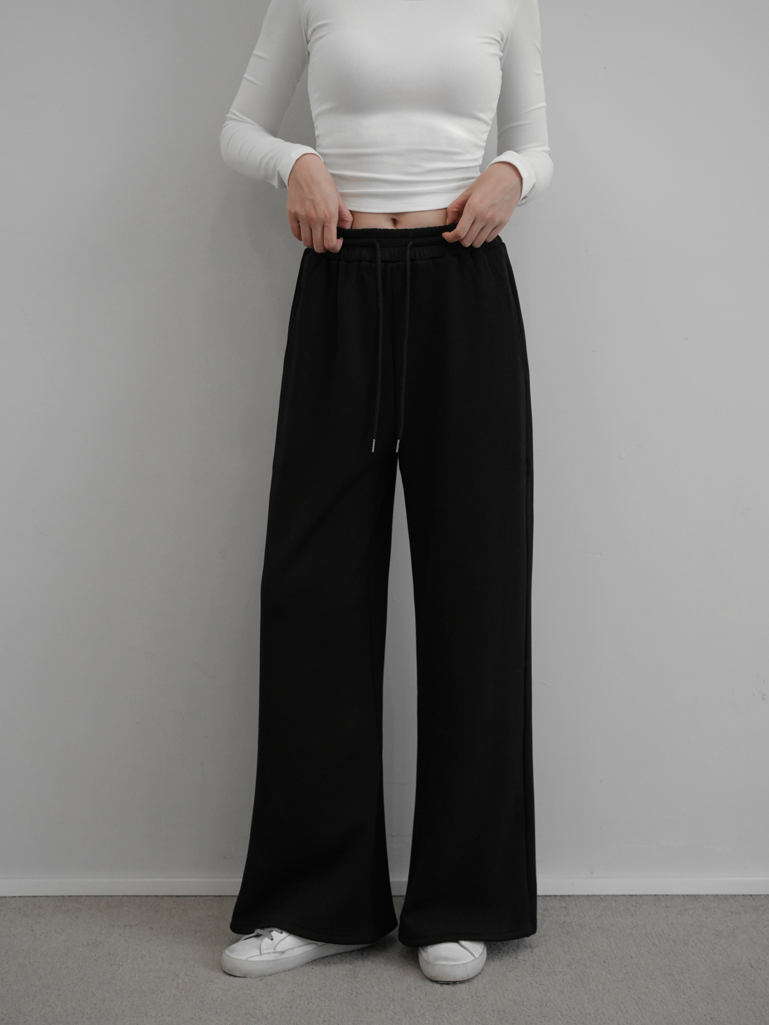 腰圍整圈鬆緊 / 抽繩設計 / 寬褲版型 / 內裡保暖刷絨