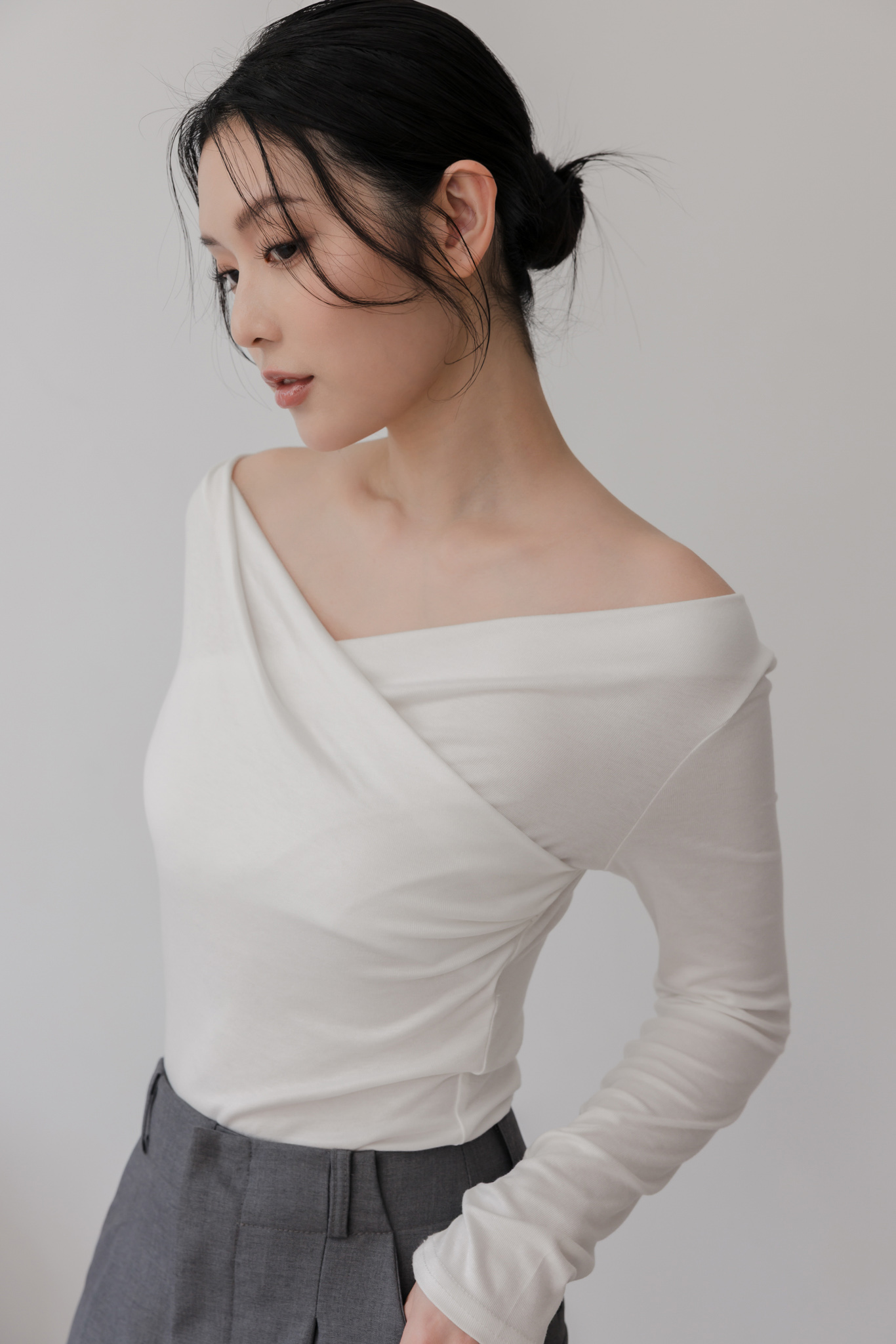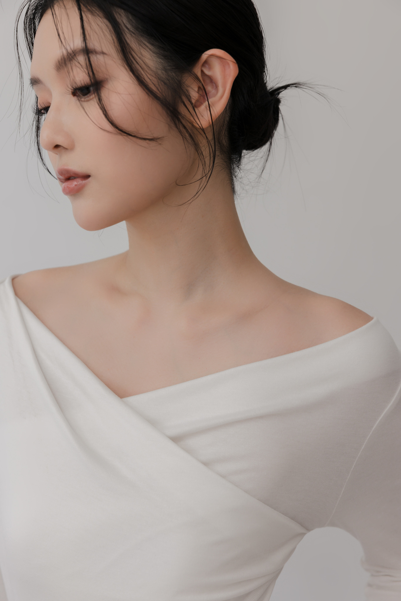 垂墜設計露出鎖骨,優雅又有氛圍感