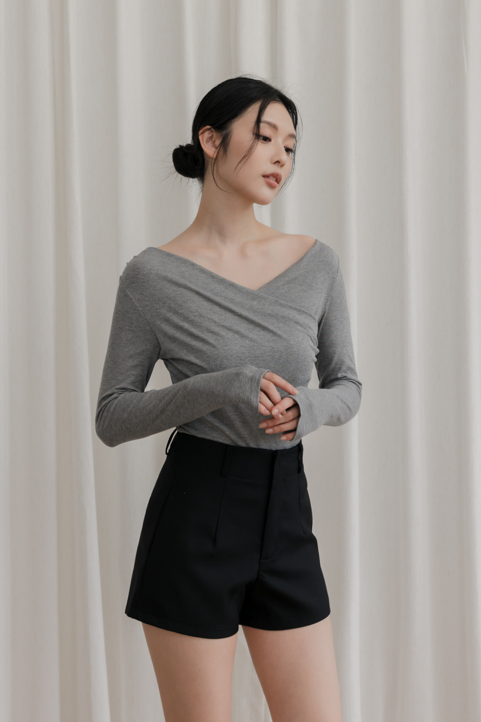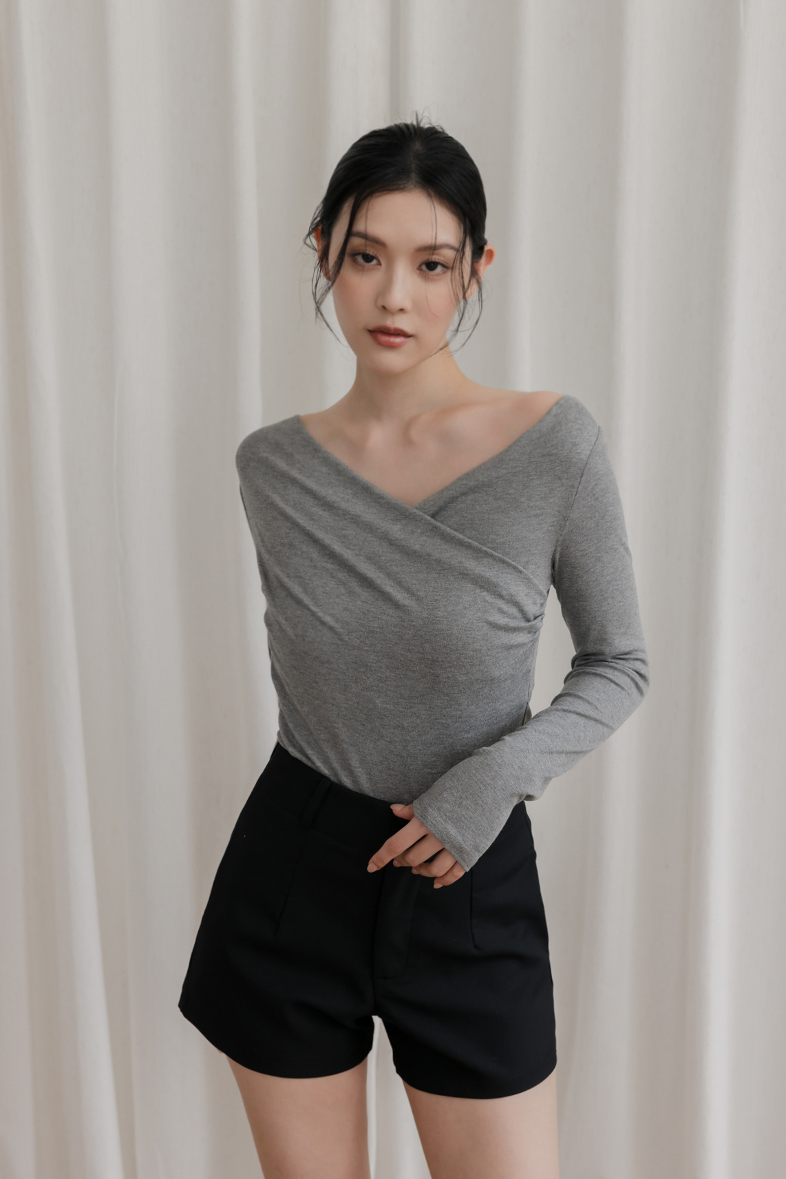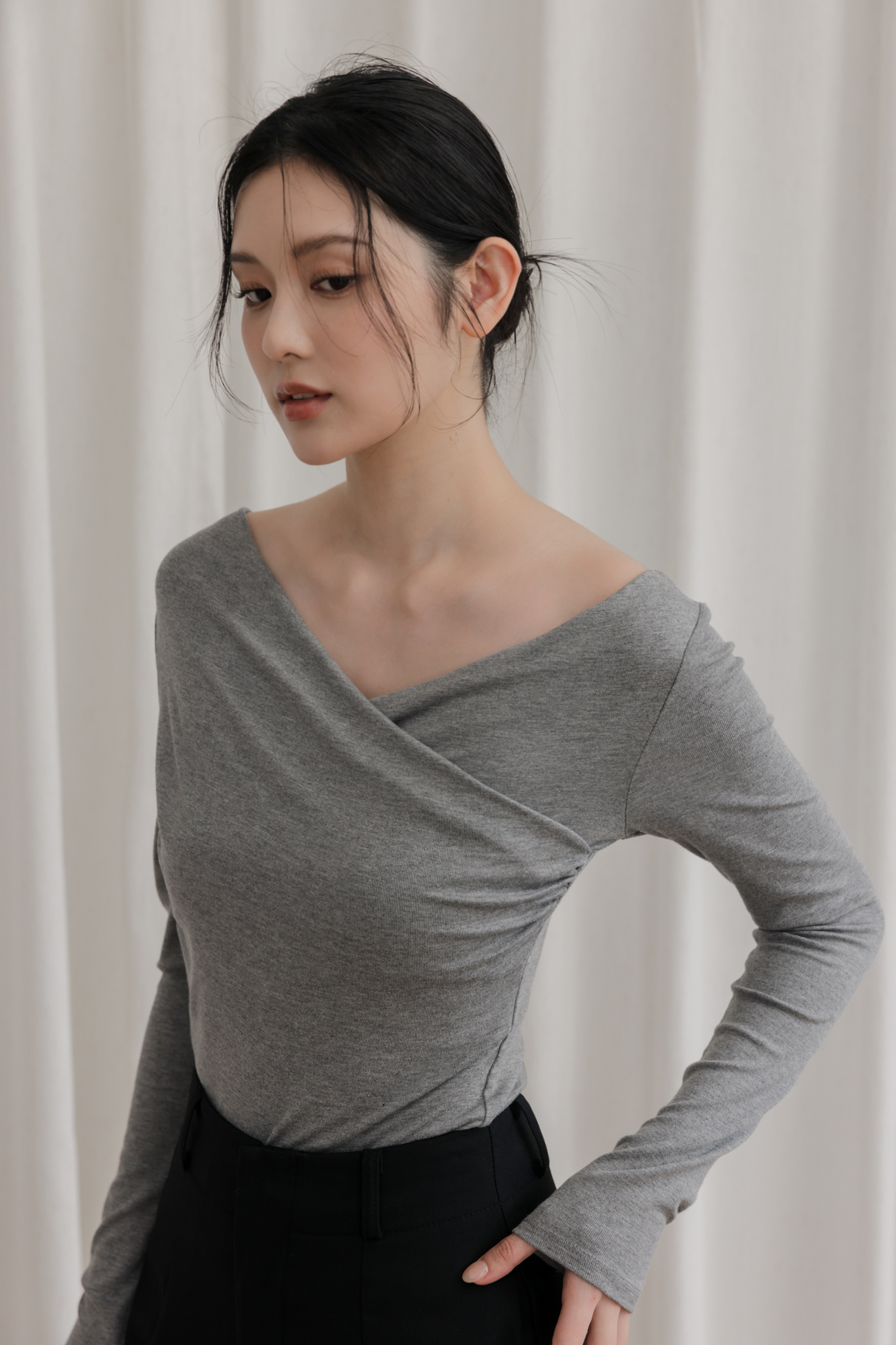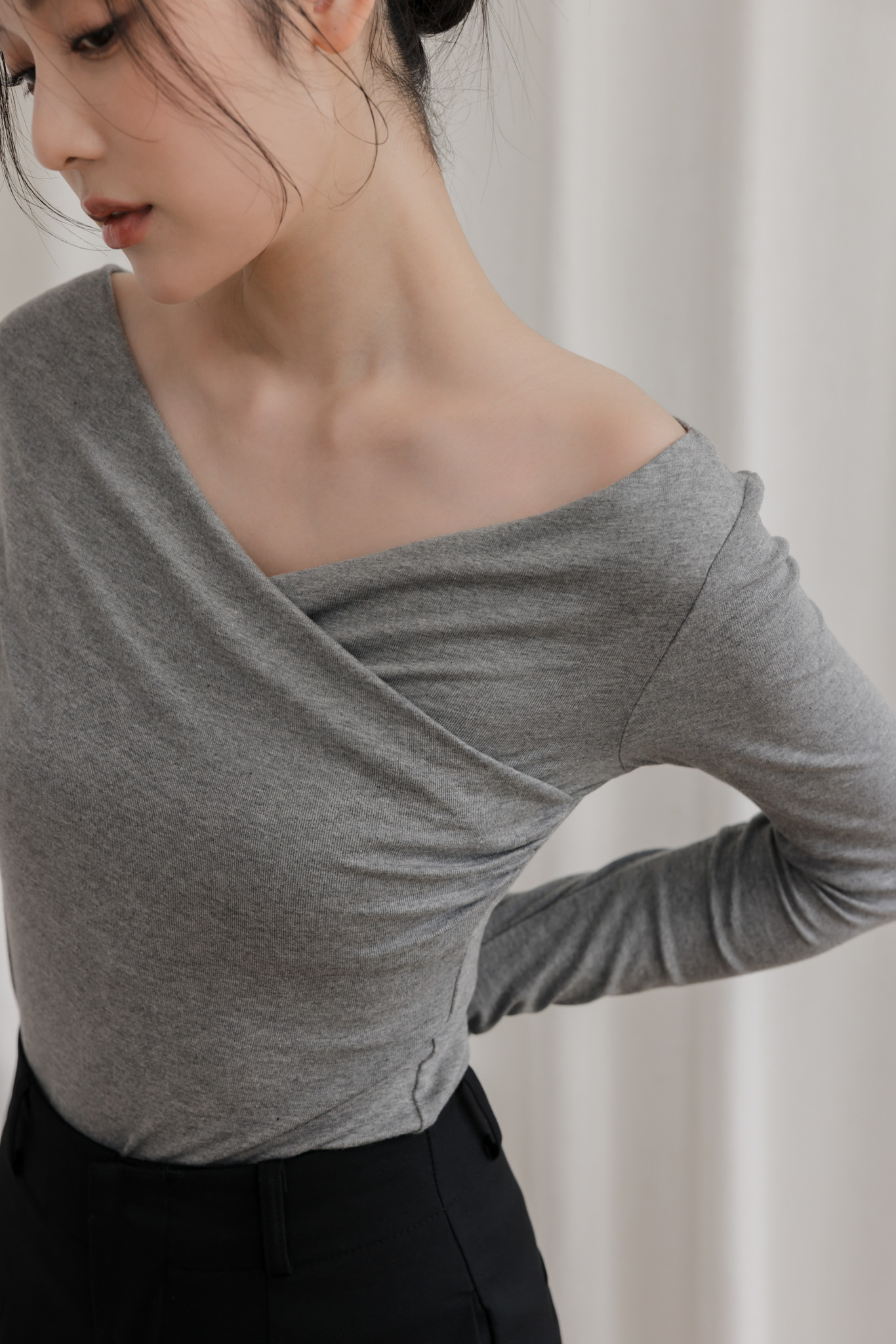 胸前交叉造型 / 可兩穿式(自然垂領&一字領) / 整件彈性佳