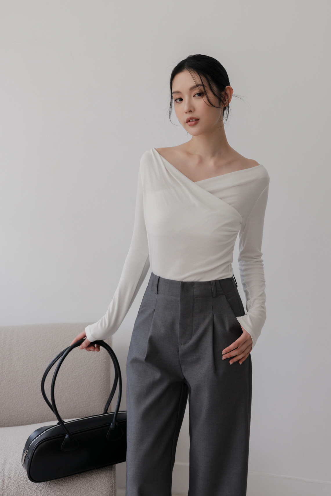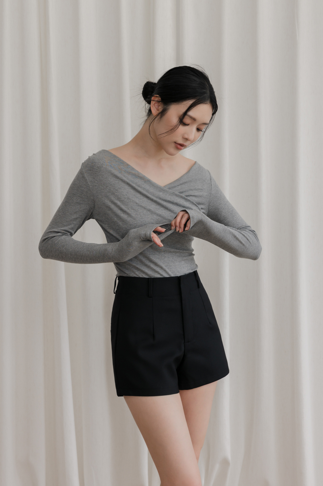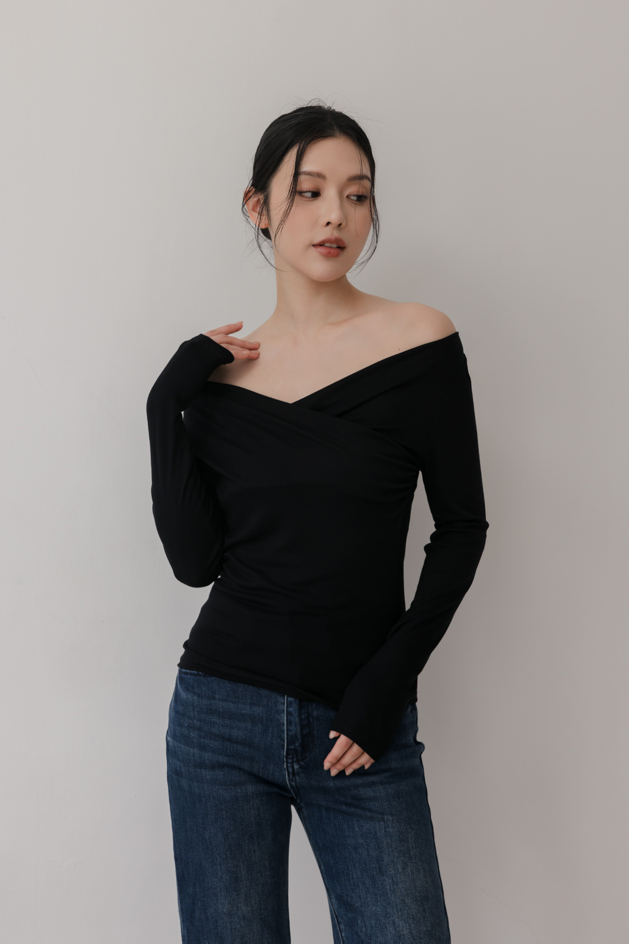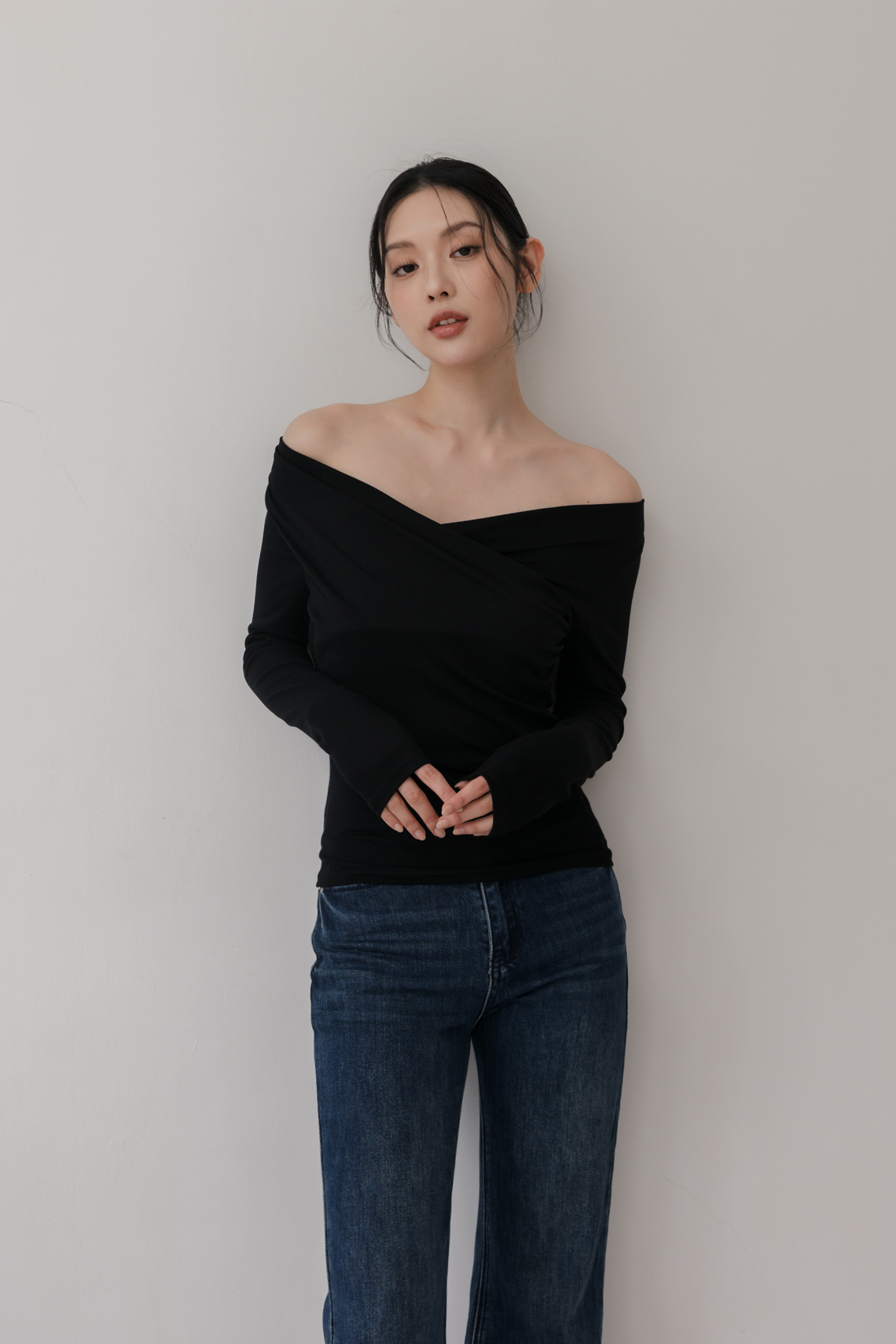 胸前交叉造型 / 可兩穿式(自然垂領&一字領) / 整件彈性佳