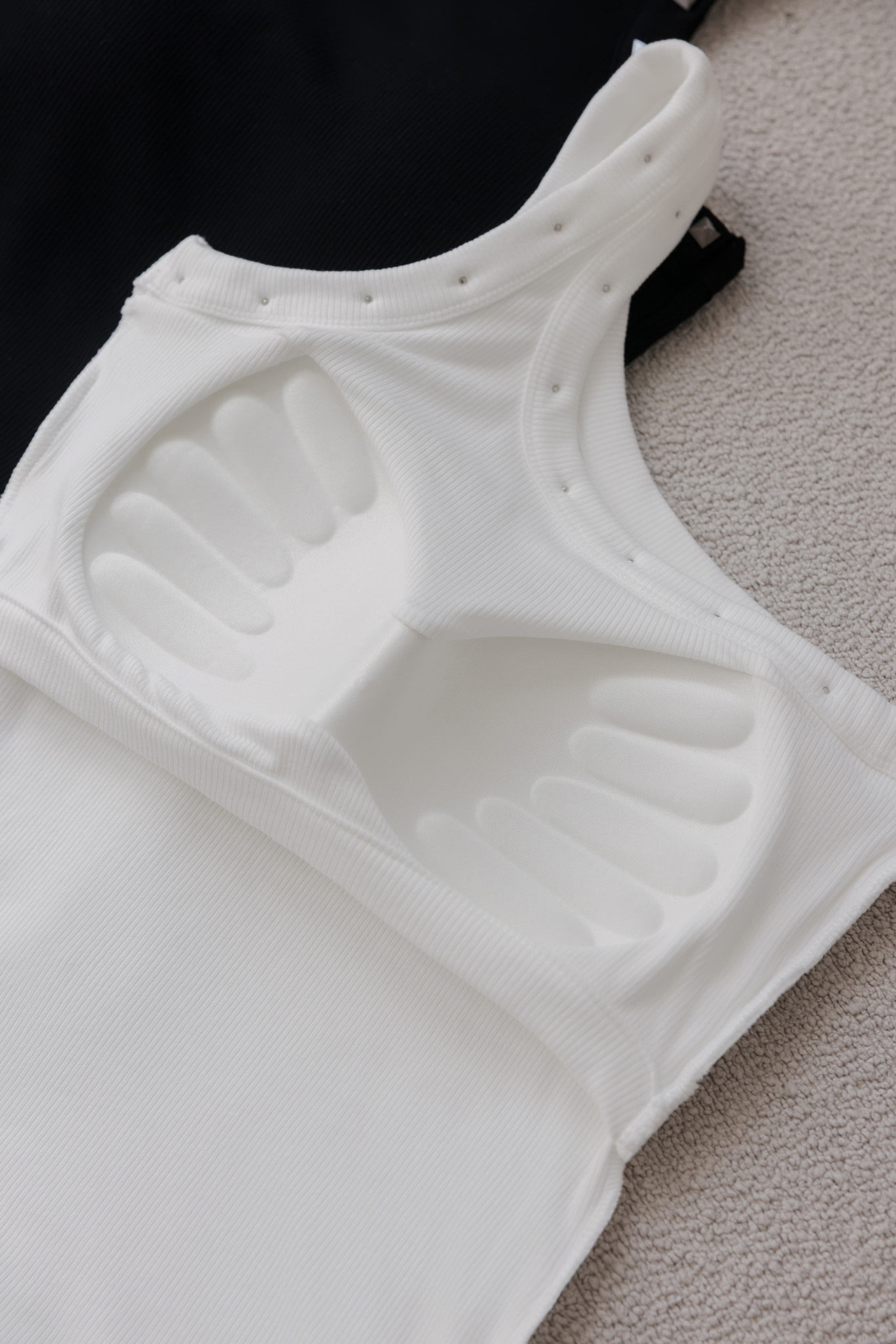 鉚釘造型 / 單肩設計 / 內有固定胸墊 / 下緣彈性鬆緊 / 整件彈性佳
