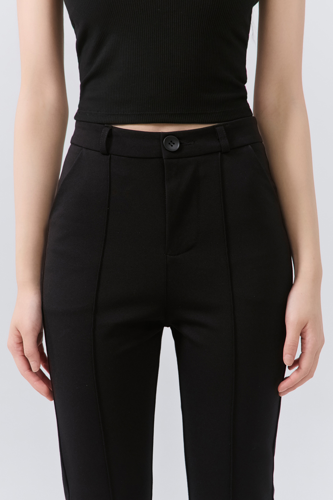 高腰 / 鈕釦及拉鍊 / 有褲耳 / 兩側口袋 / 褲管前車線設計