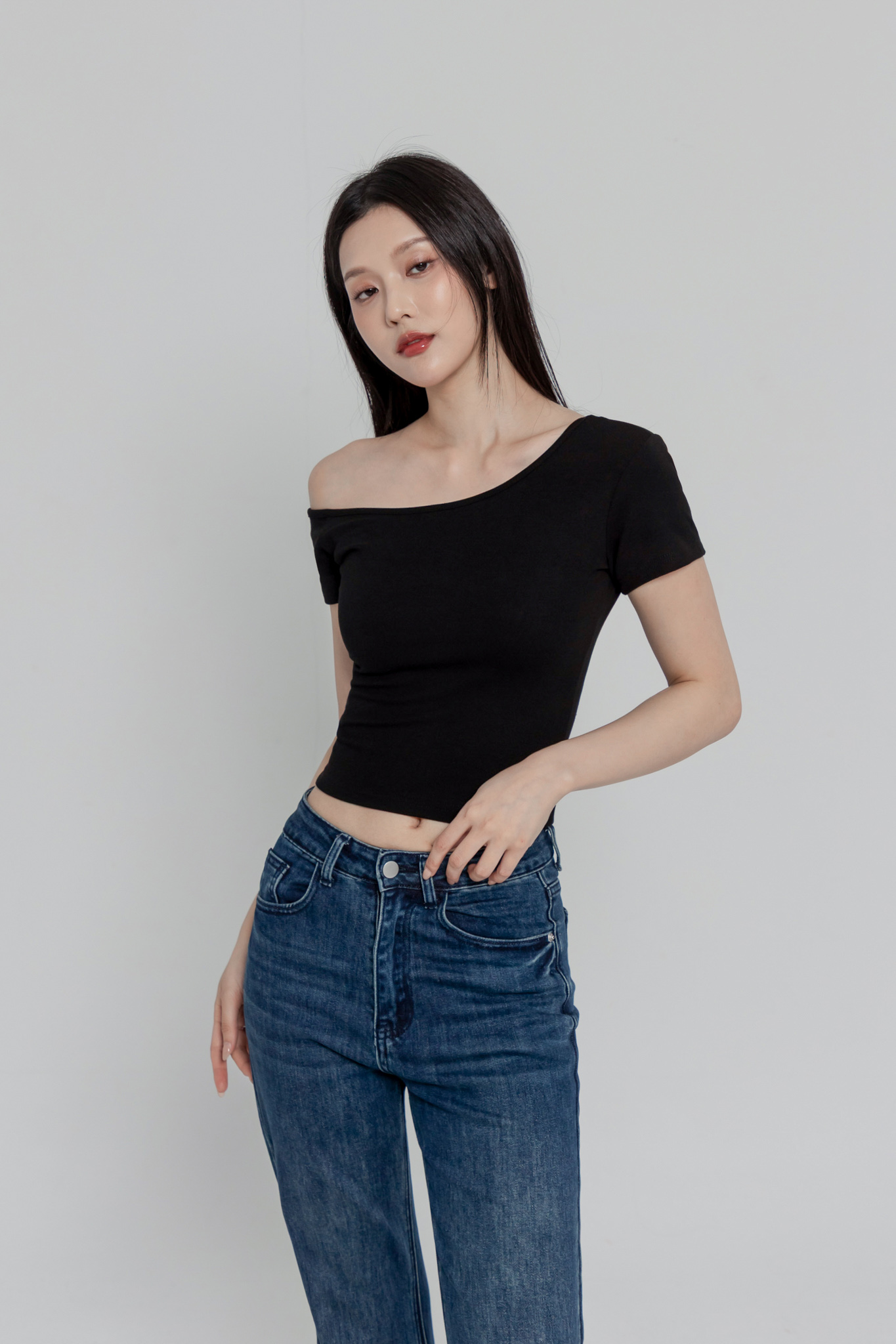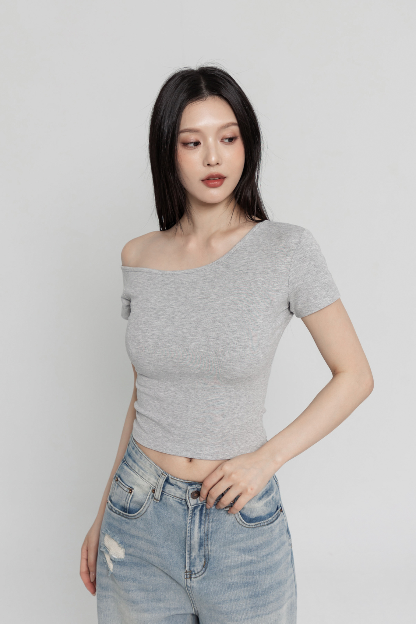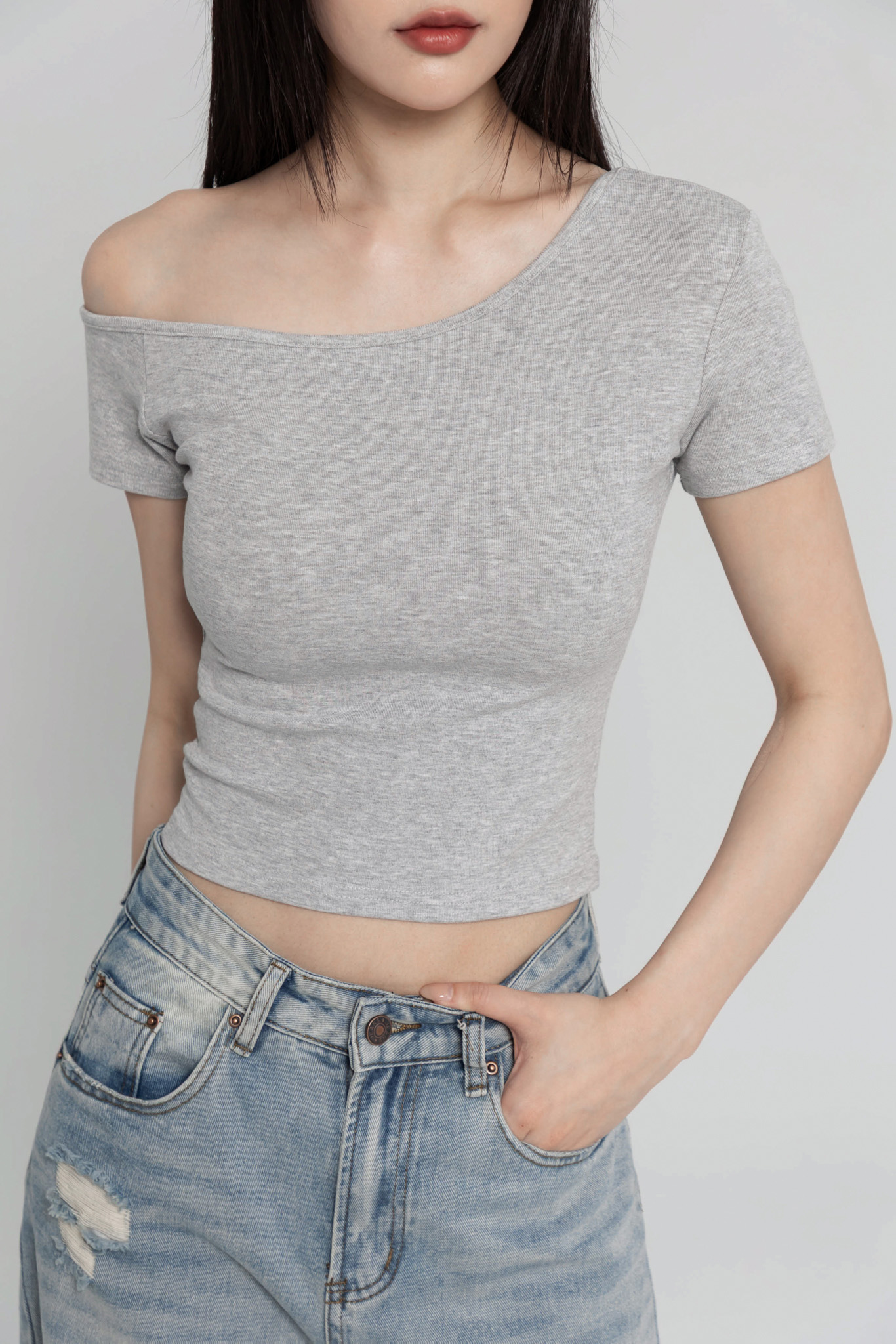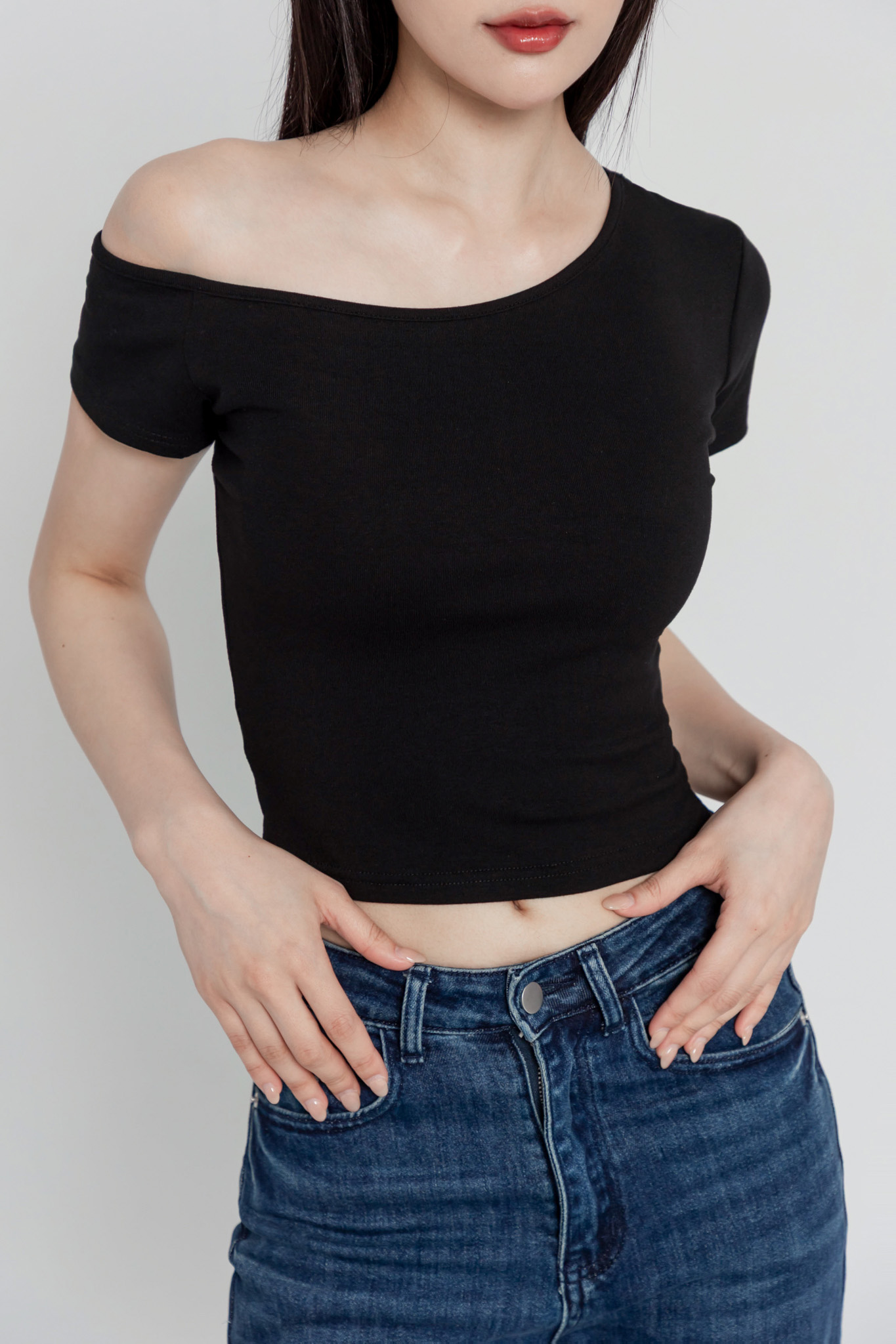 斜肩短袖上衣(超彈萊卡棉) 0104256