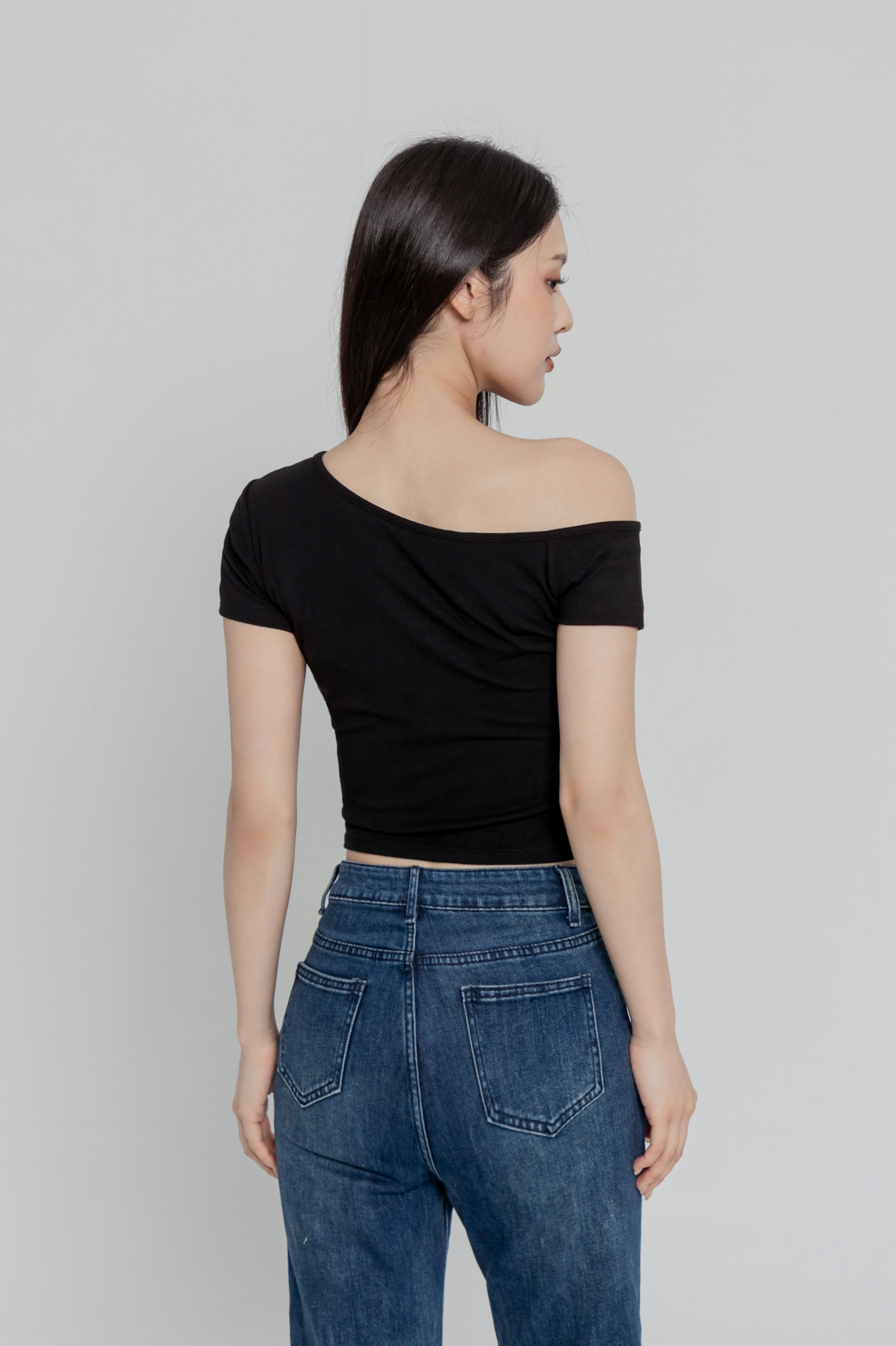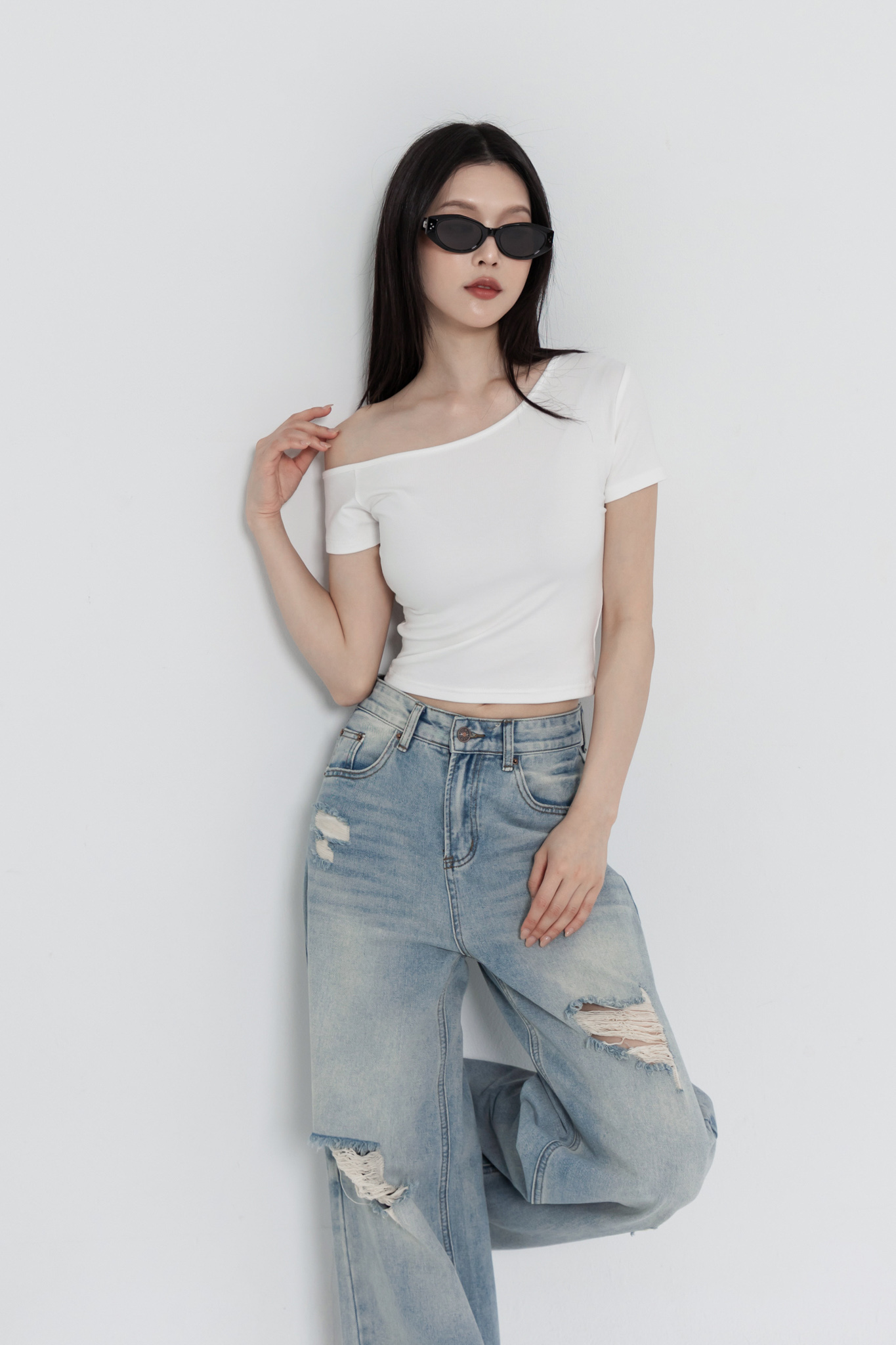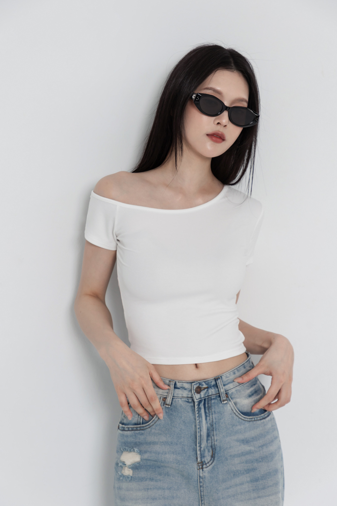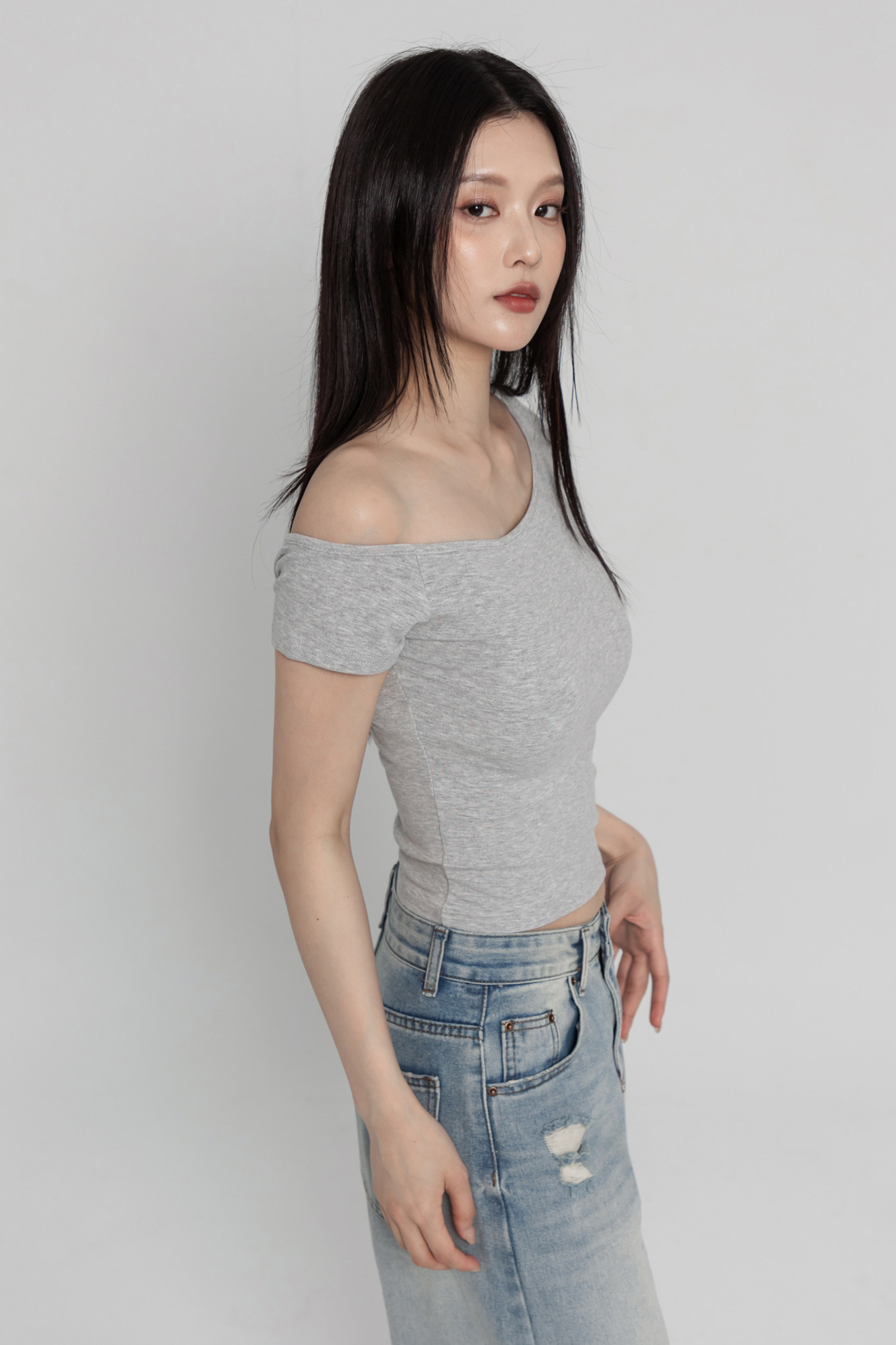 斜肩短袖上衣(超彈萊卡棉) 0104256