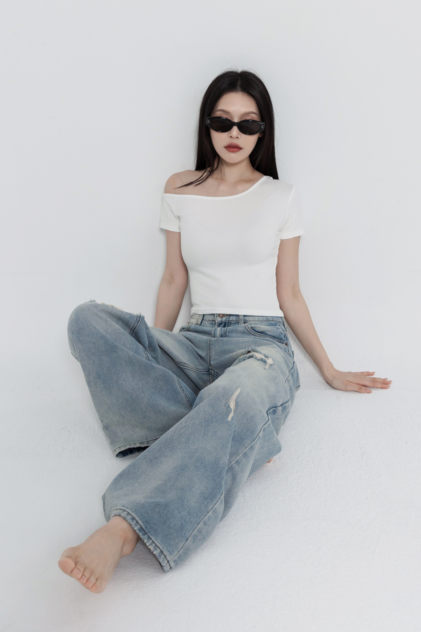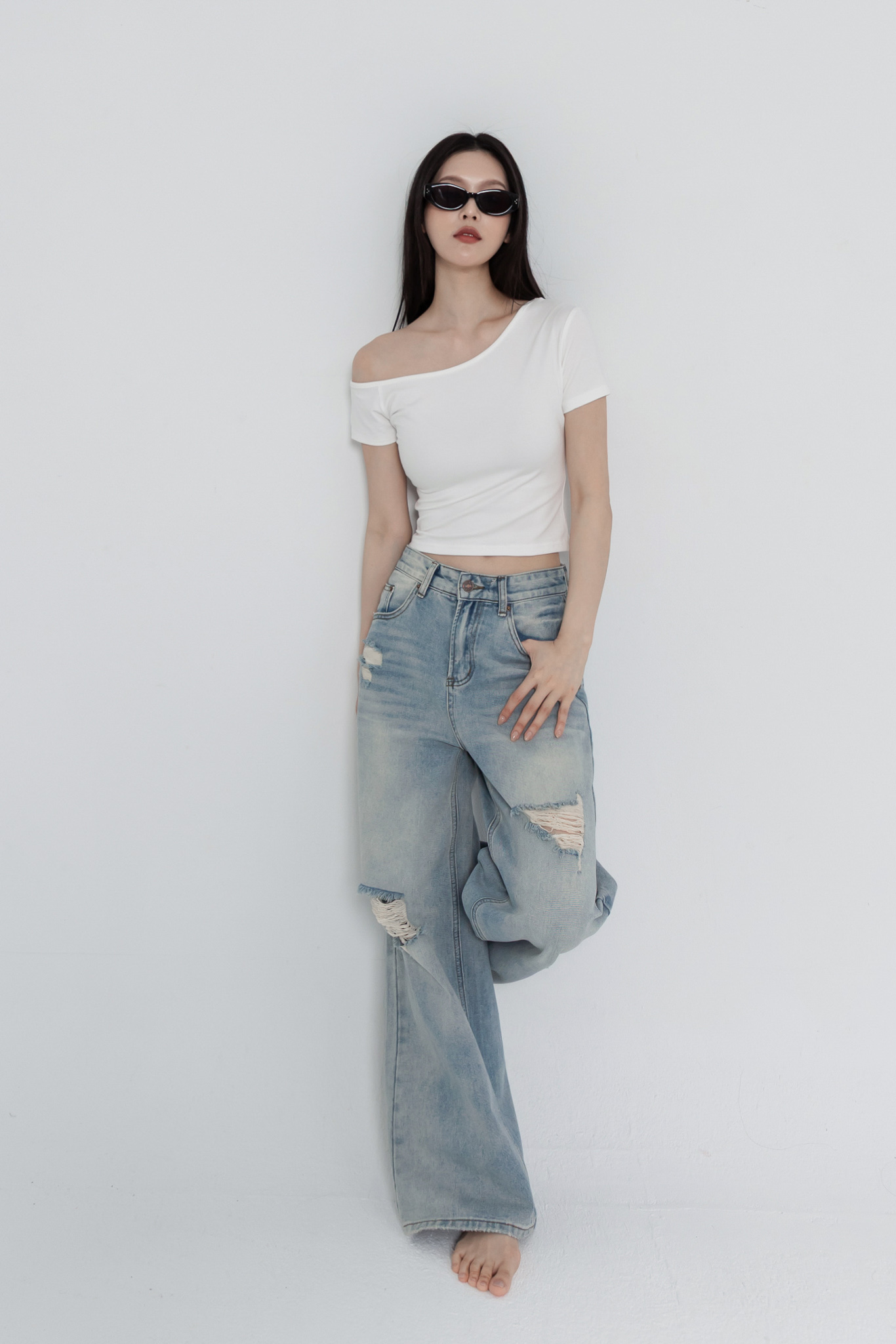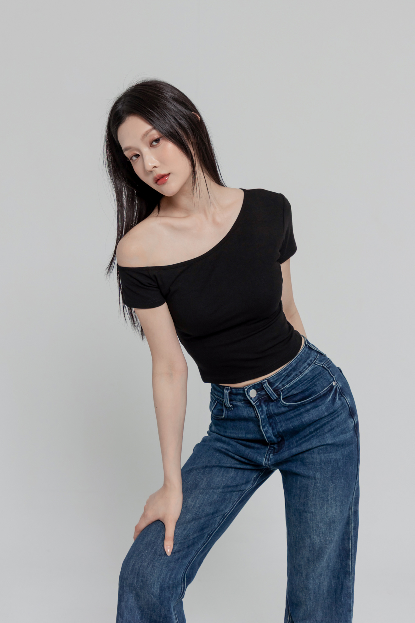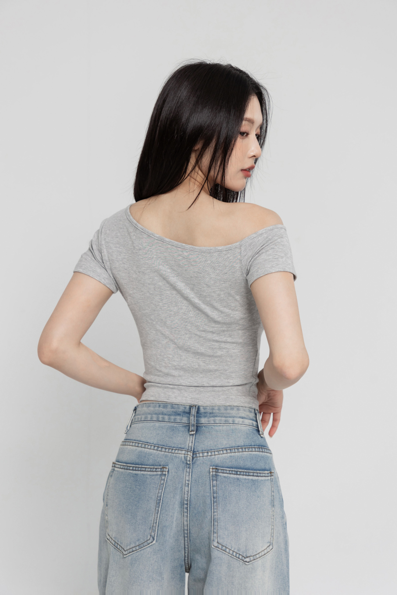 斜肩短袖上衣(超彈萊卡棉) 0104256
