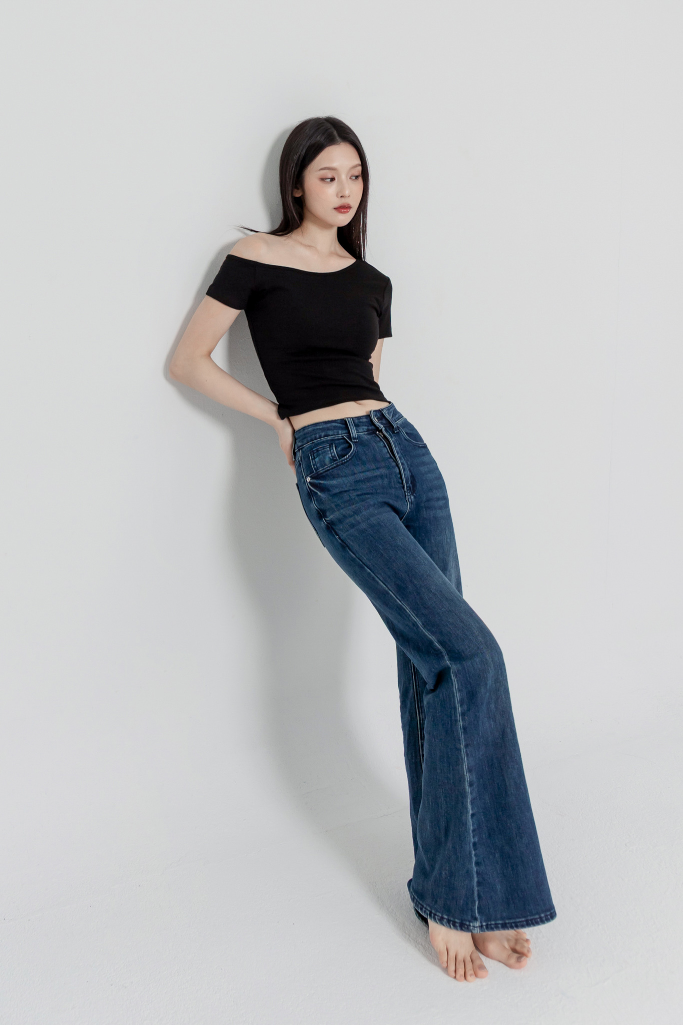 斜肩設計 / 修身 / 整件彈性佳