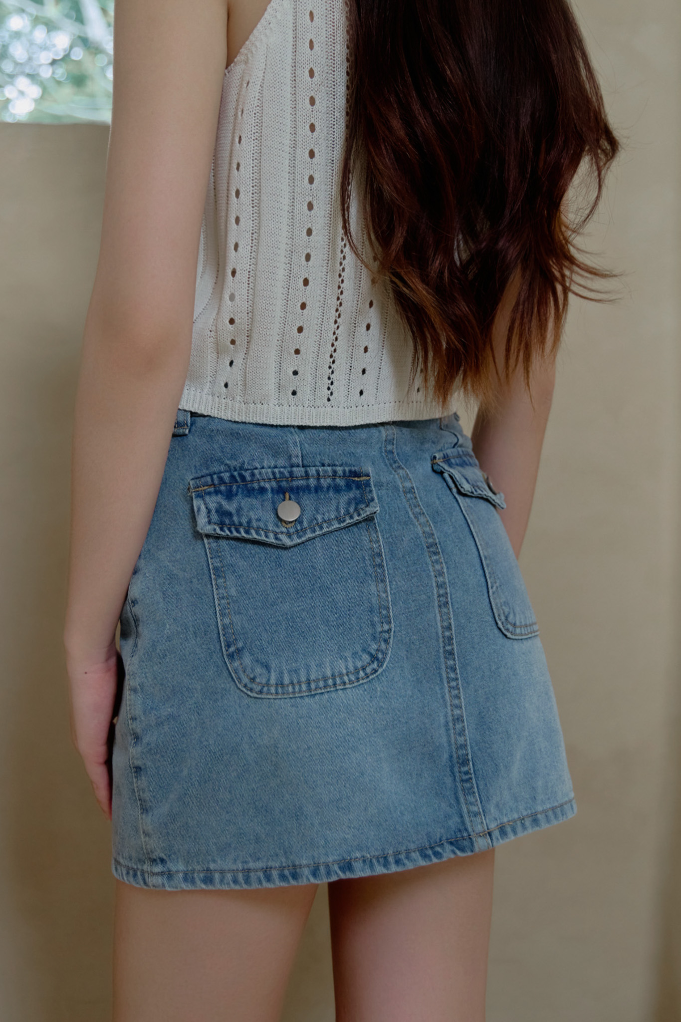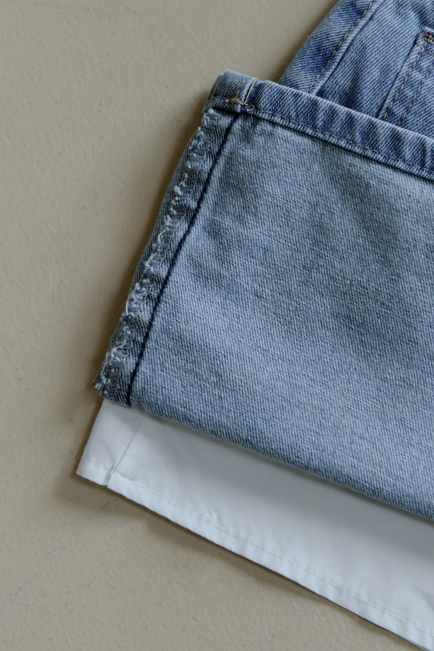 中高腰 / A字版型 / 短褲內裡 / 造型後口袋 / 挺版牛仔面料